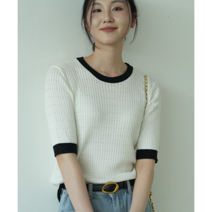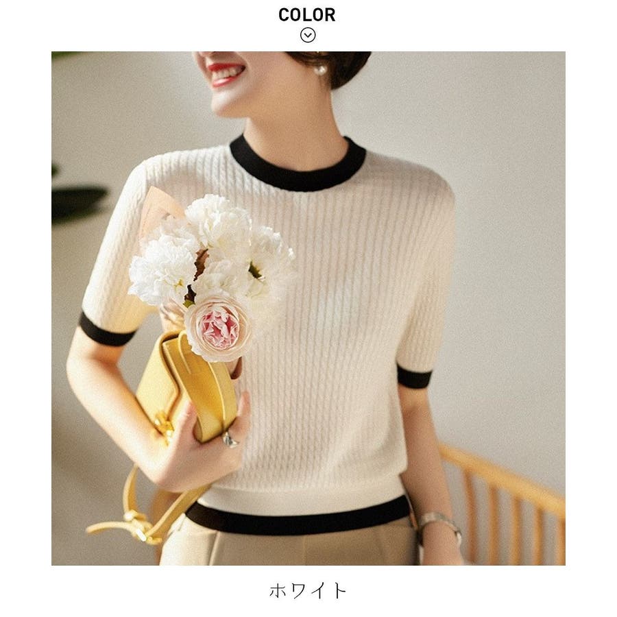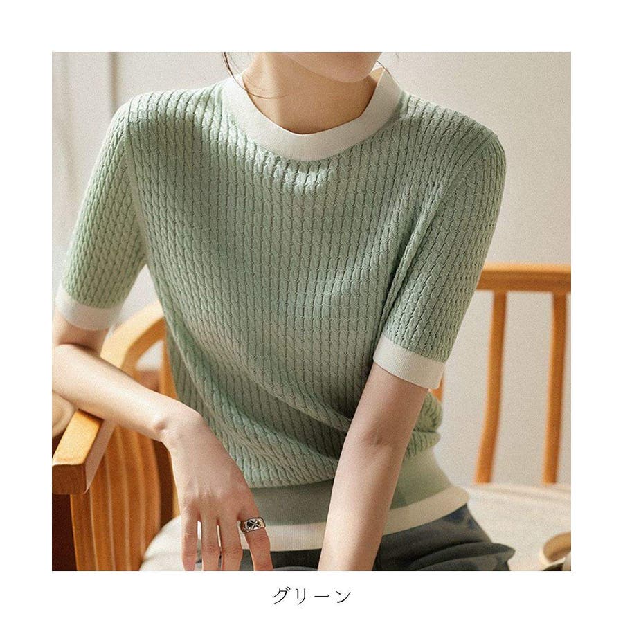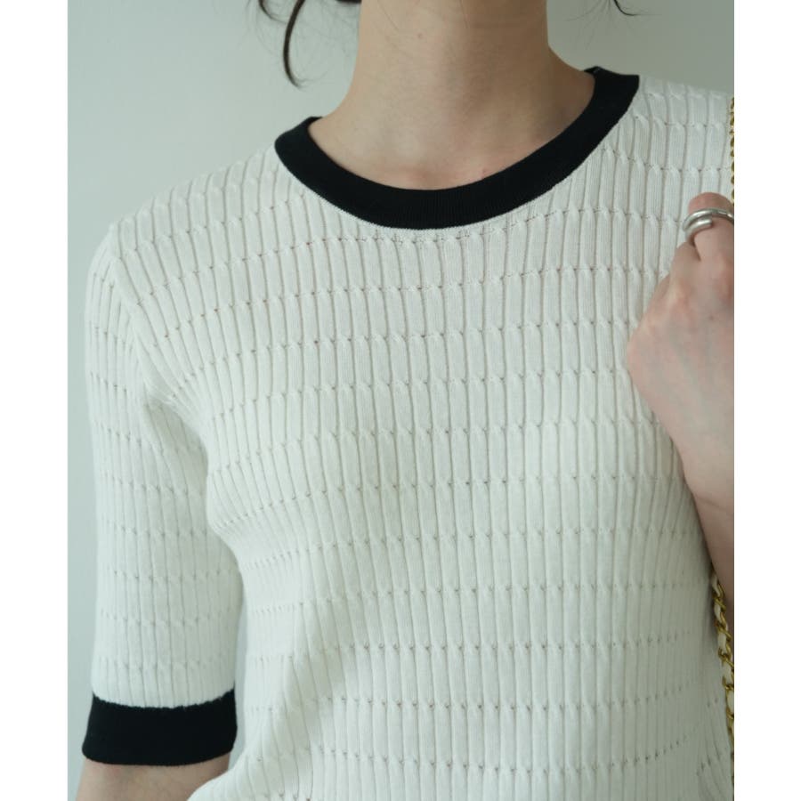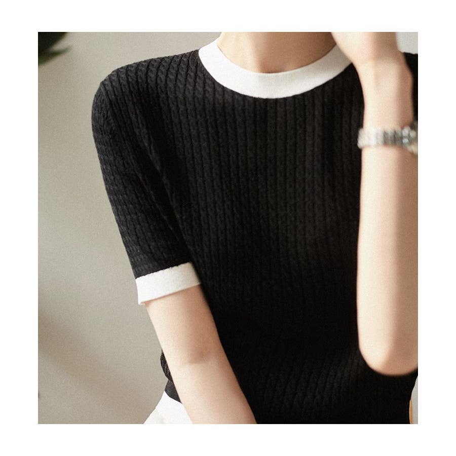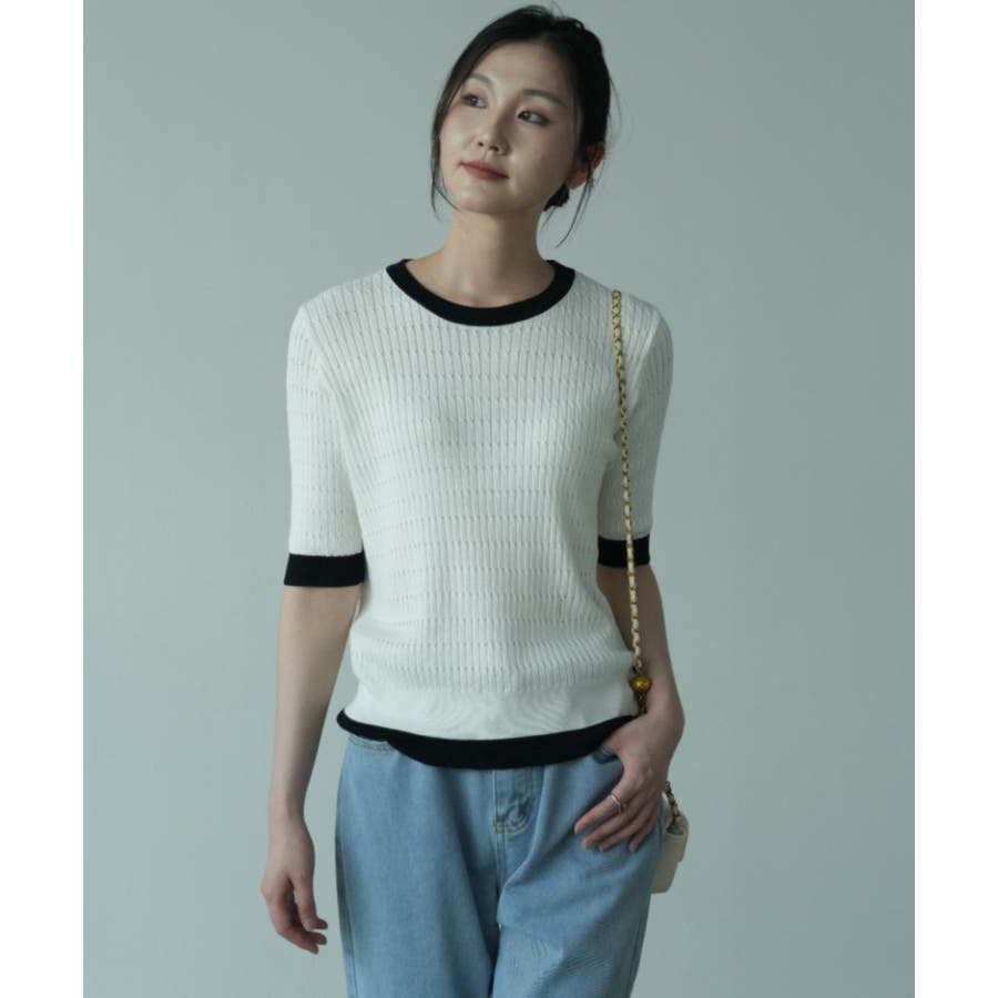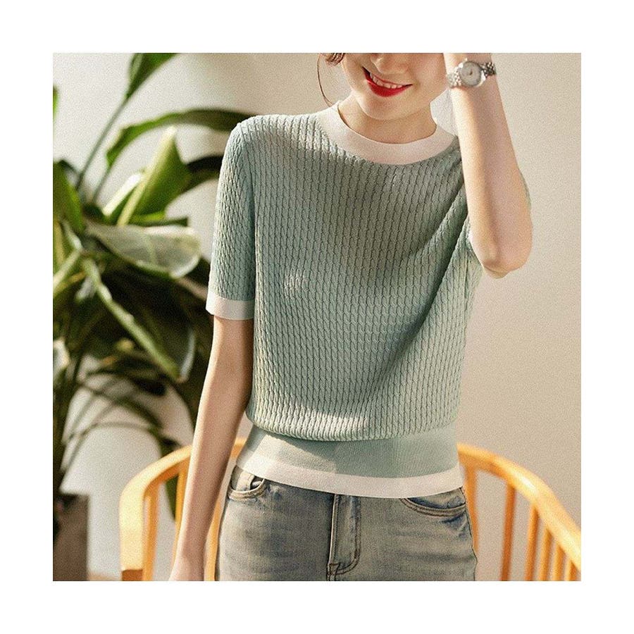 バイカラーデザインが可愛いケーブル編みサマーニット 春 トップス