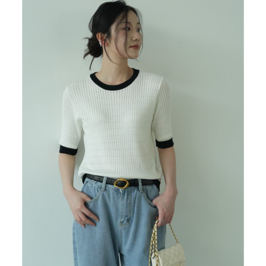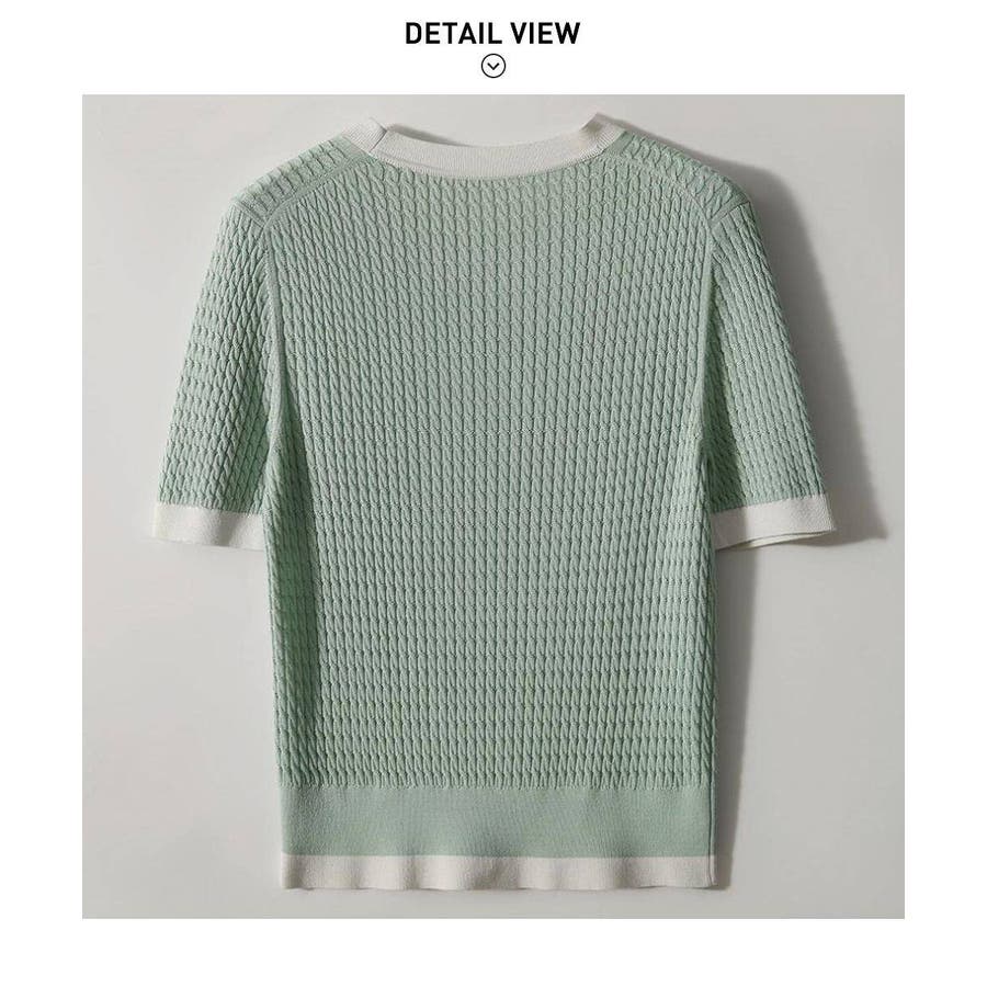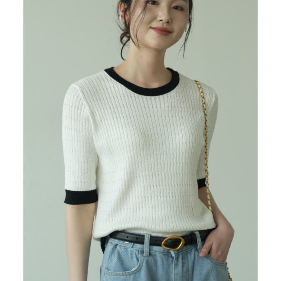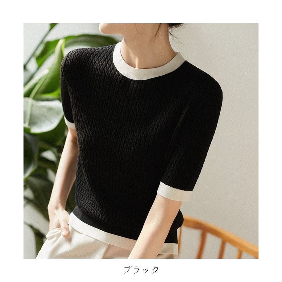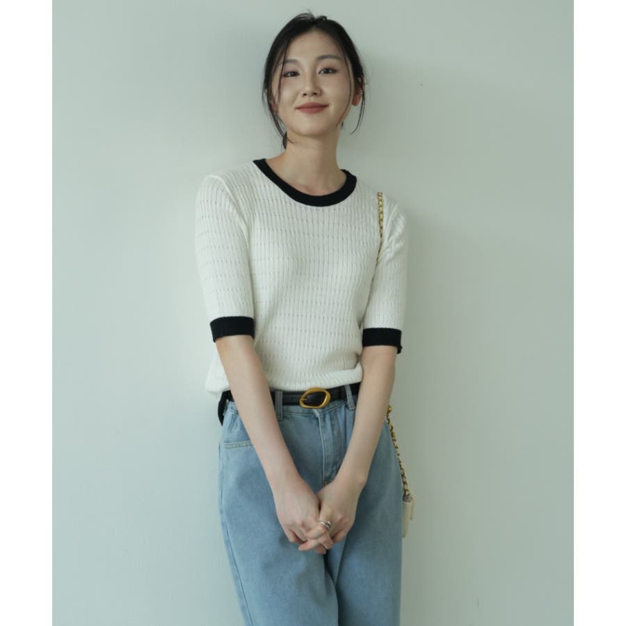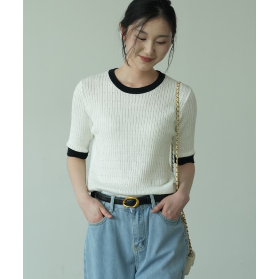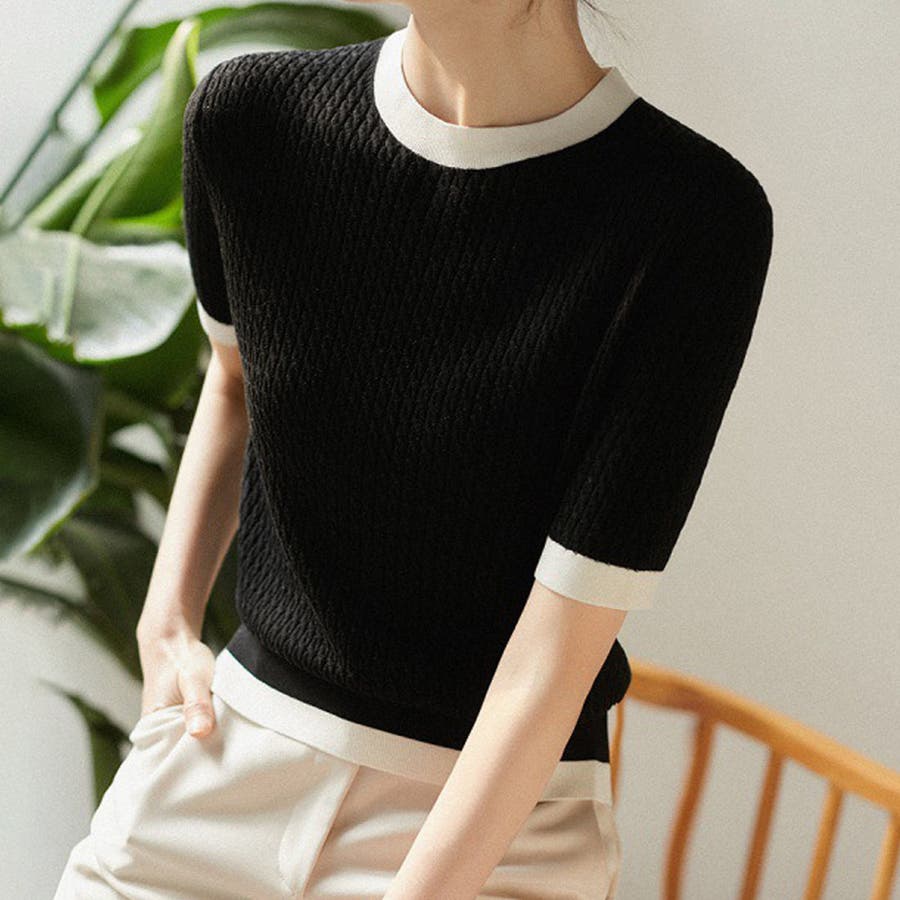 バイカラーデザインが可愛いケーブル編みサマーニット 春 トップス