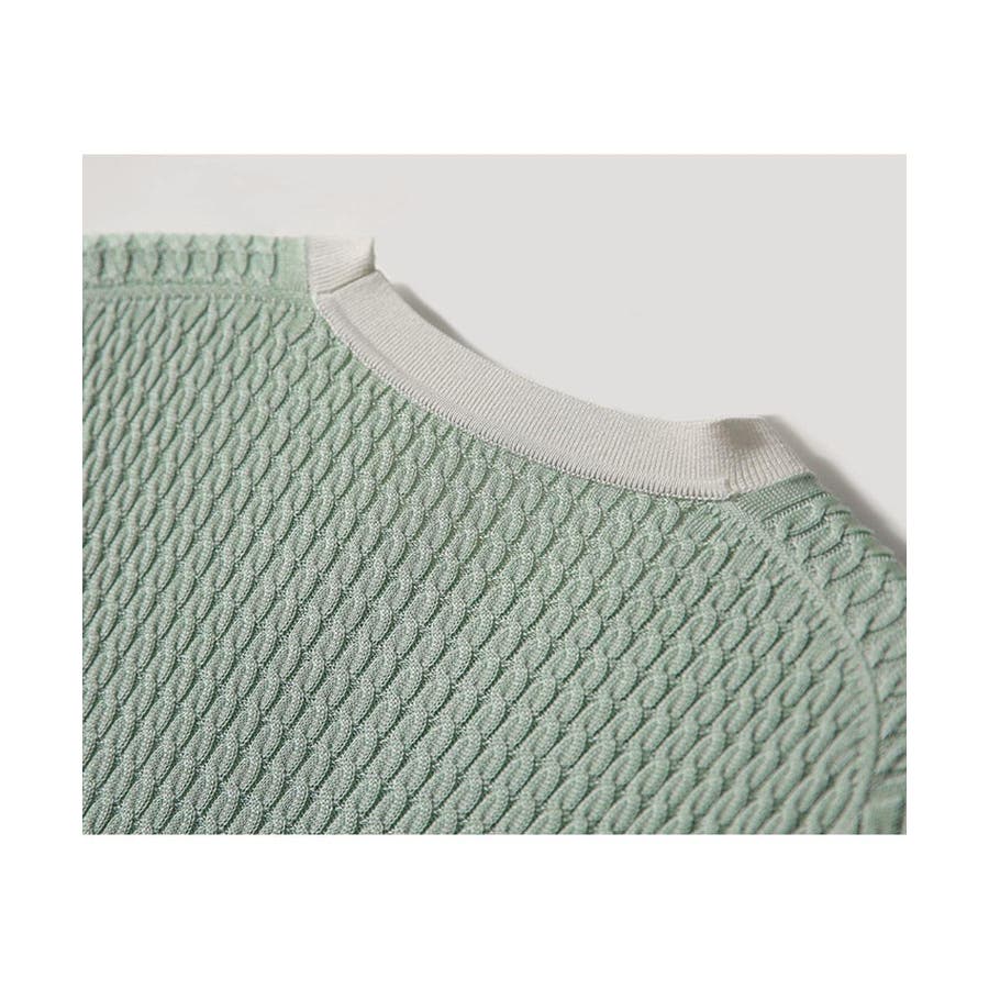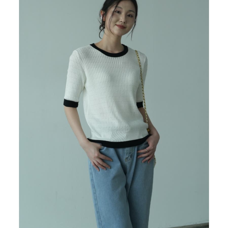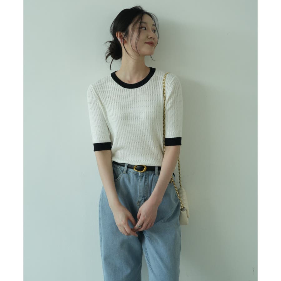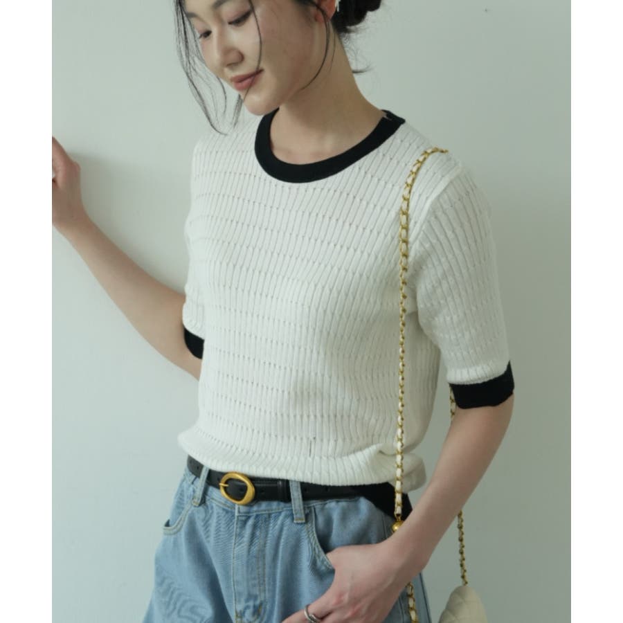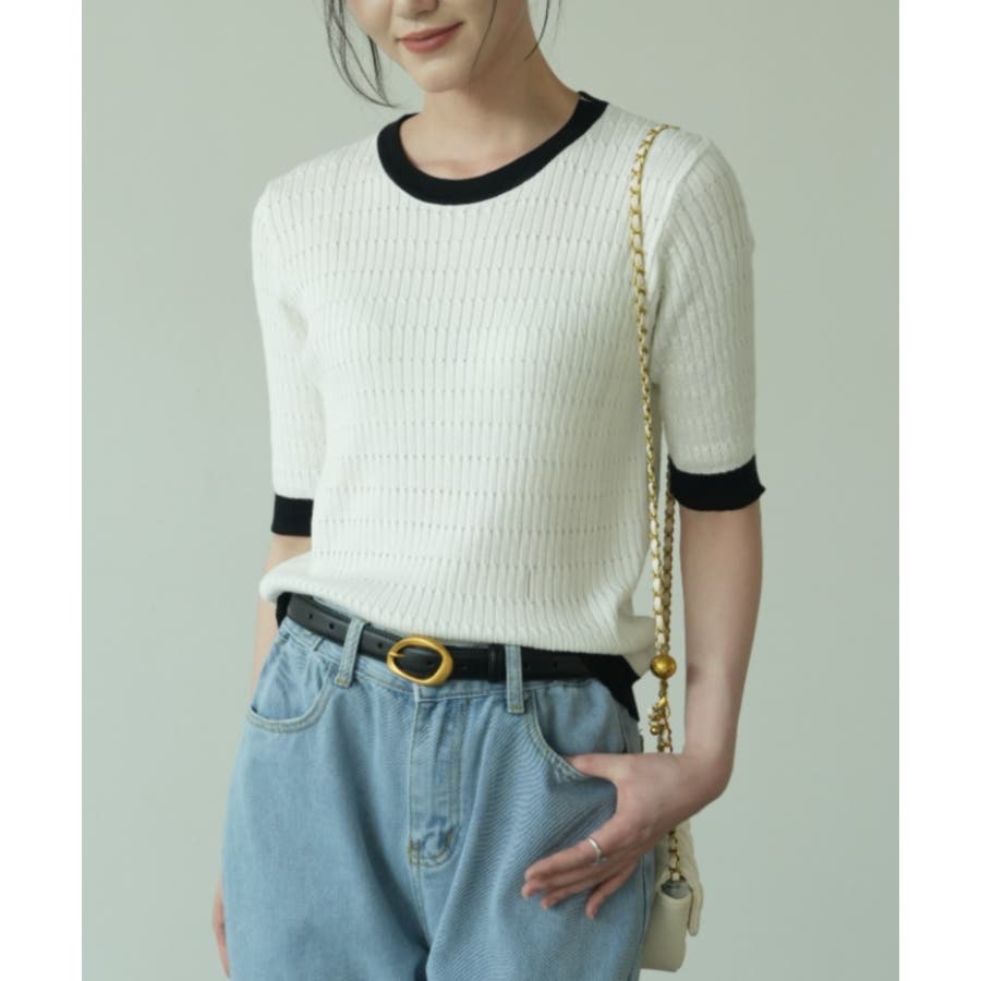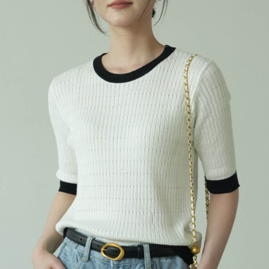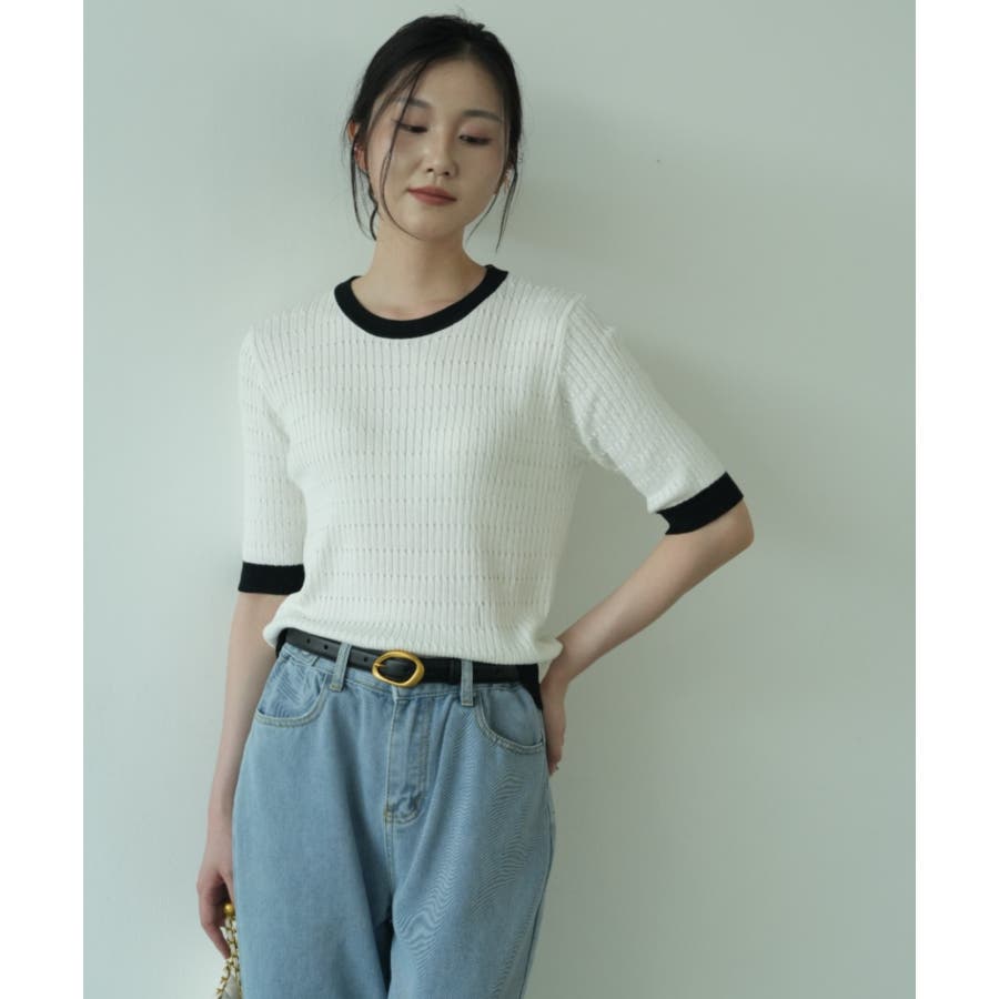 バイカラーデザインが可愛いケーブル編みサマーニット 春 トップス