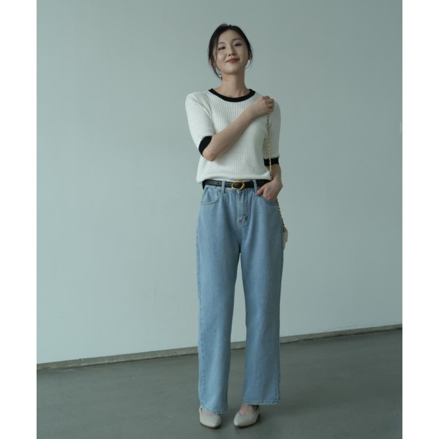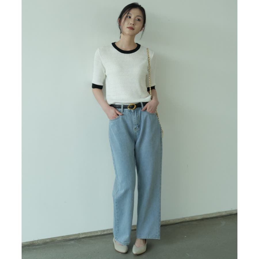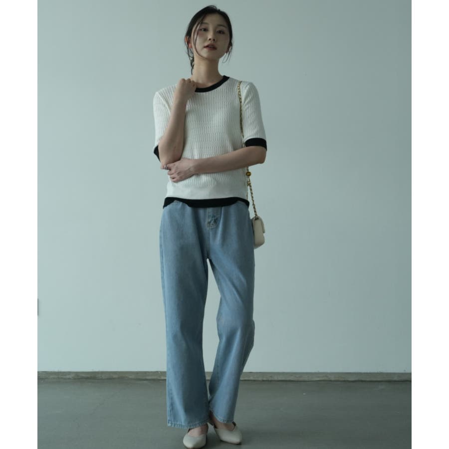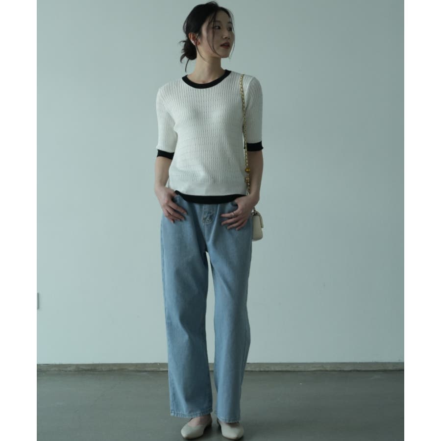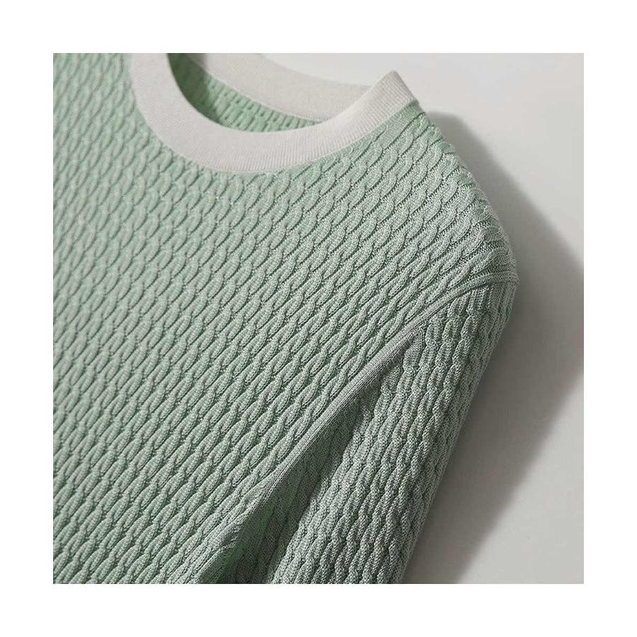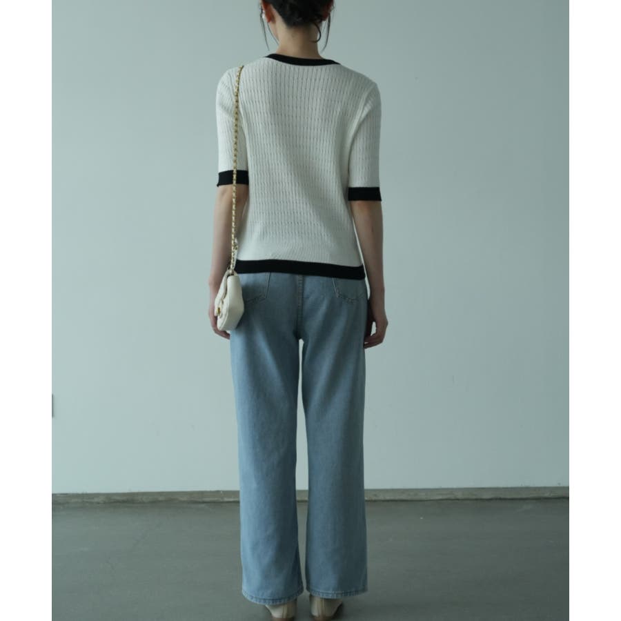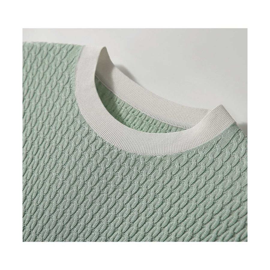 バイカラーデザインが可愛いケーブル編みサマーニット 春 トップス