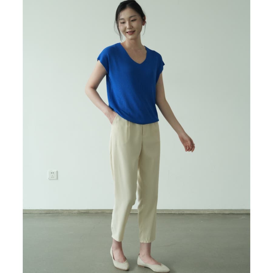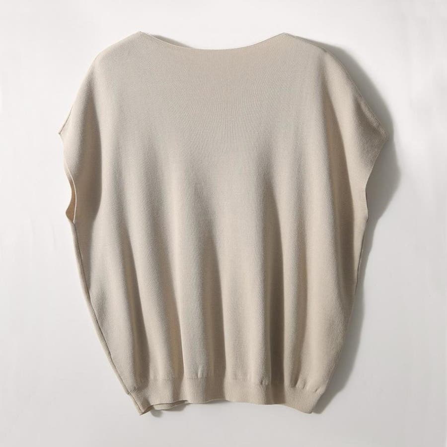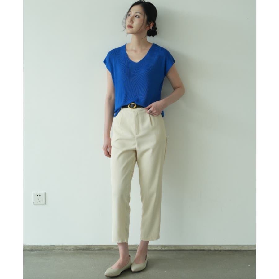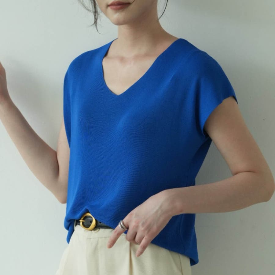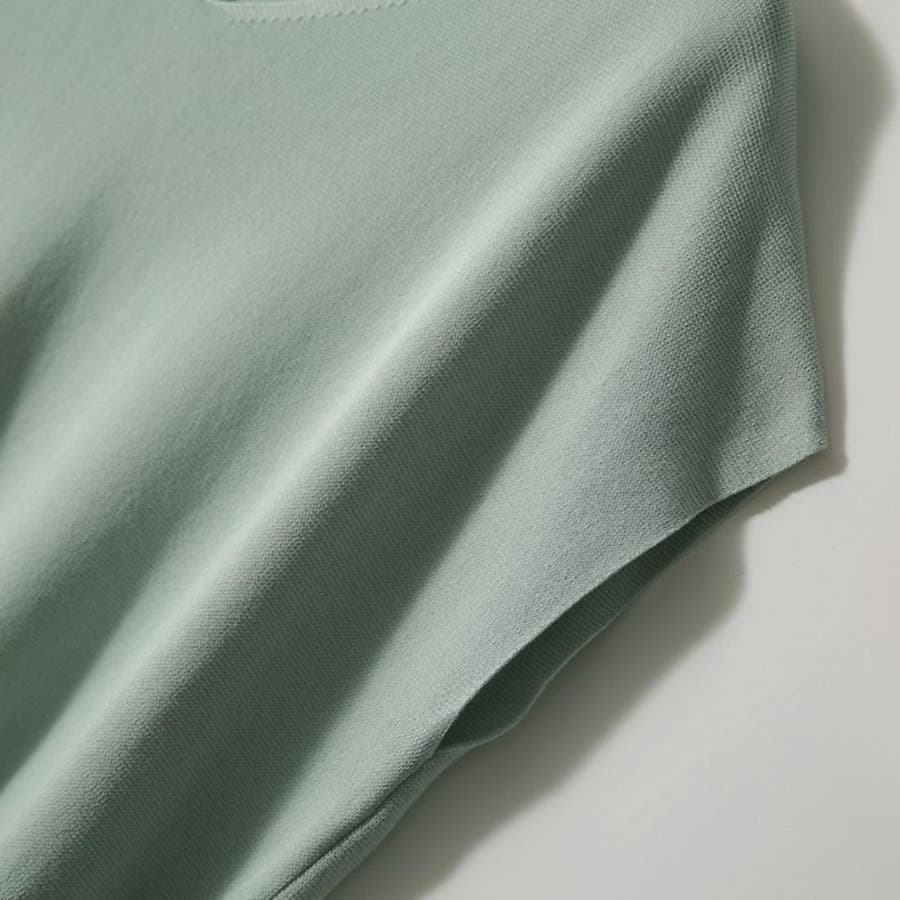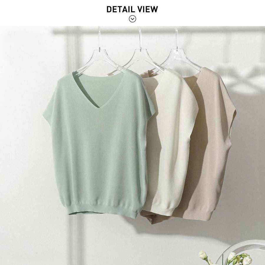 夏はワンピースばかりになっていたので、ゆったりしたVネックを探していました。女性らしい柔らかシルエットがイメージ通りでうれしいです。