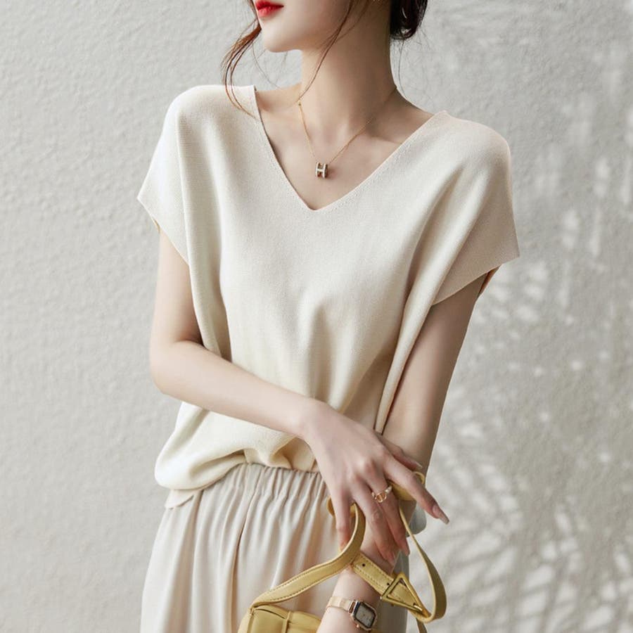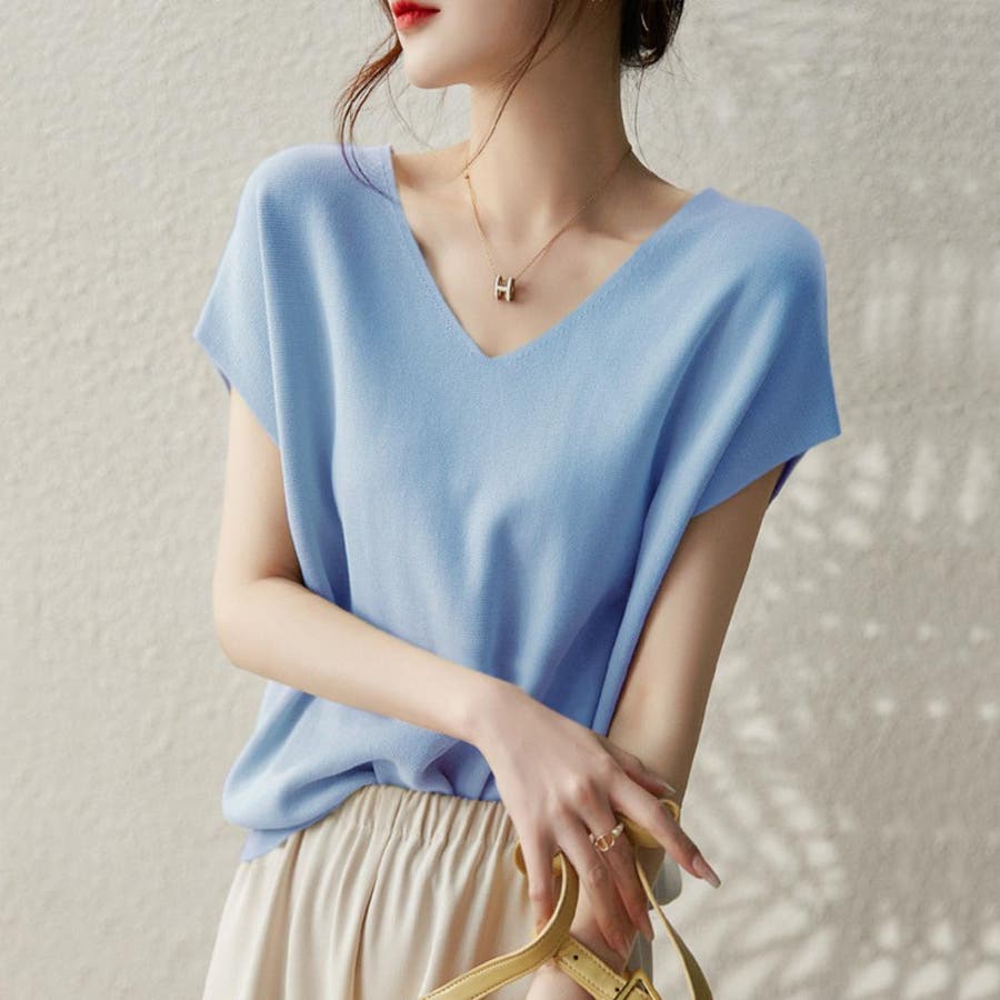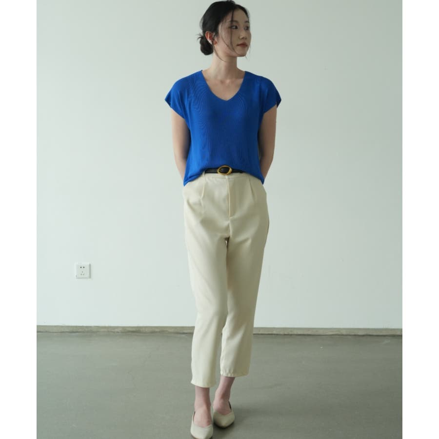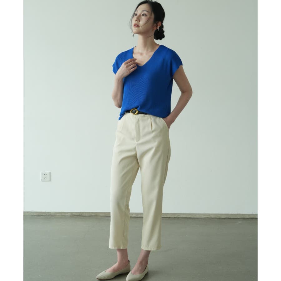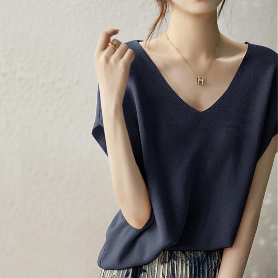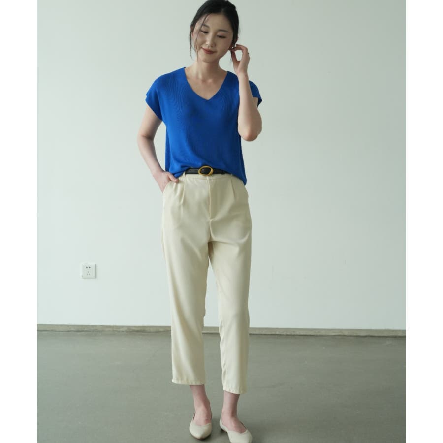 夏はワンピースばかりになっていたので、ゆったりしたVネックを探していました。女性らしい柔らかシルエットがイメージ通りでうれしいです。