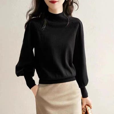 立体感のあるスリーブが華奢見効果抜群ハイネックニット トップス プルオーバー