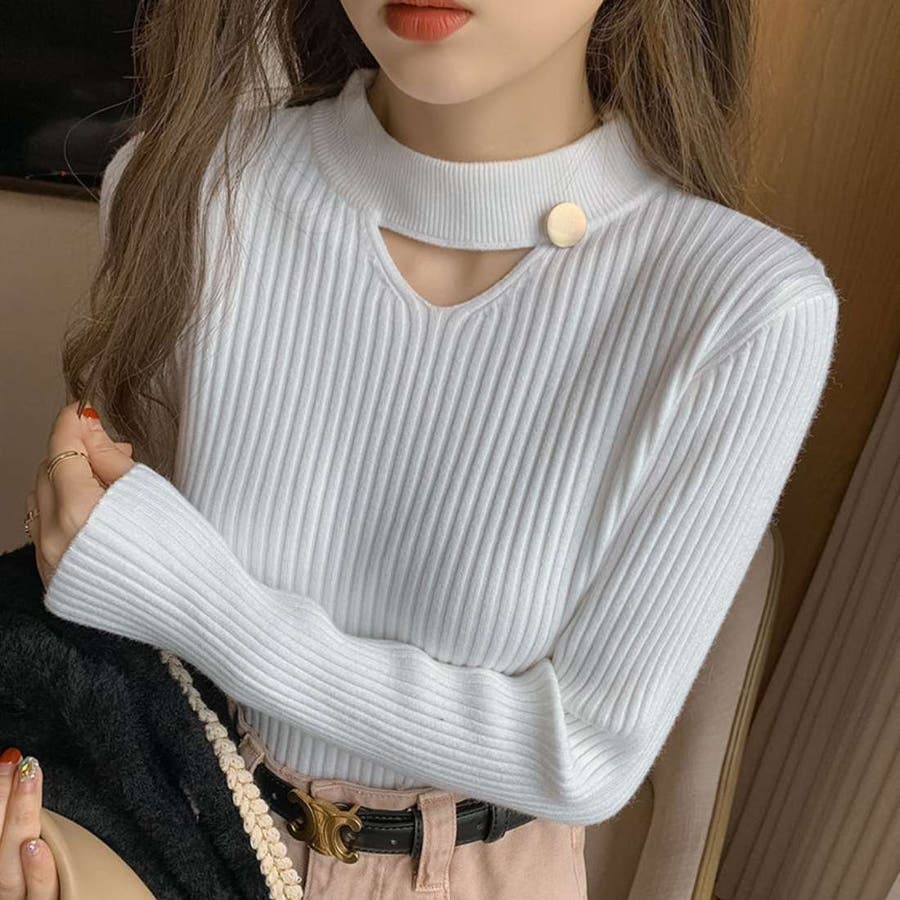 さりげない肌見せと上品さもあるデザインニット トップス プルオーバー
