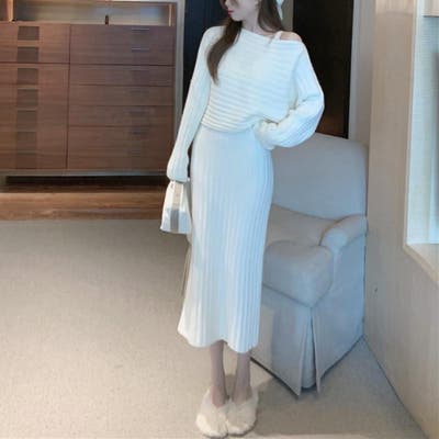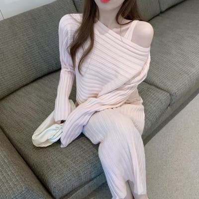 フェミニンなニットトップス+キャミワンピースセットアップ 冬 韓国