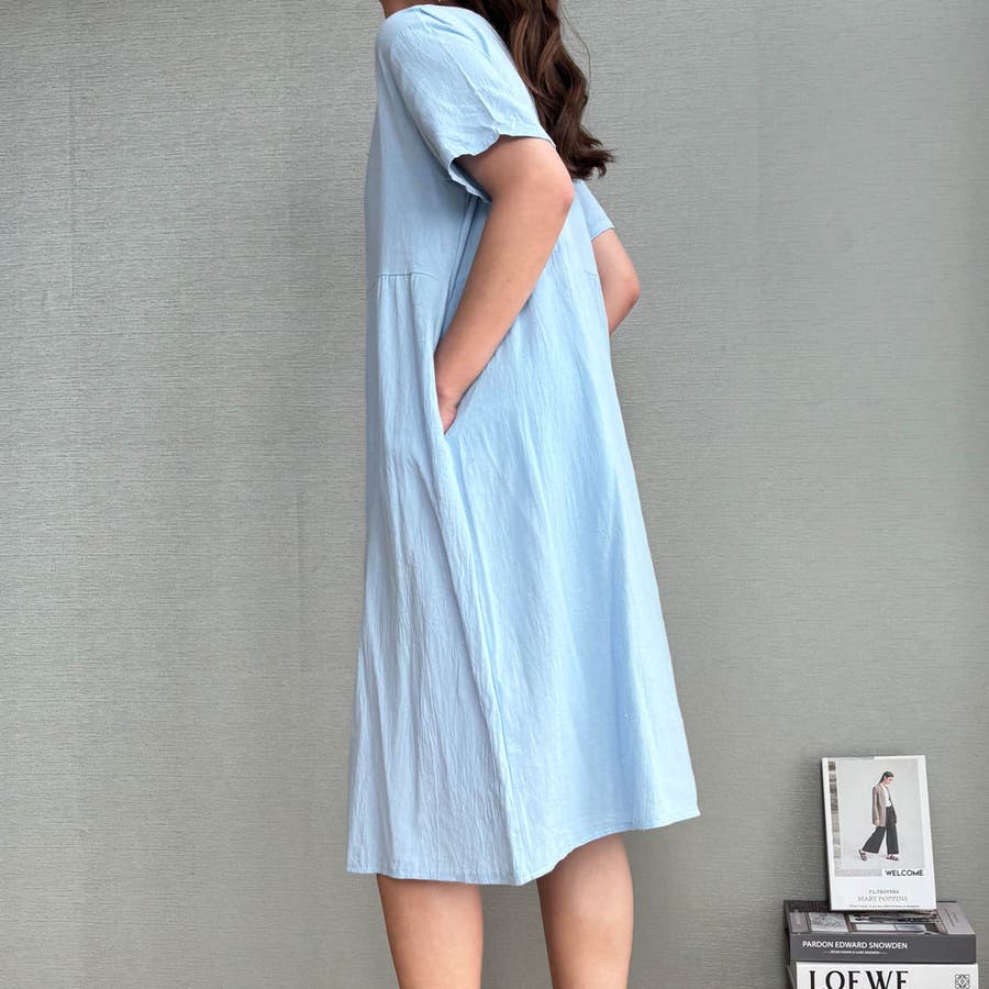水色で可愛いです。ゆったり着れていいです。丈も短くなくちょうどよいです。また色違いで購入したいと思います。