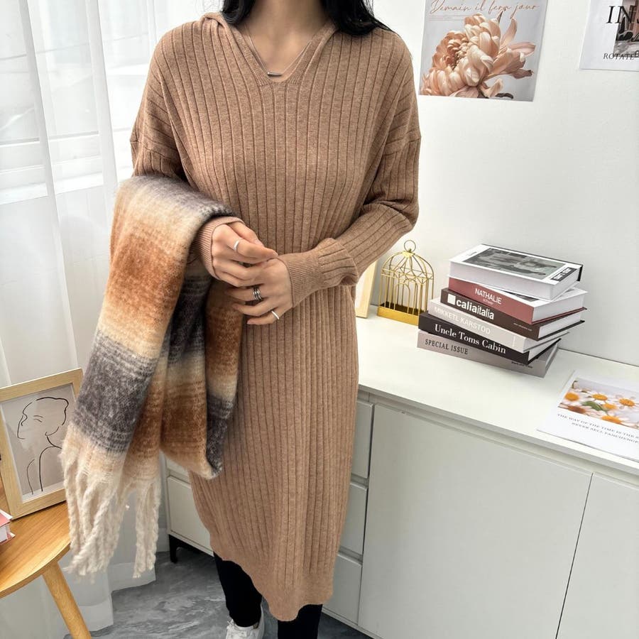 | 商品説明 | 冬まで長く着れるフード付きニットワンピースが登場♪ 大きめのフードが付いたニットワンピースで、リラックスできる着心地になっています。 ゆったりとしたシルエットですが、Vネックになっているので女性らしさをしっかり演出できるのが推しポイント◎ シンプルなデザインだからこそスニーカーやブーツ、靴下とローファーなど、足元オシャレをしっかり楽しめます。 存在感のあるジュエリーを身につけると、ワンランク上のカジュアルファッションが完成するのでオススメ! | |