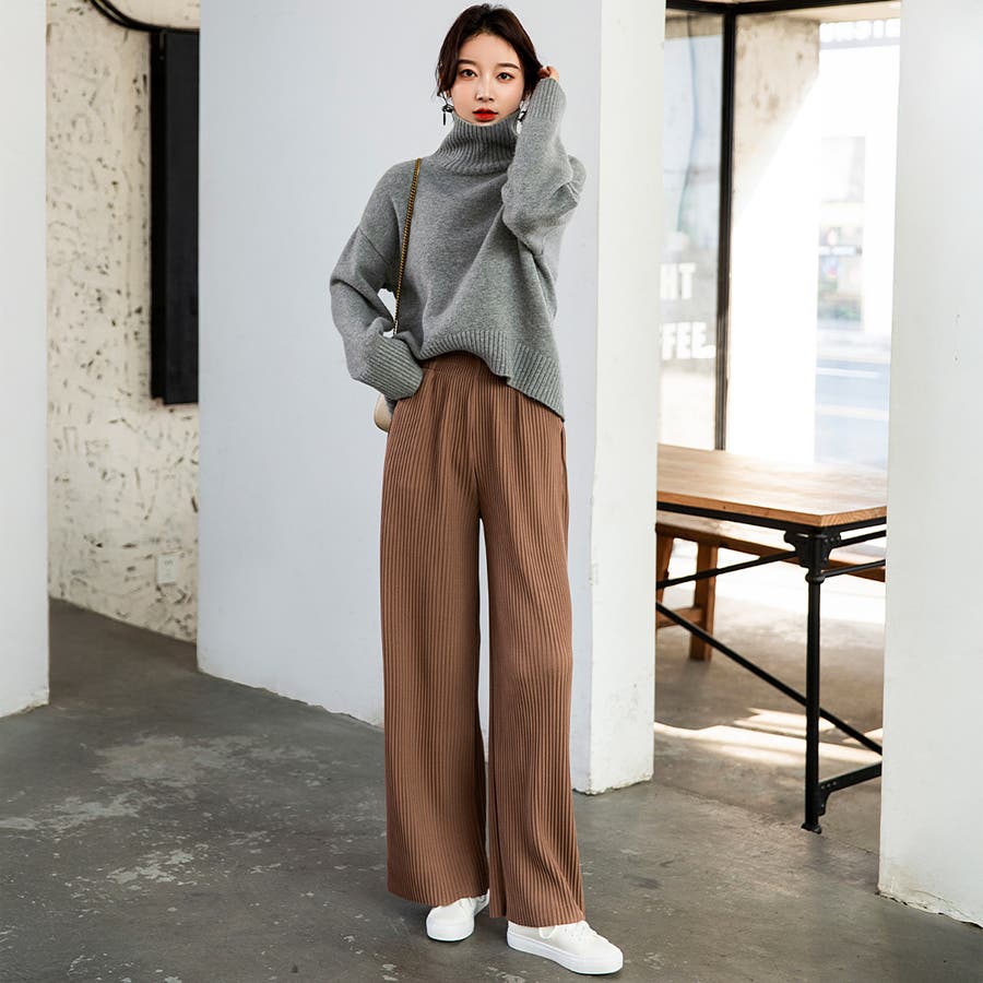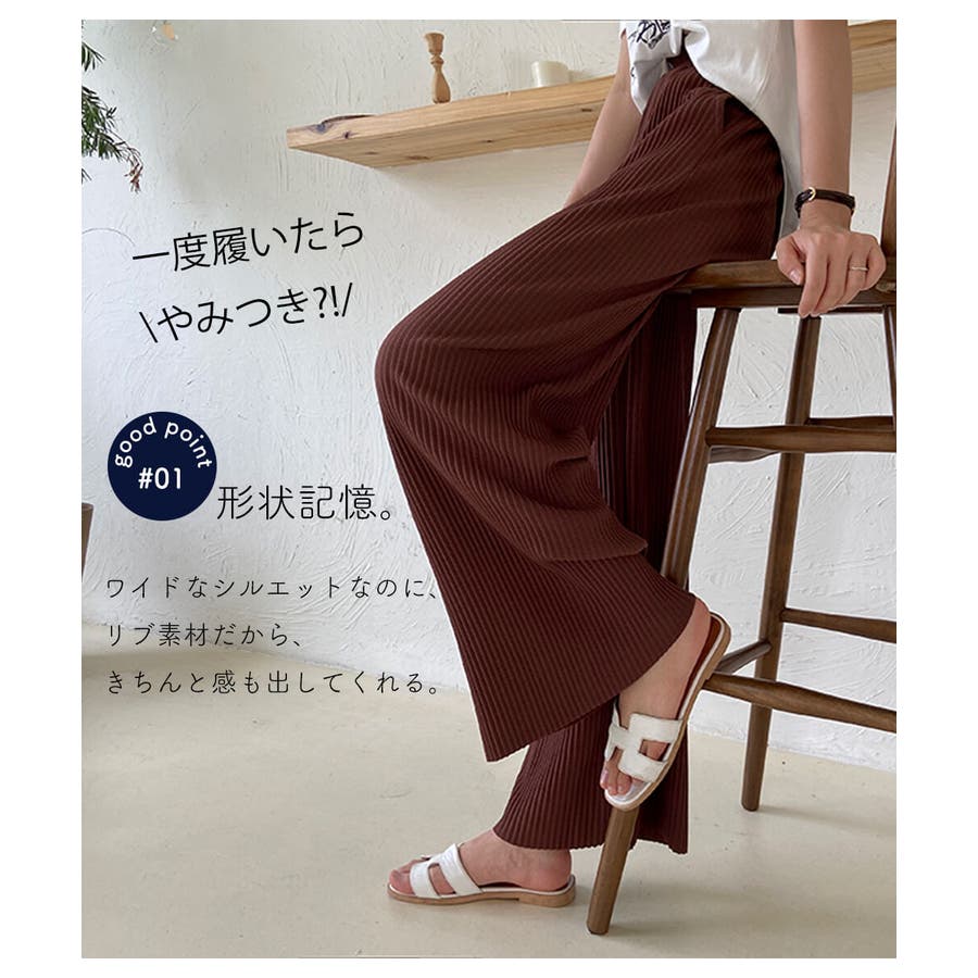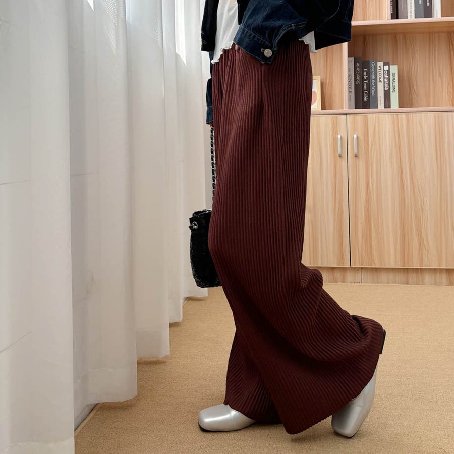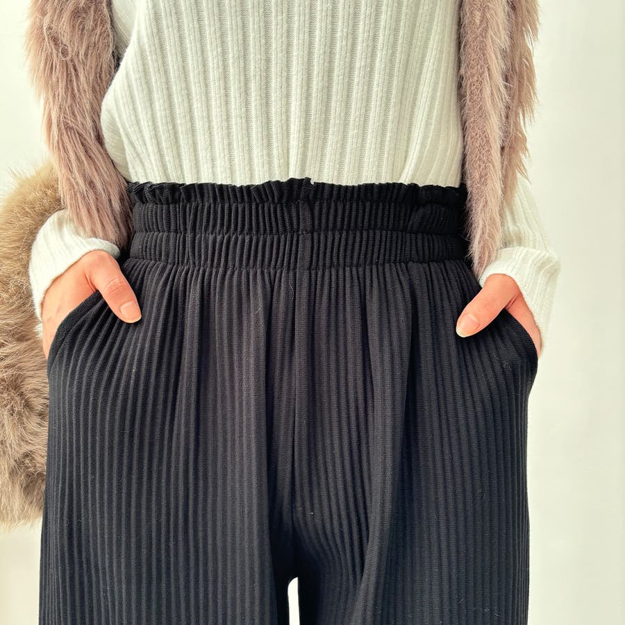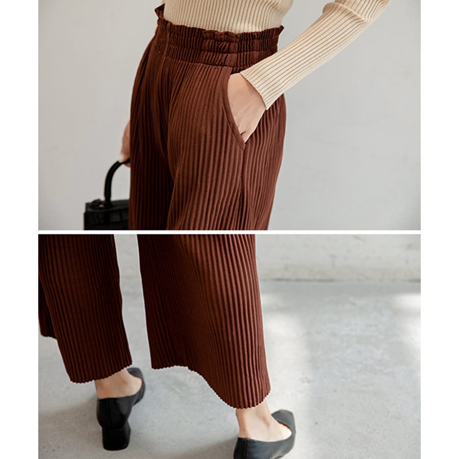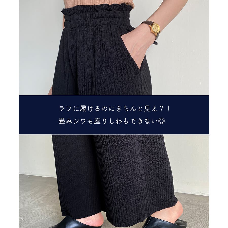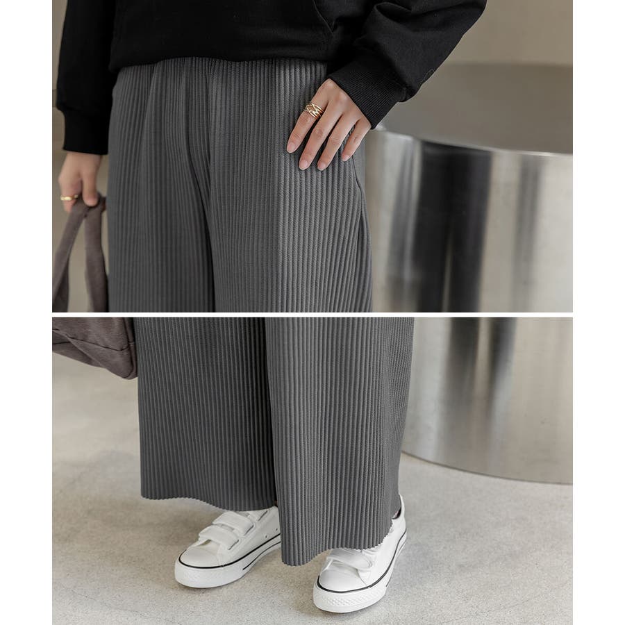 お気入り19万突破!脅威の高評価!リピ続出!秋プリーツリブワイドパンツ。形状記憶…