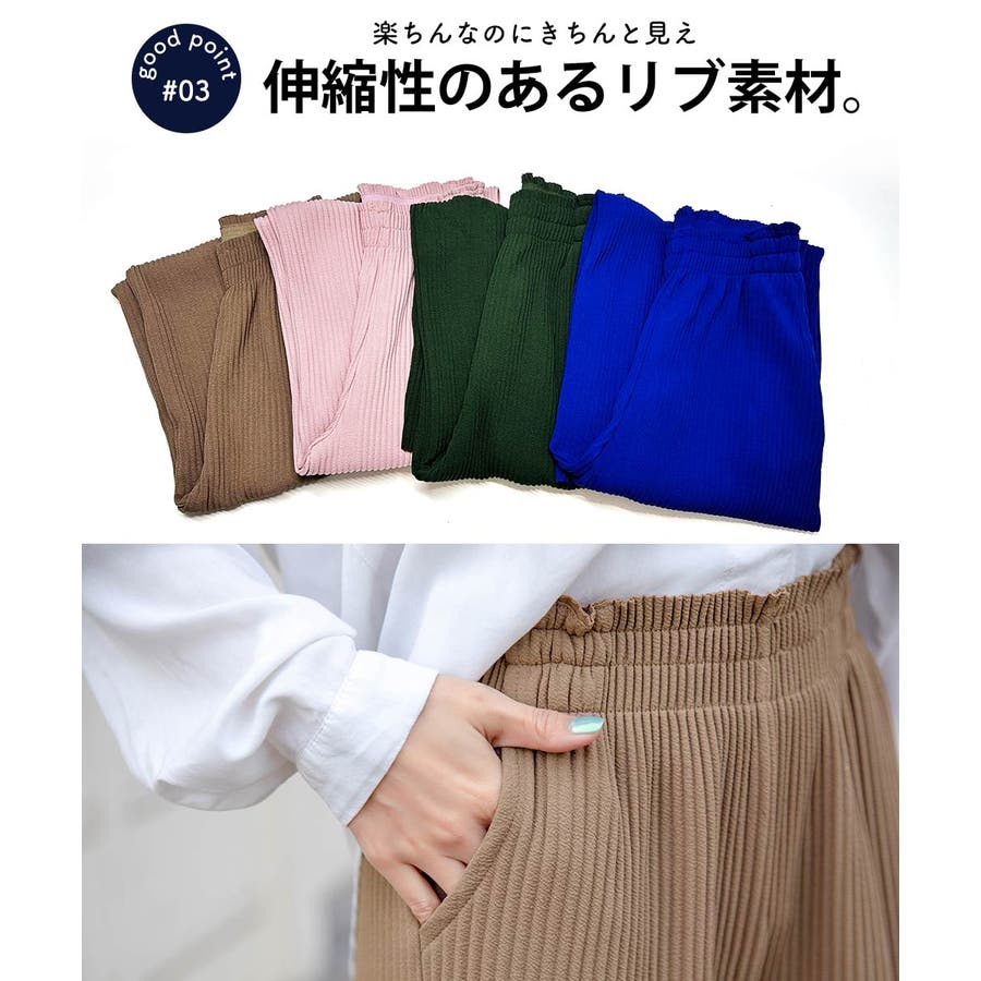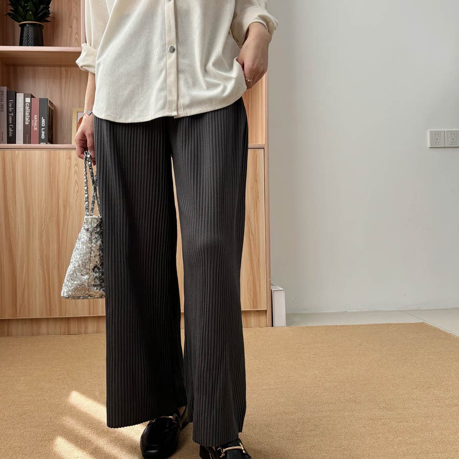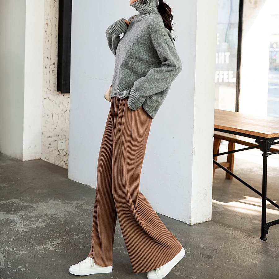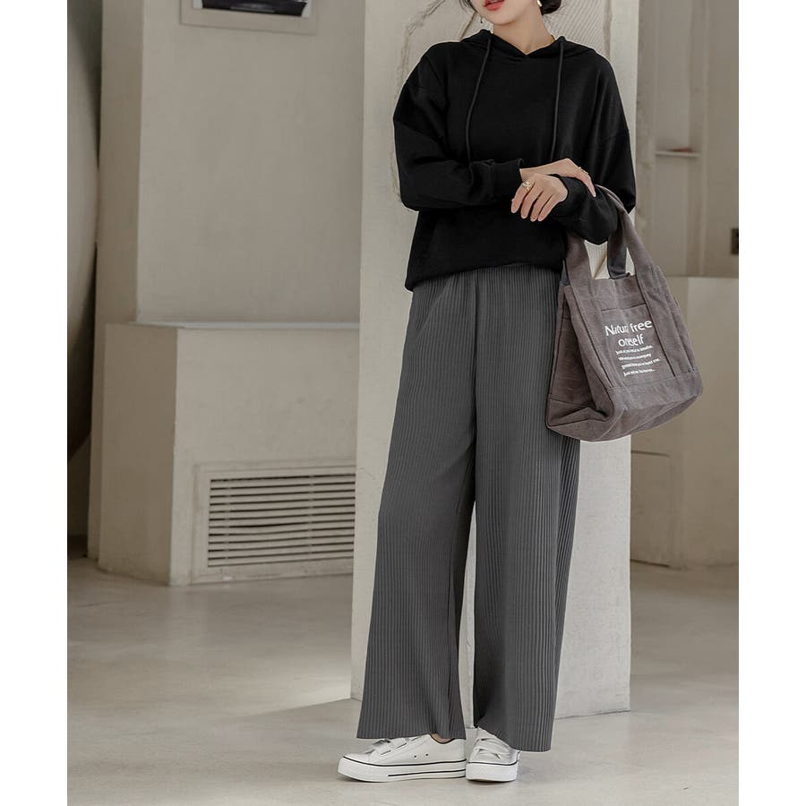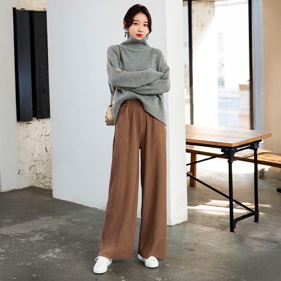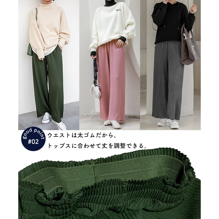 お気入り19万突破!脅威の高評価!リピ続出!秋プリーツリブワイドパンツ。形状記憶…