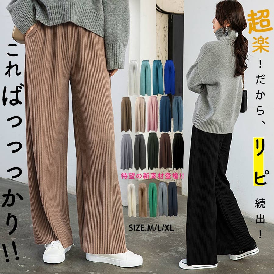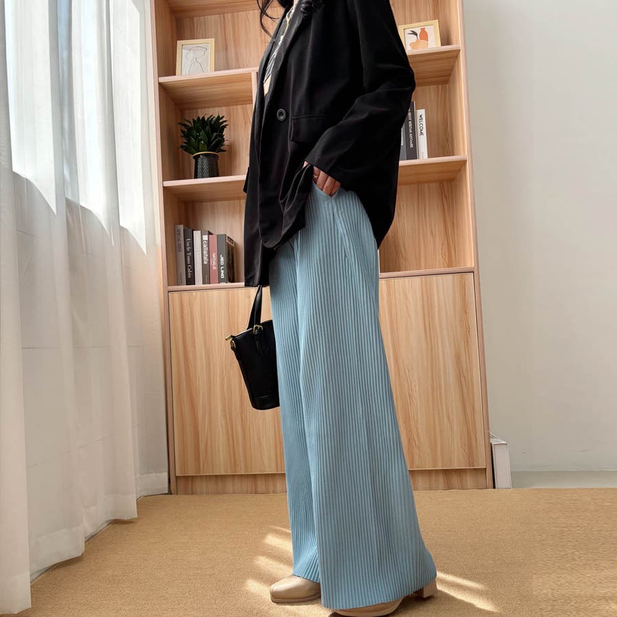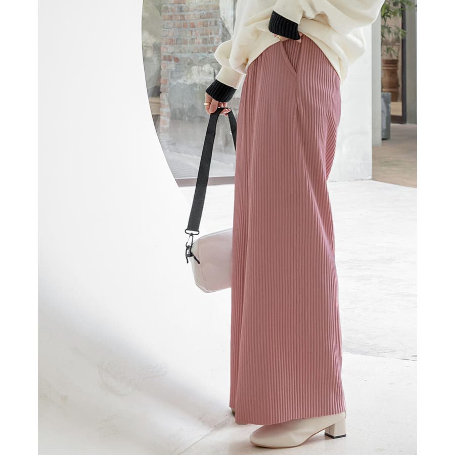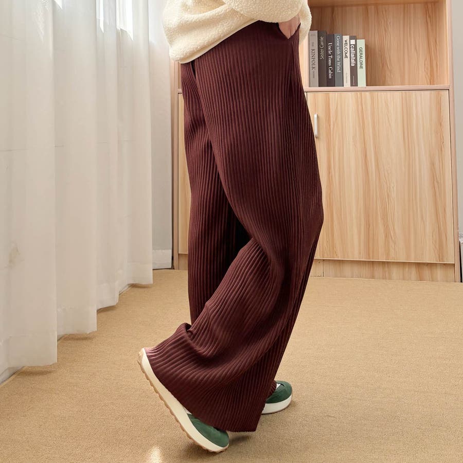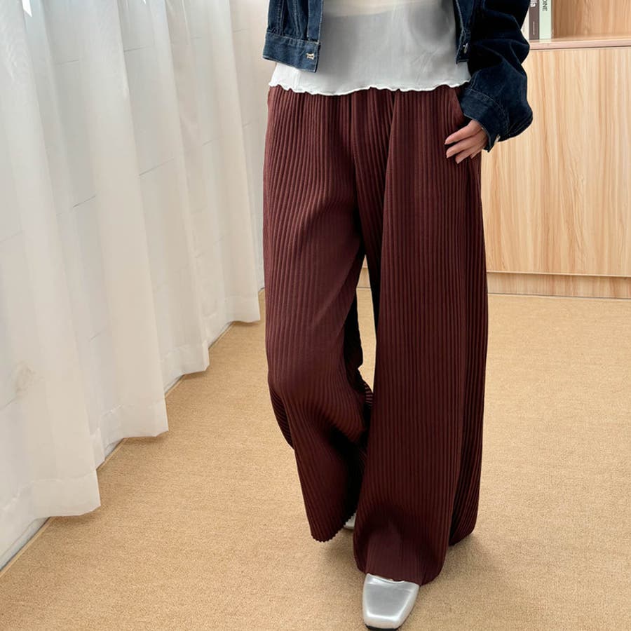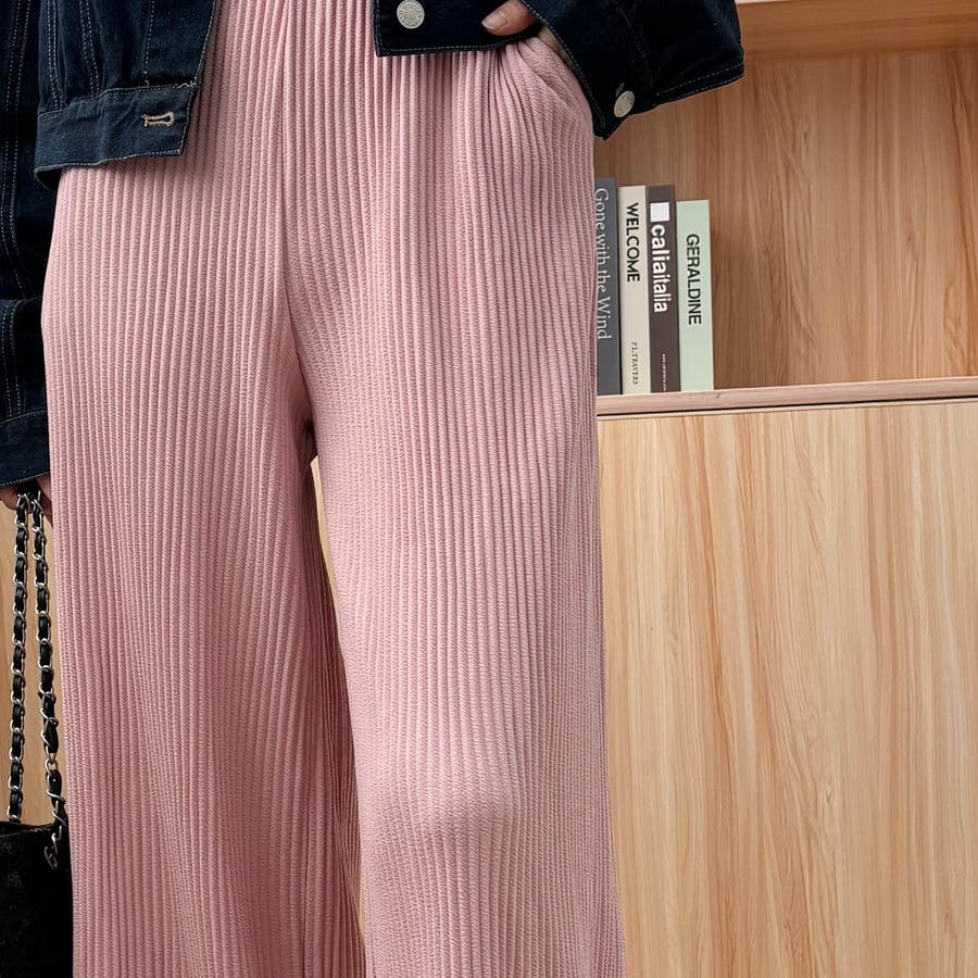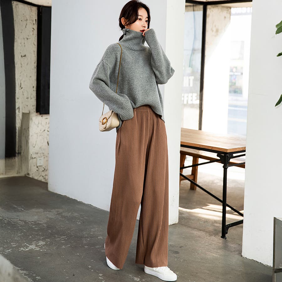 お気入り19万突破!脅威の高評価!リピ続出!秋プリーツリブワイドパンツ。形状記憶…