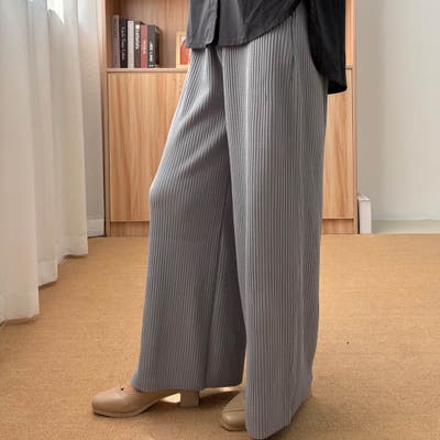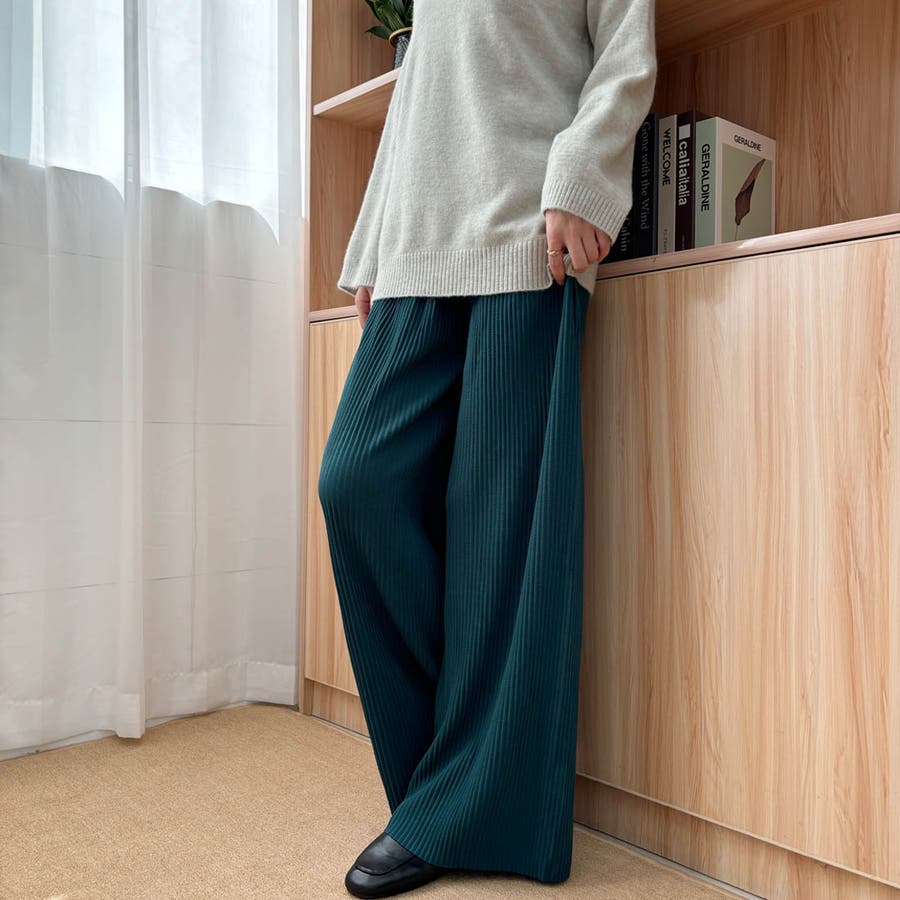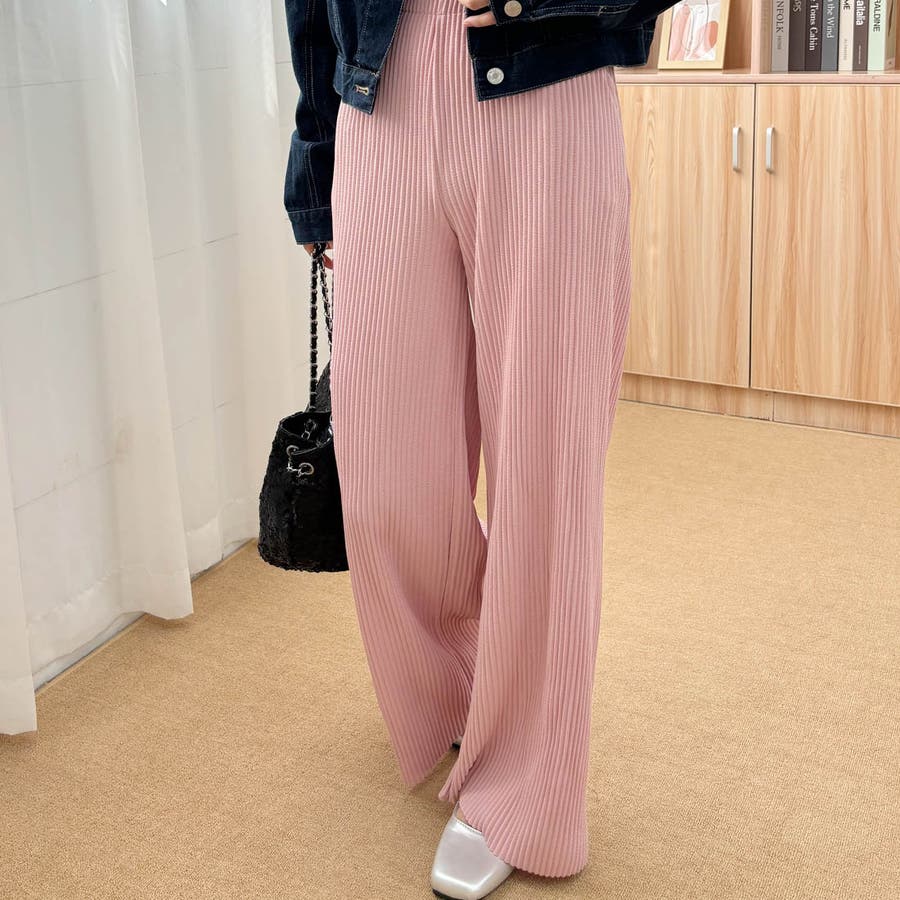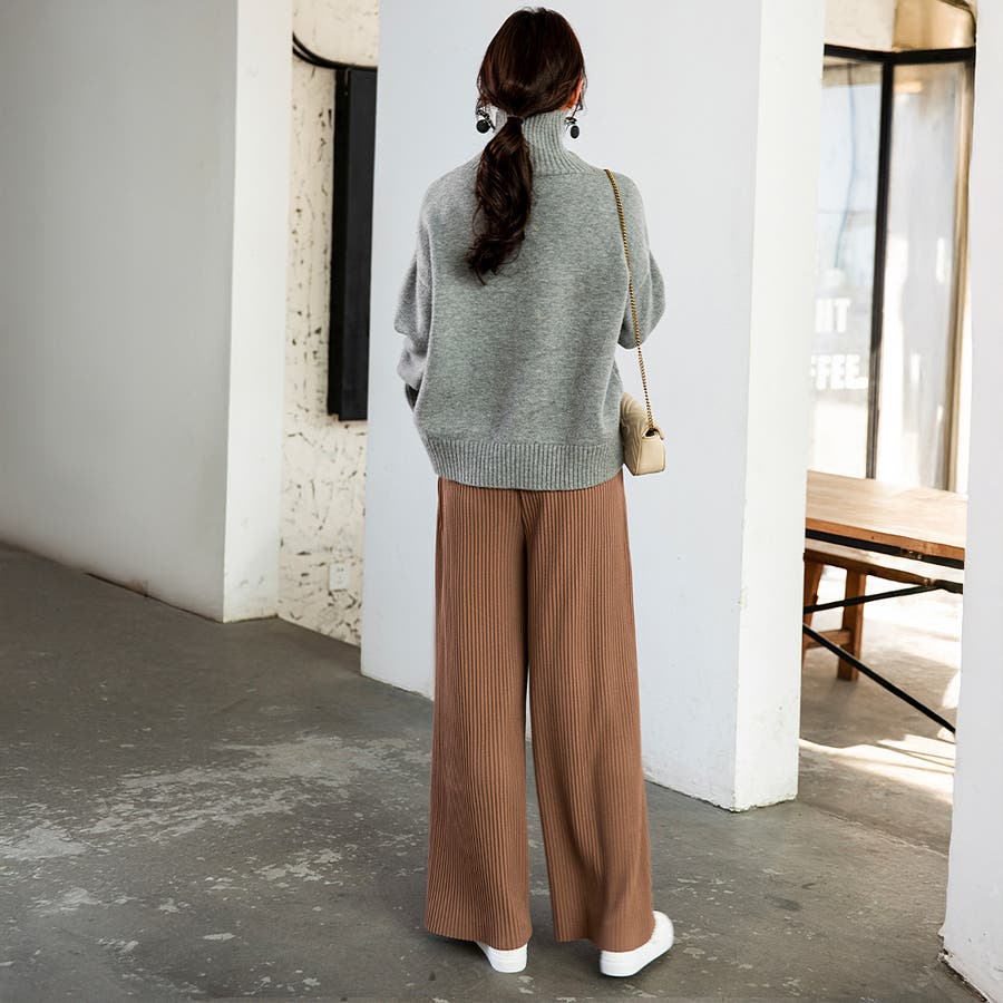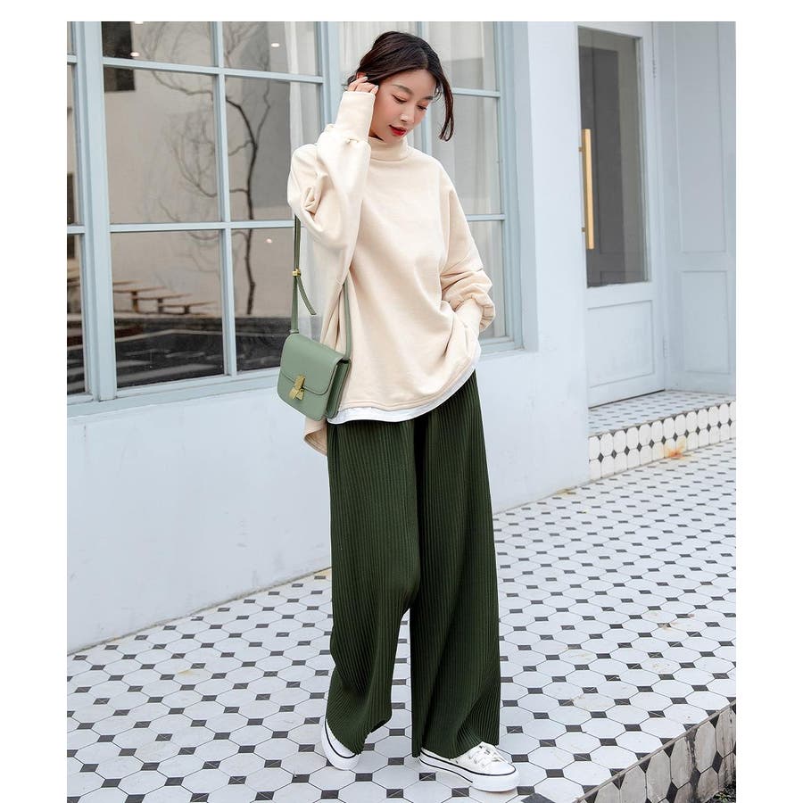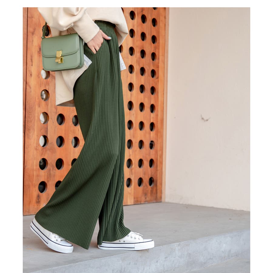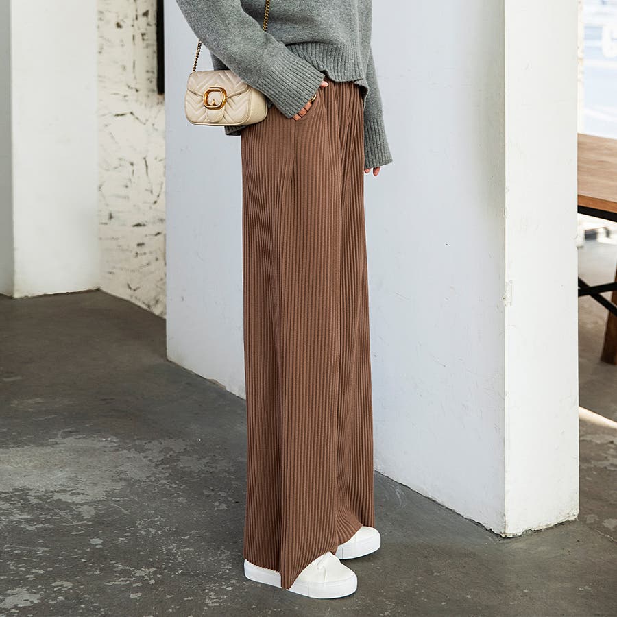 お気入り19万突破!脅威の高評価!リピ続出!秋プリーツリブワイドパンツ。形状記憶…