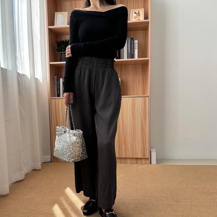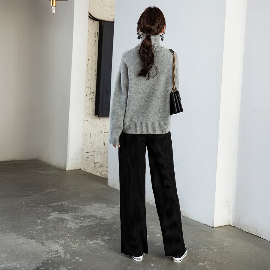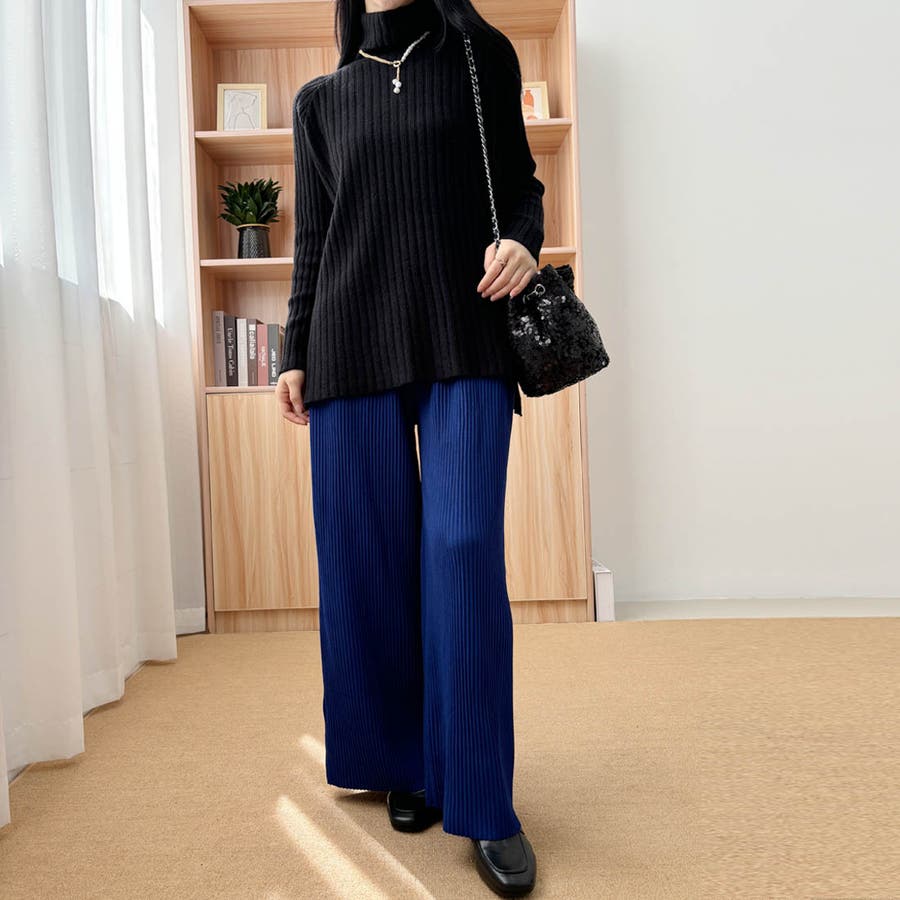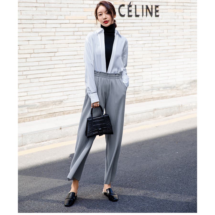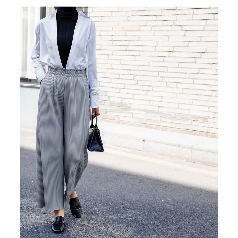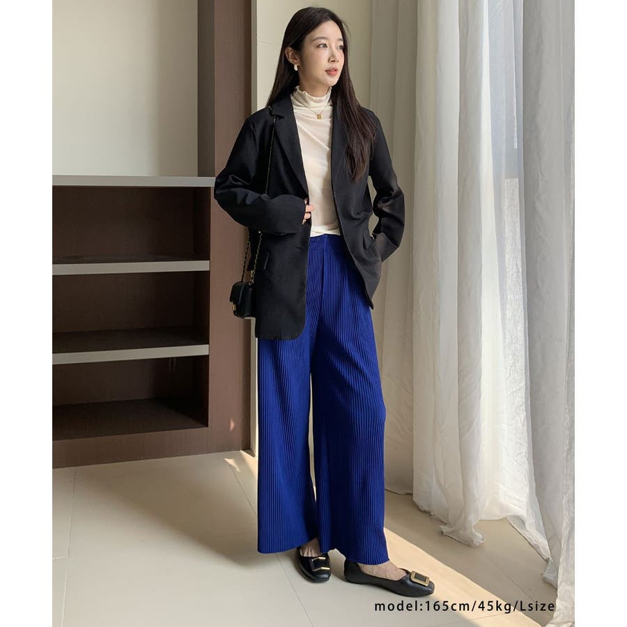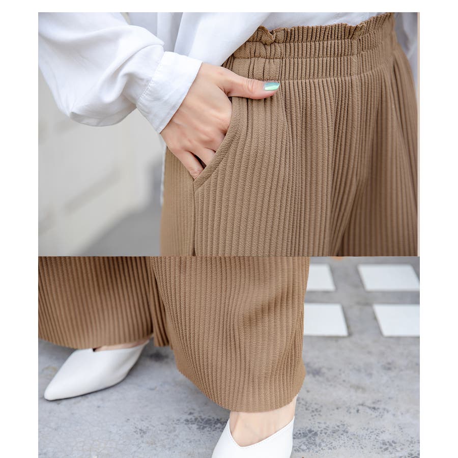 お気入り19万突破!脅威の高評価!リピ続出!秋プリーツリブワイドパンツ。形状記憶…