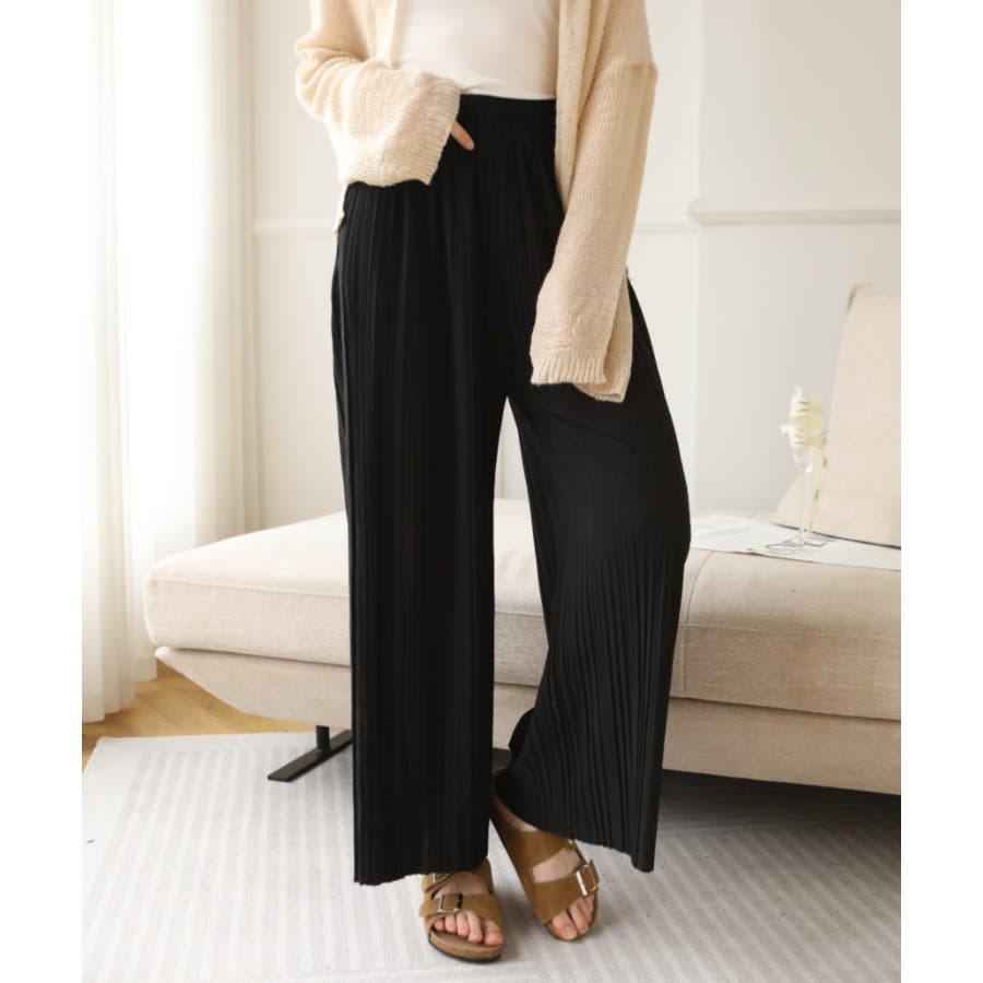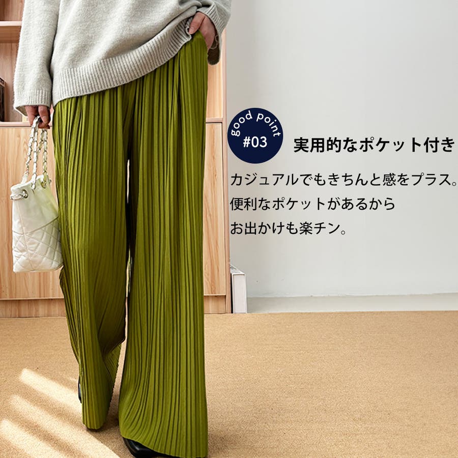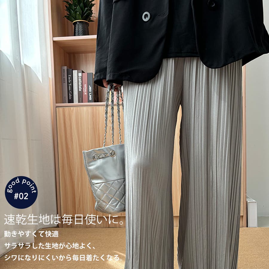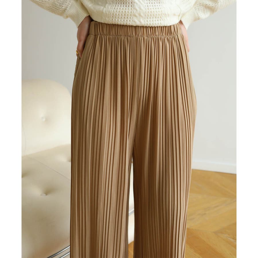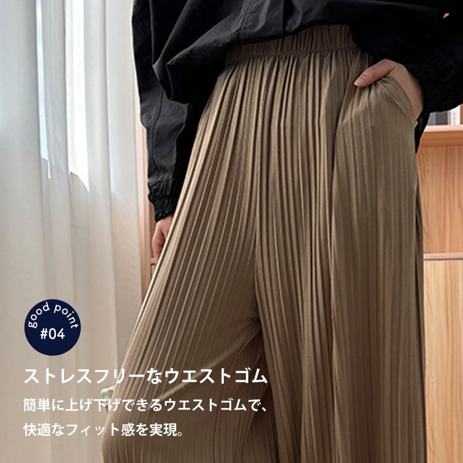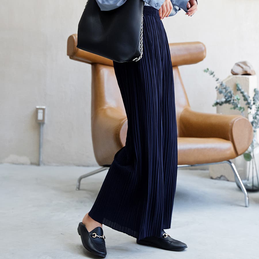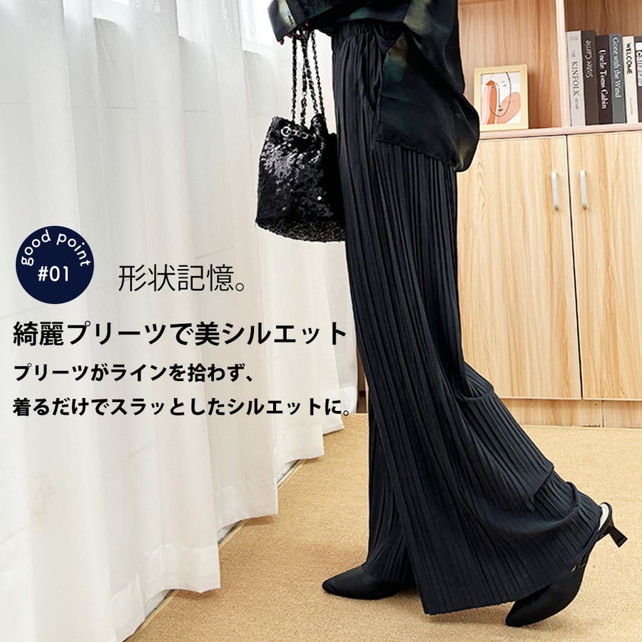 秋も快適にサラッと穿ける。上品美脚ストレートプリーツパンツ ワイドパンツ