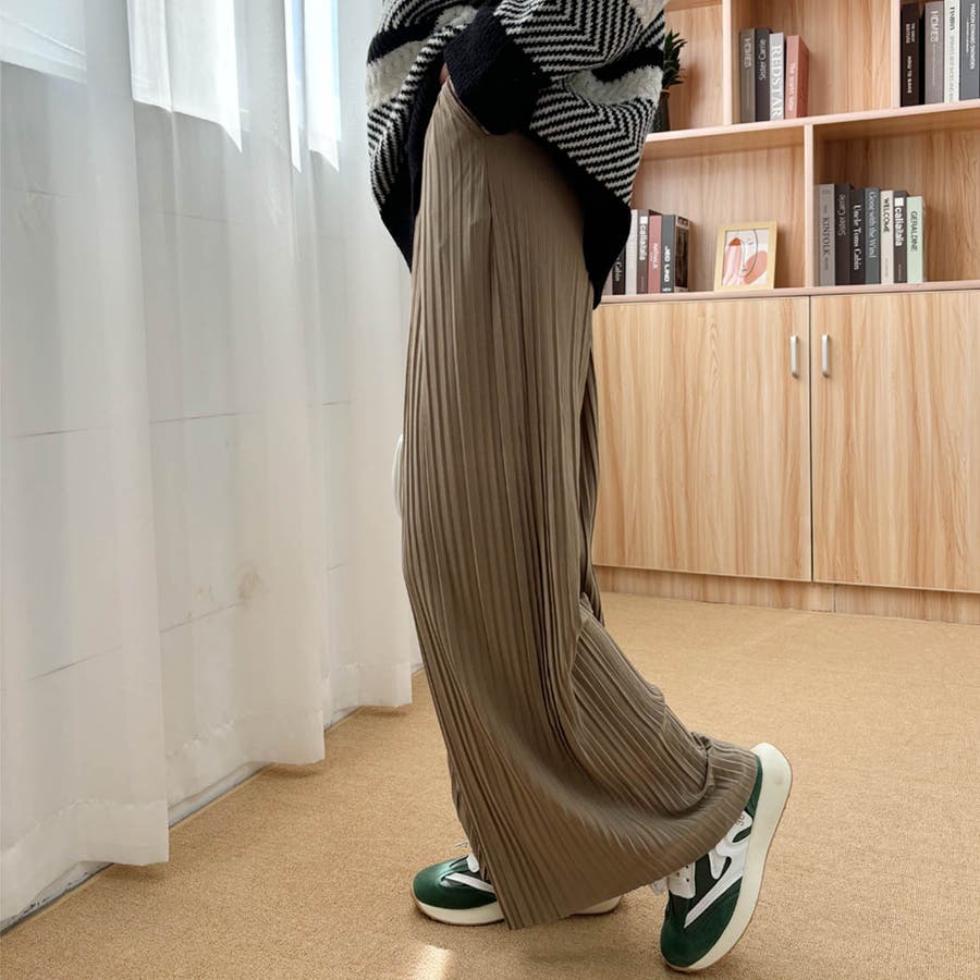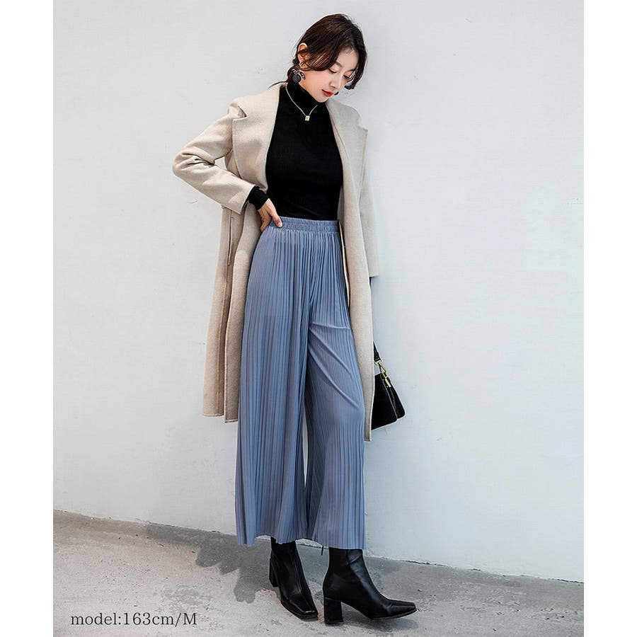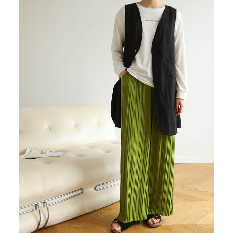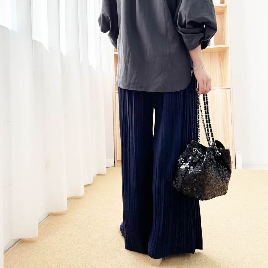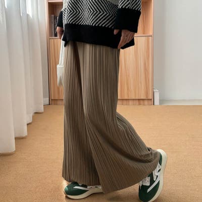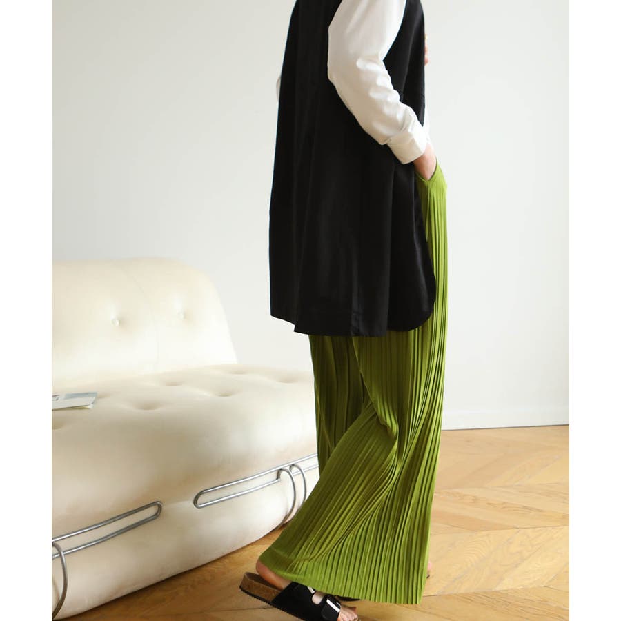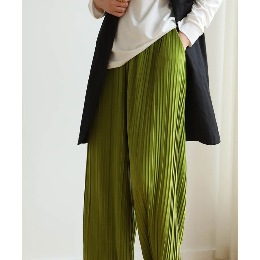 秋も快適にサラッと穿ける。上品美脚ストレートプリーツパンツ ワイドパンツ