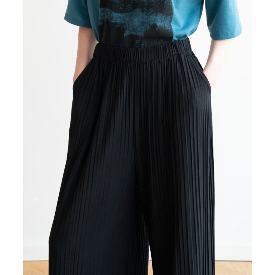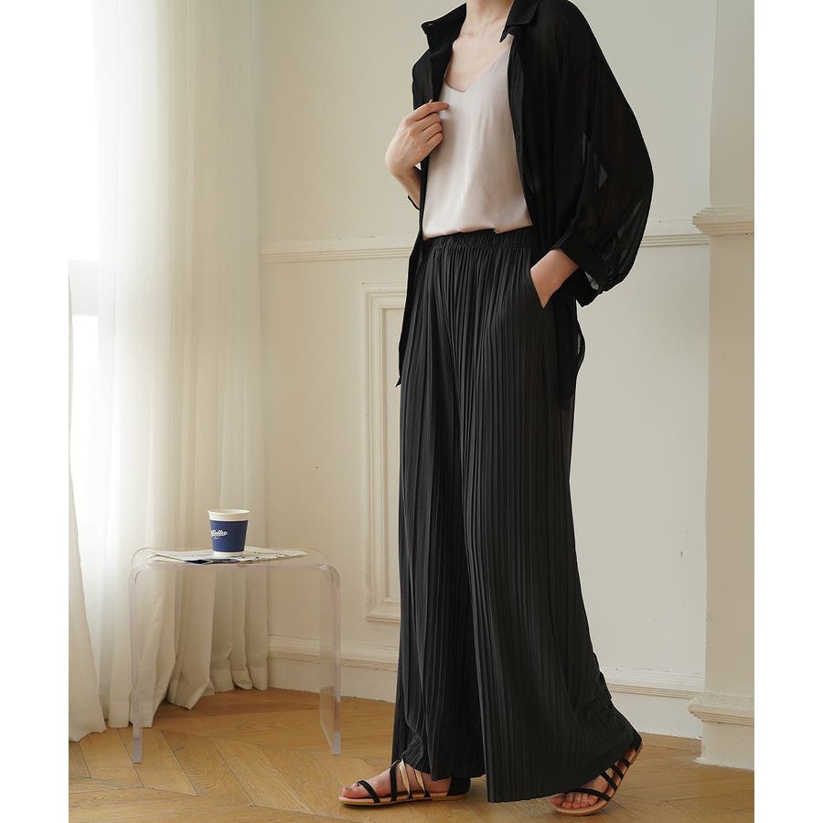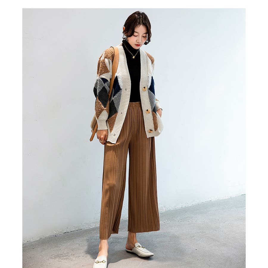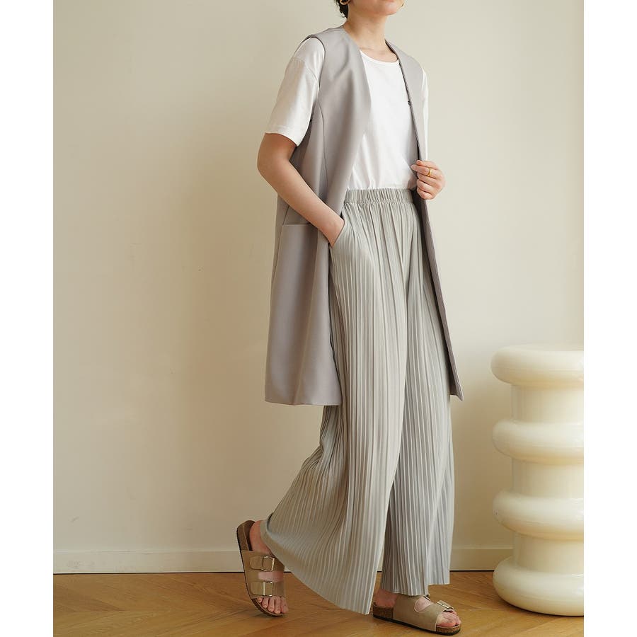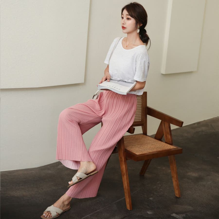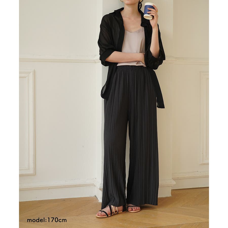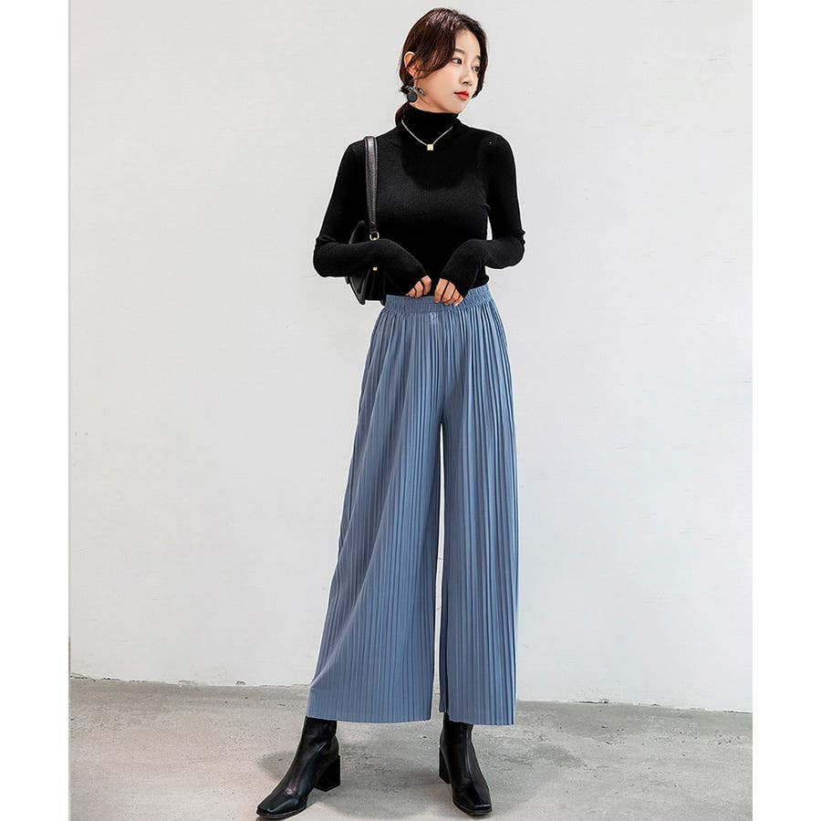 秋も快適にサラッと穿ける。上品美脚ストレートプリーツパンツ ワイドパンツ