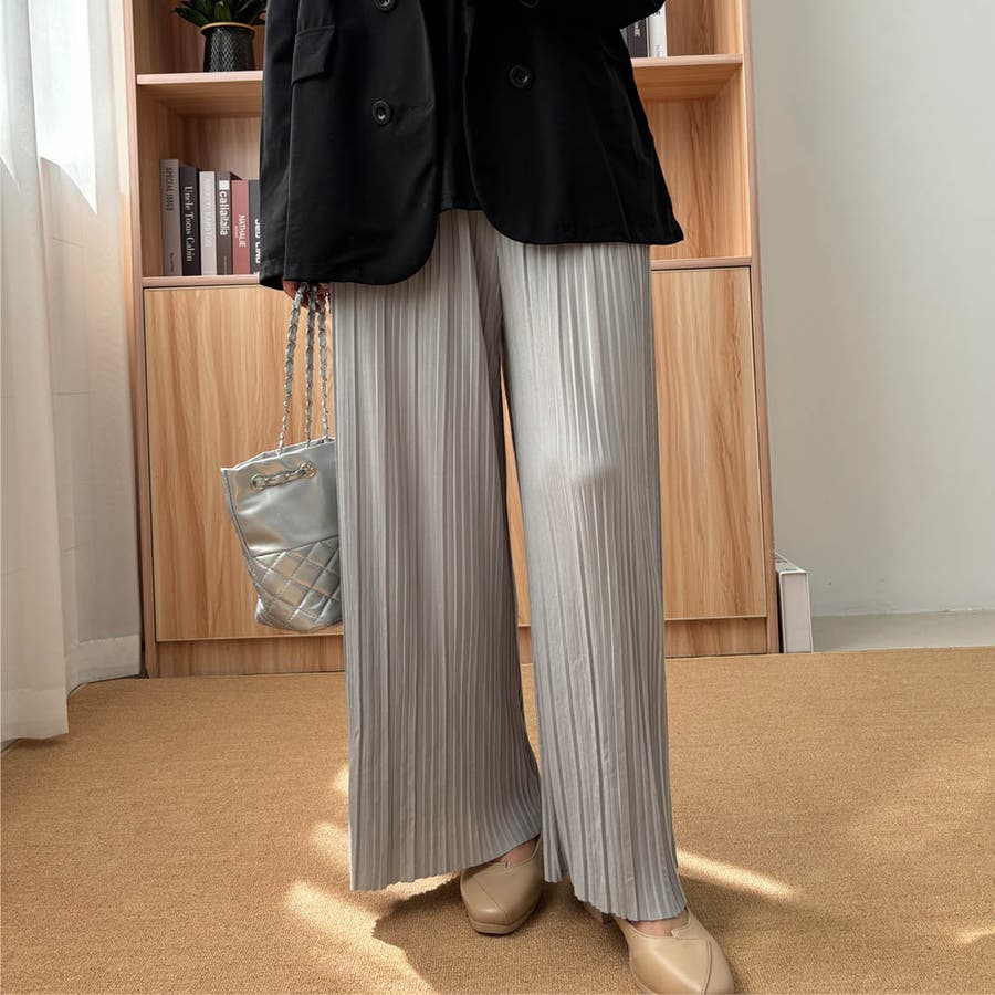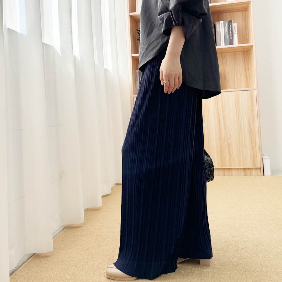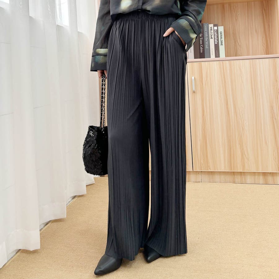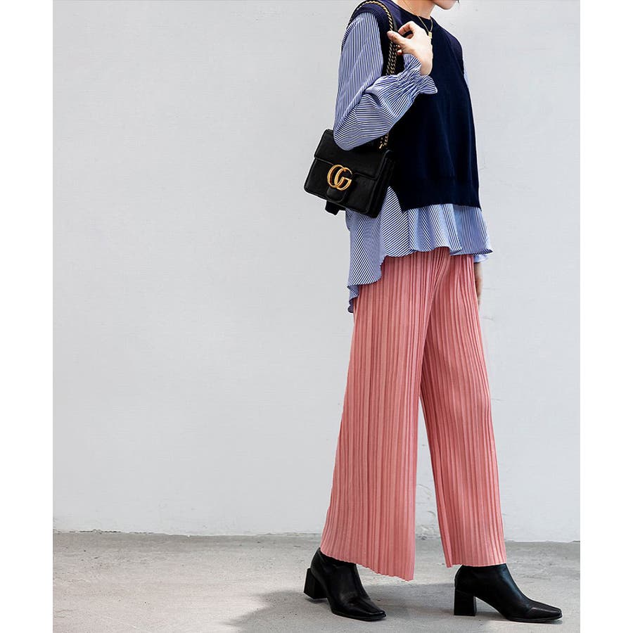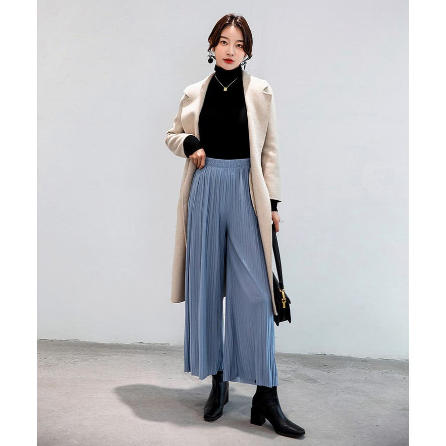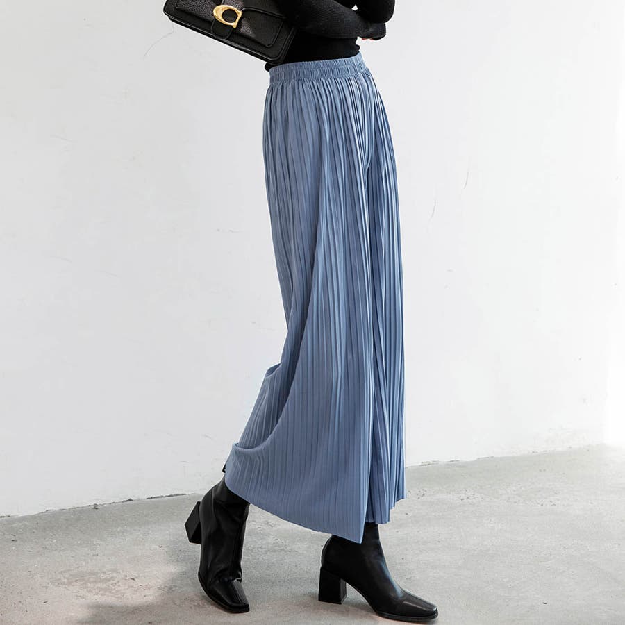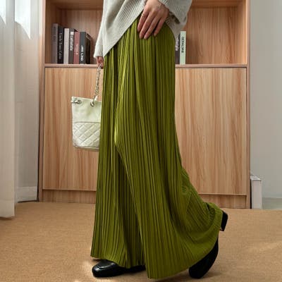秋も快適にサラッと穿ける。上品美脚ストレートプリーツパンツ ワイドパンツ