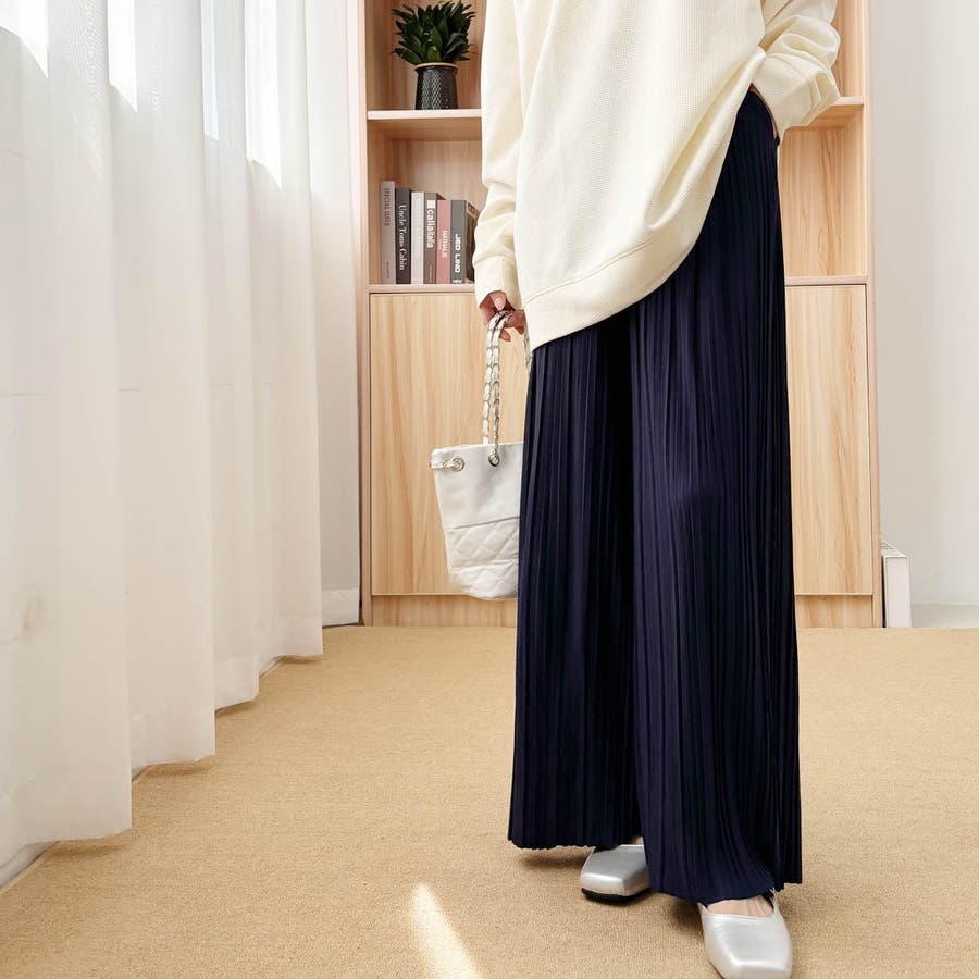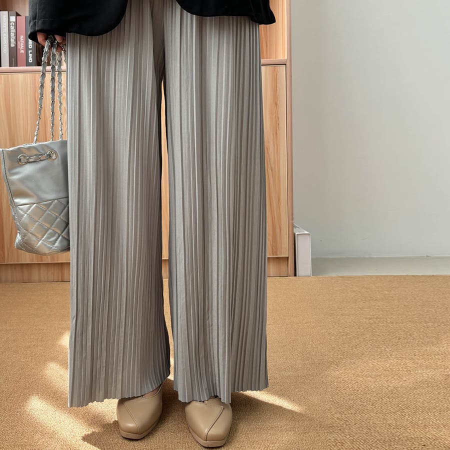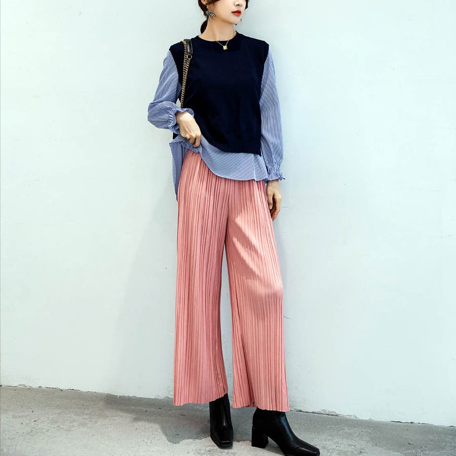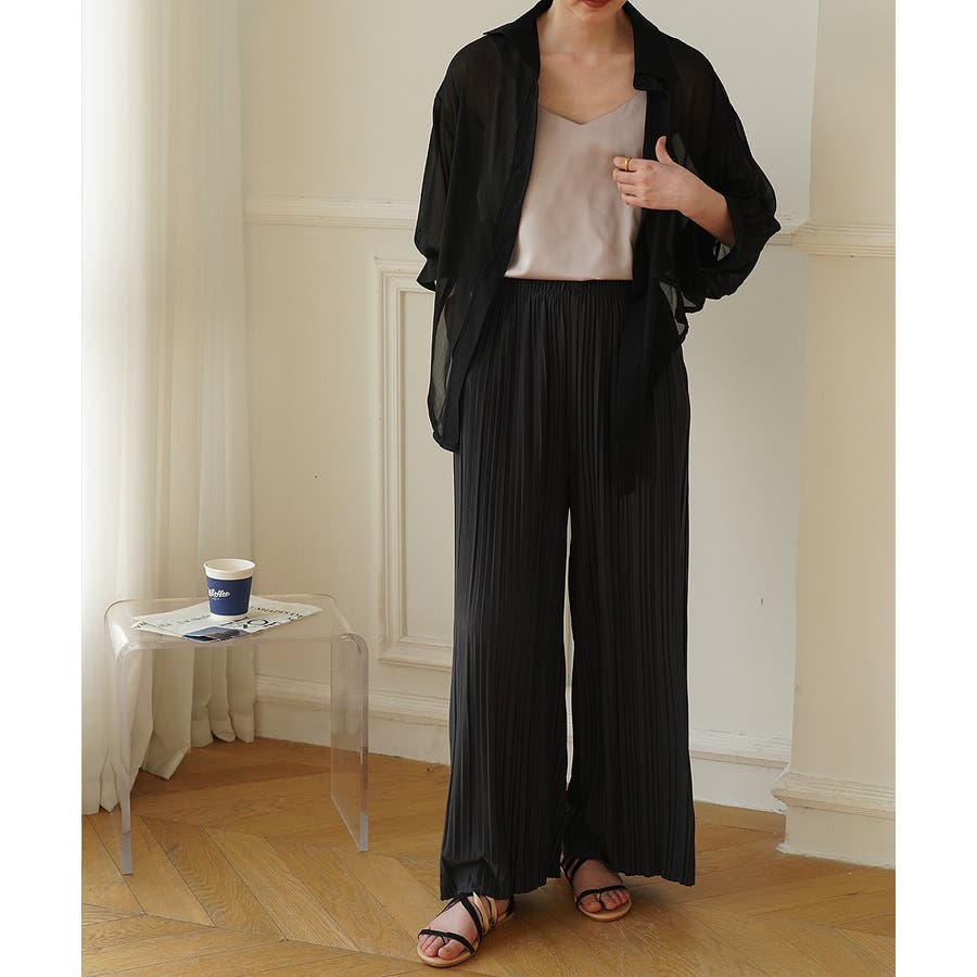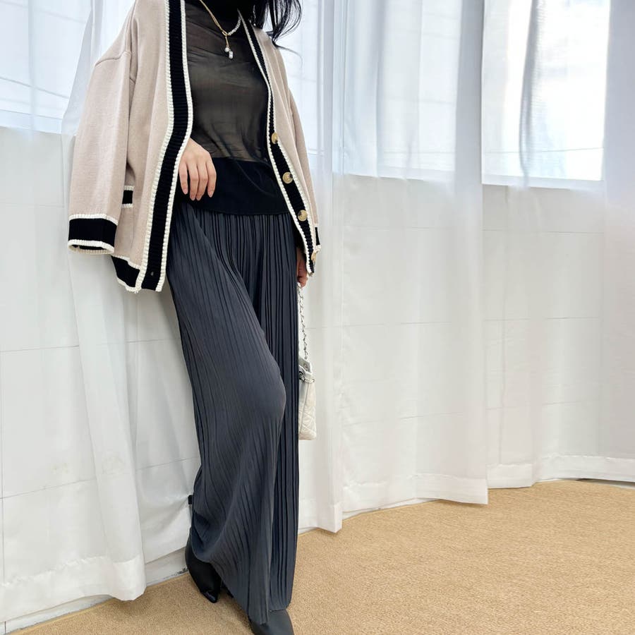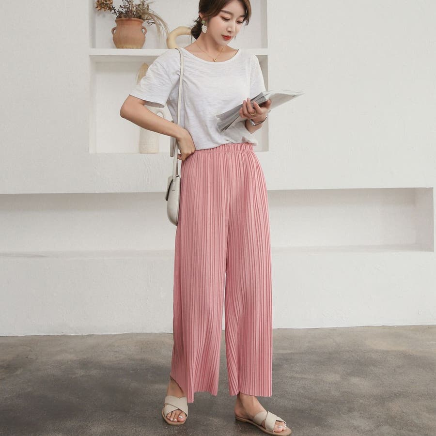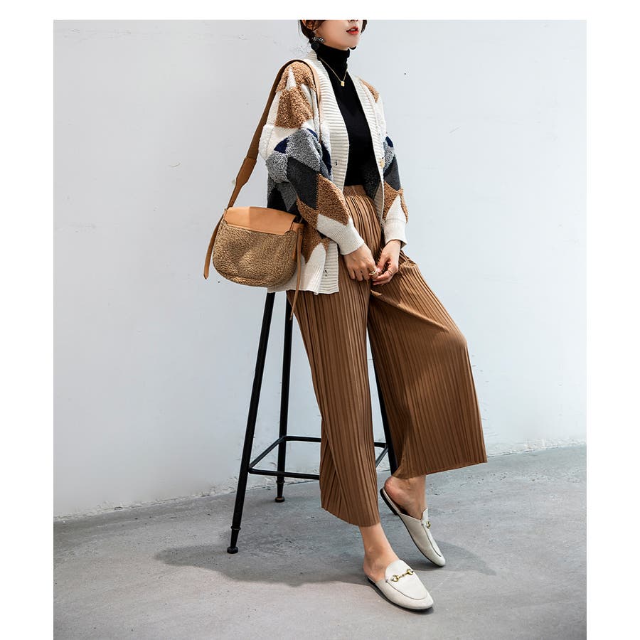 秋も快適にサラッと穿ける。上品美脚ストレートプリーツパンツ ワイドパンツ