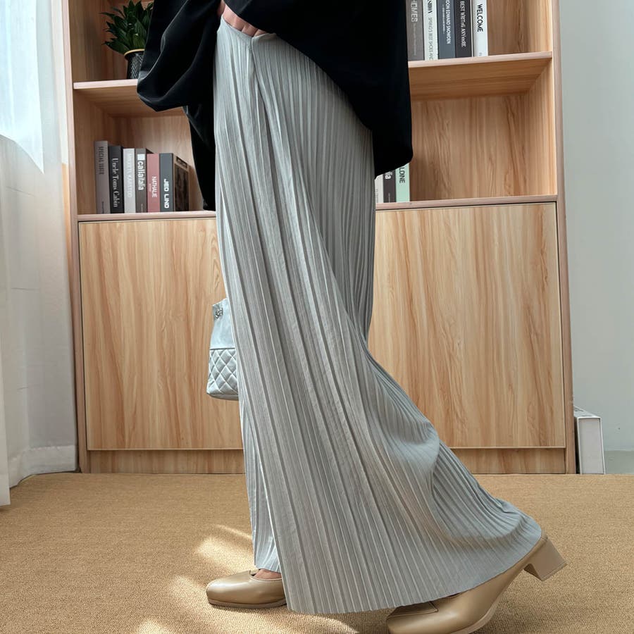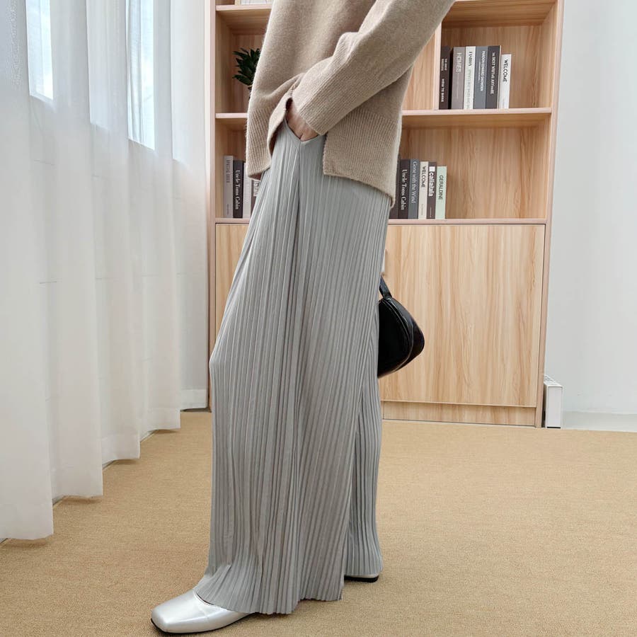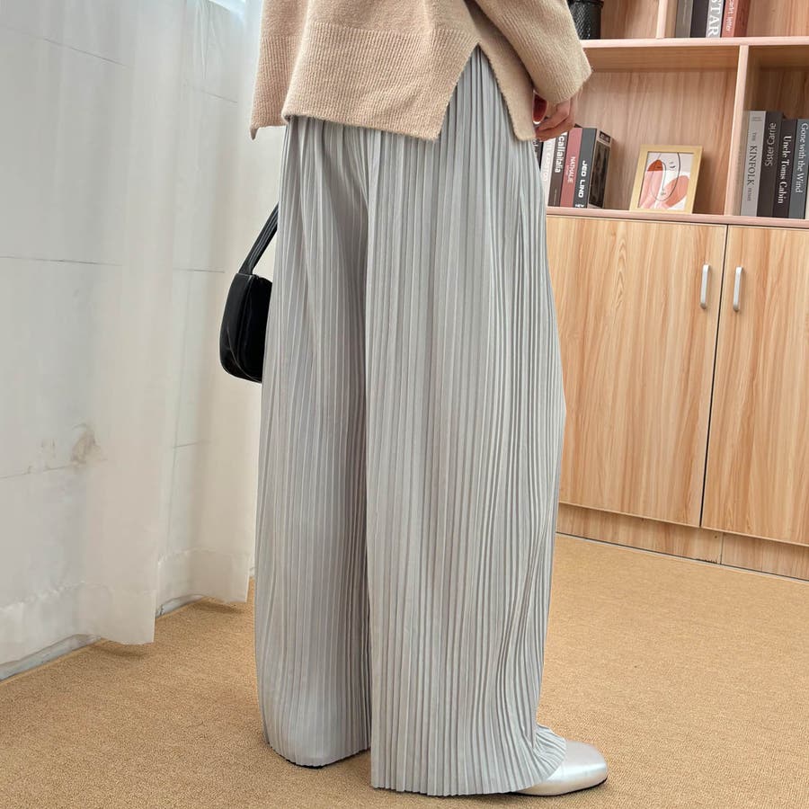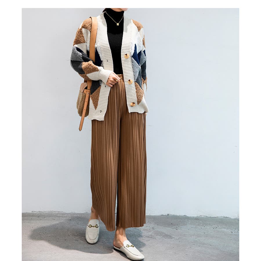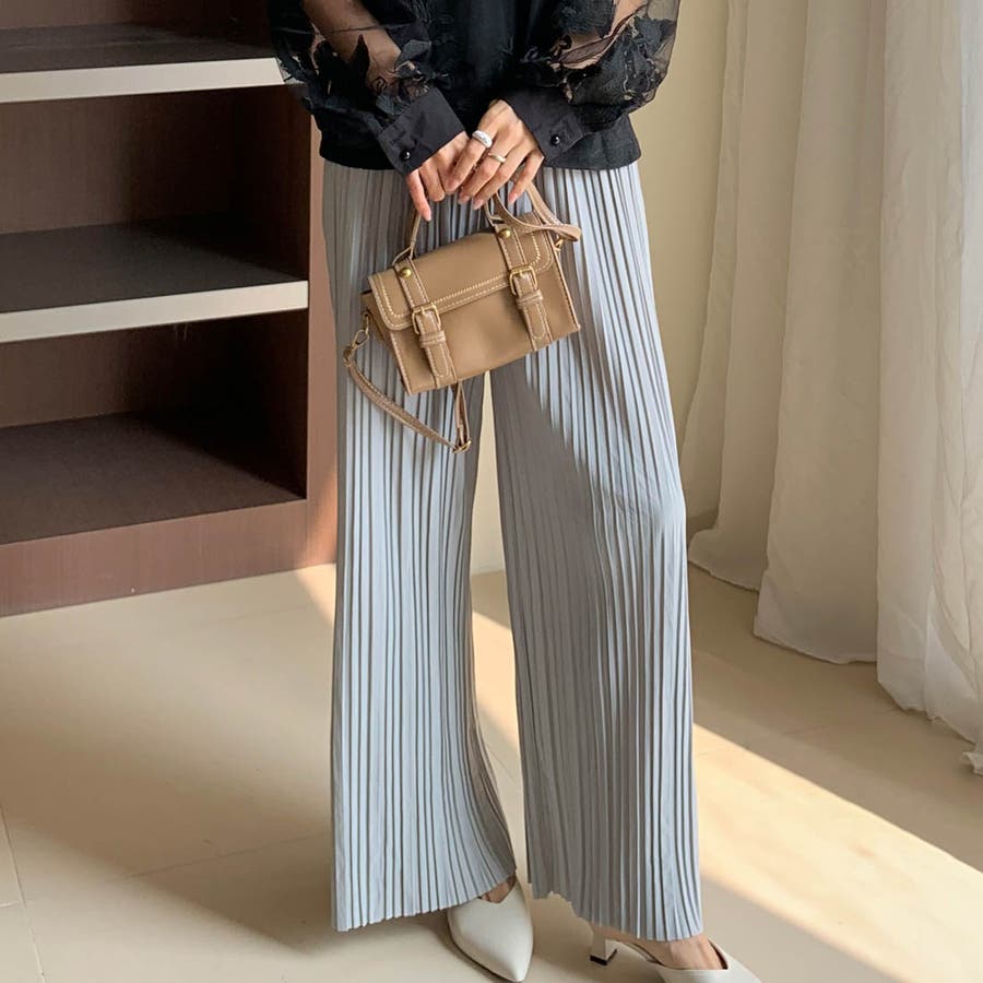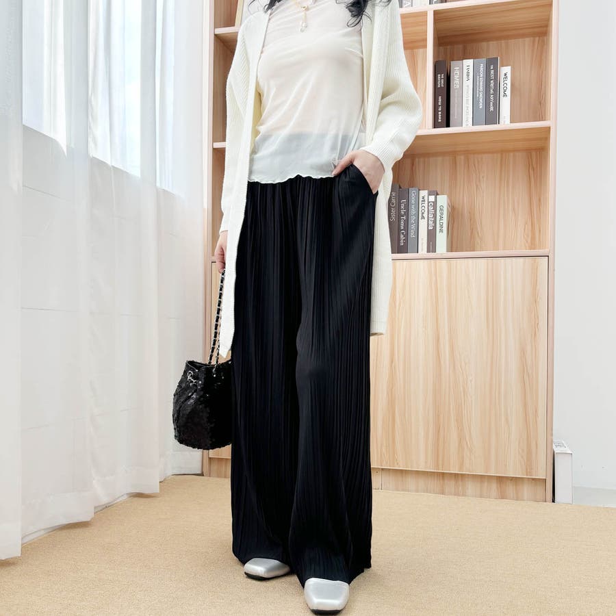 秋も快適にサラッと穿ける。上品美脚ストレートプリーツパンツ ワイドパンツ