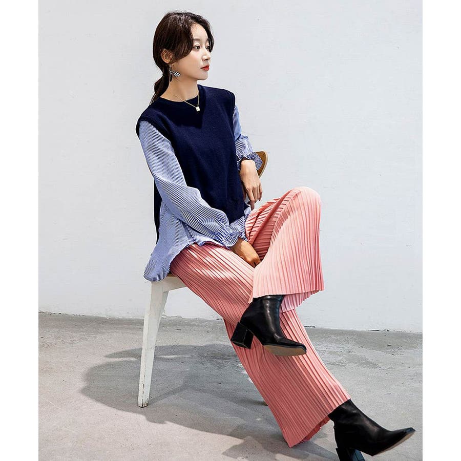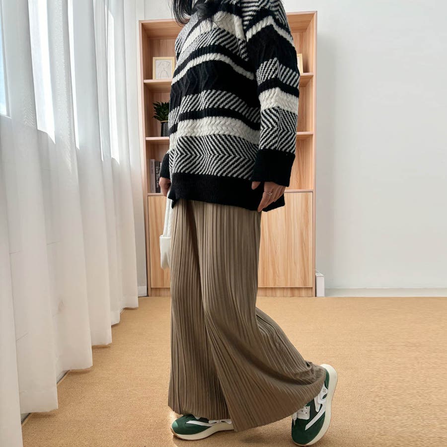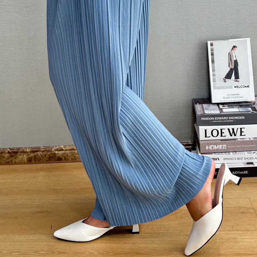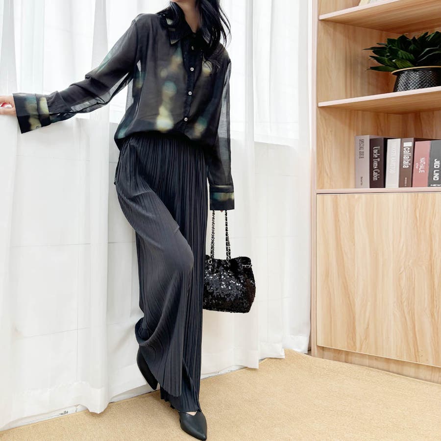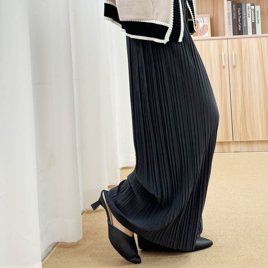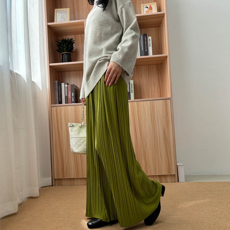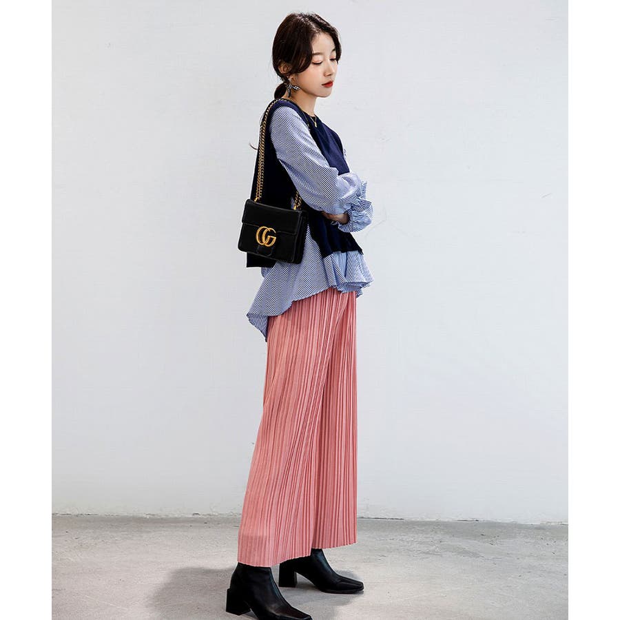 秋も快適にサラッと穿ける。上品美脚ストレートプリーツパンツ ワイドパンツ