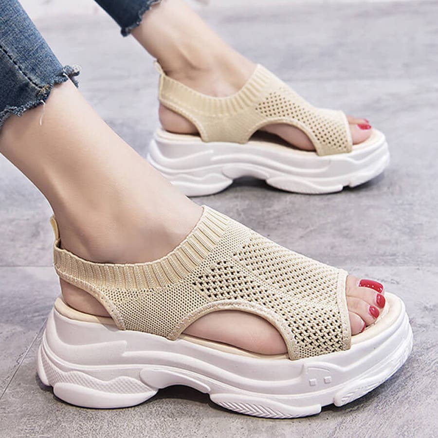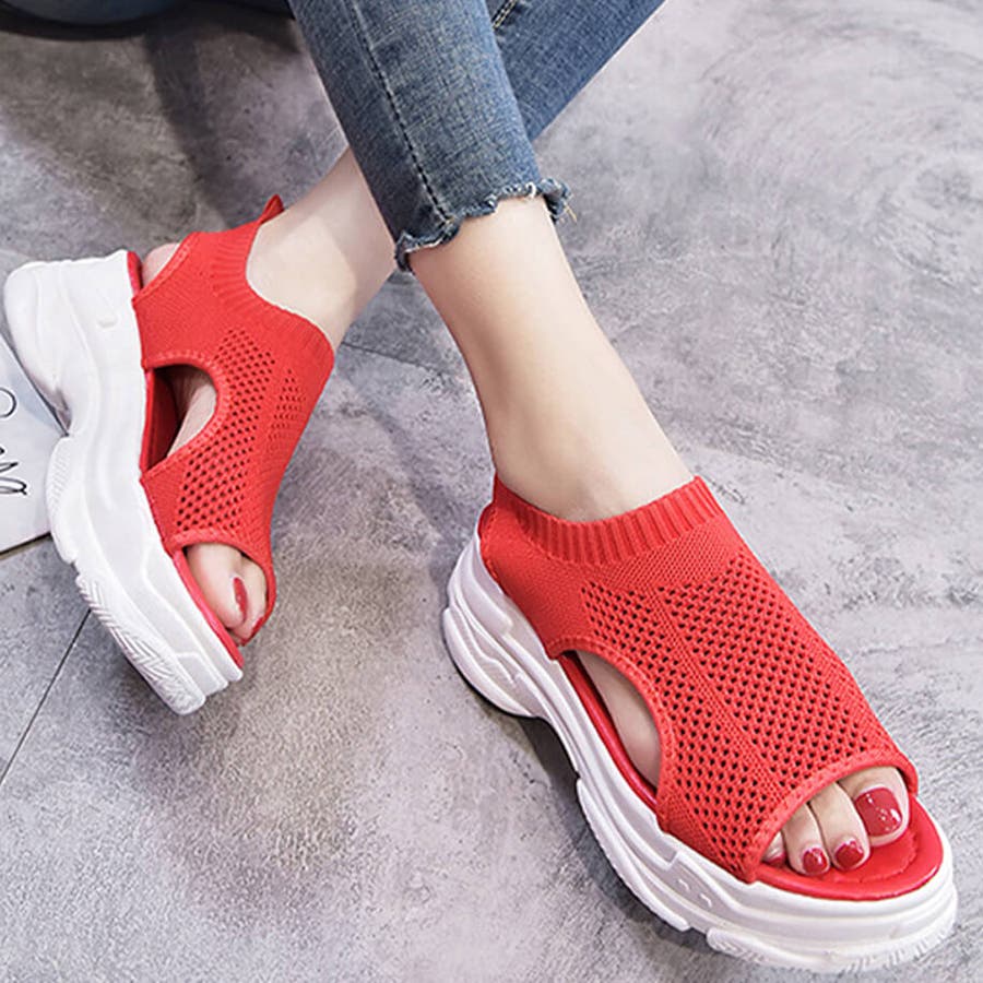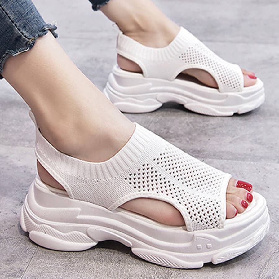 メッシュデザインがらしい厚底サンダル スポーツサンダル スタイルアップ