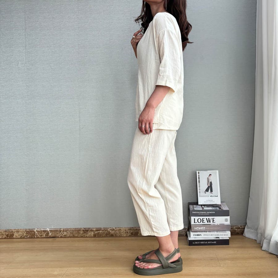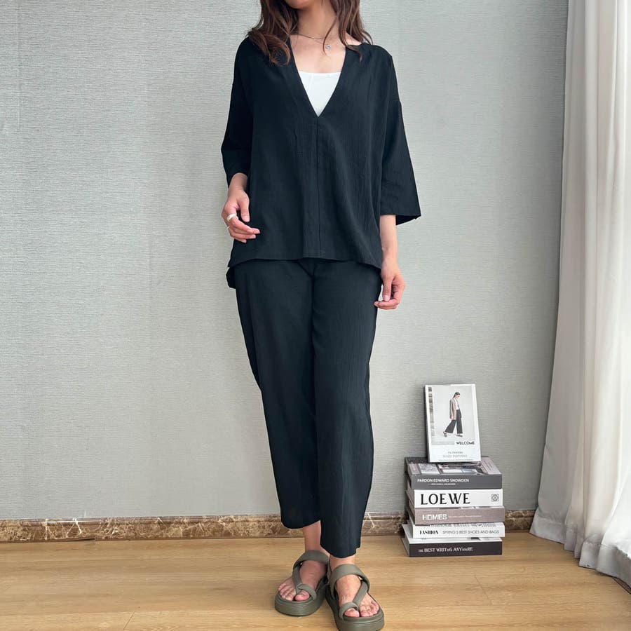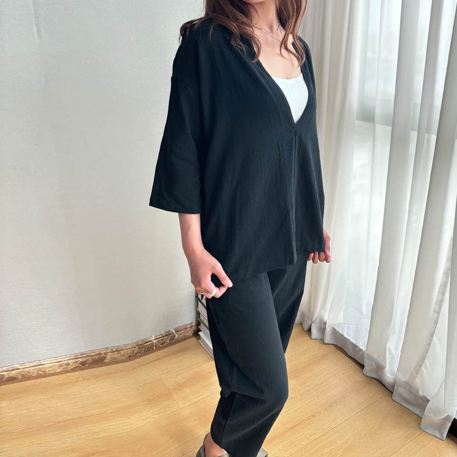 簡単におしゃれなコーデが完成するスキッパーブラウス&パンツセットアップ ゆったり