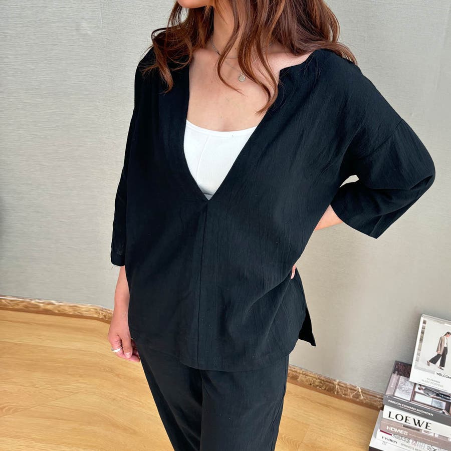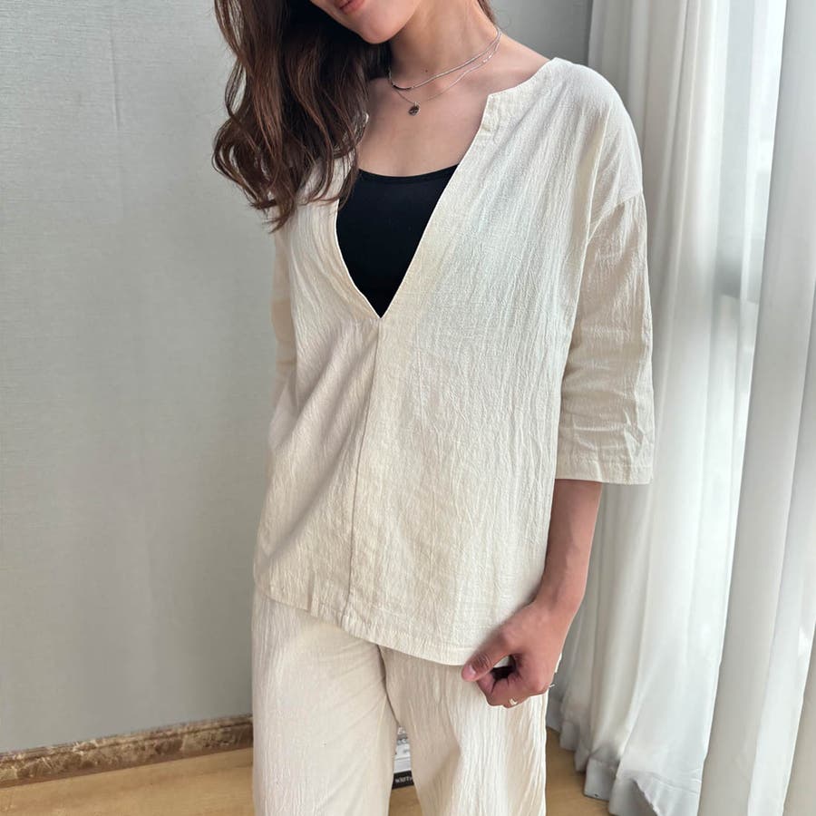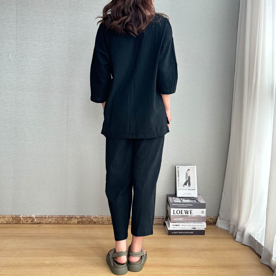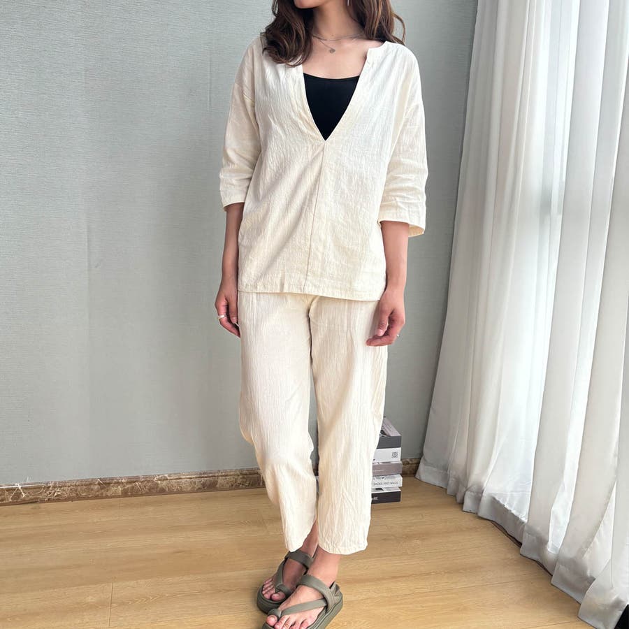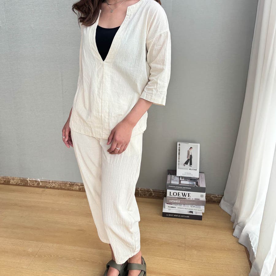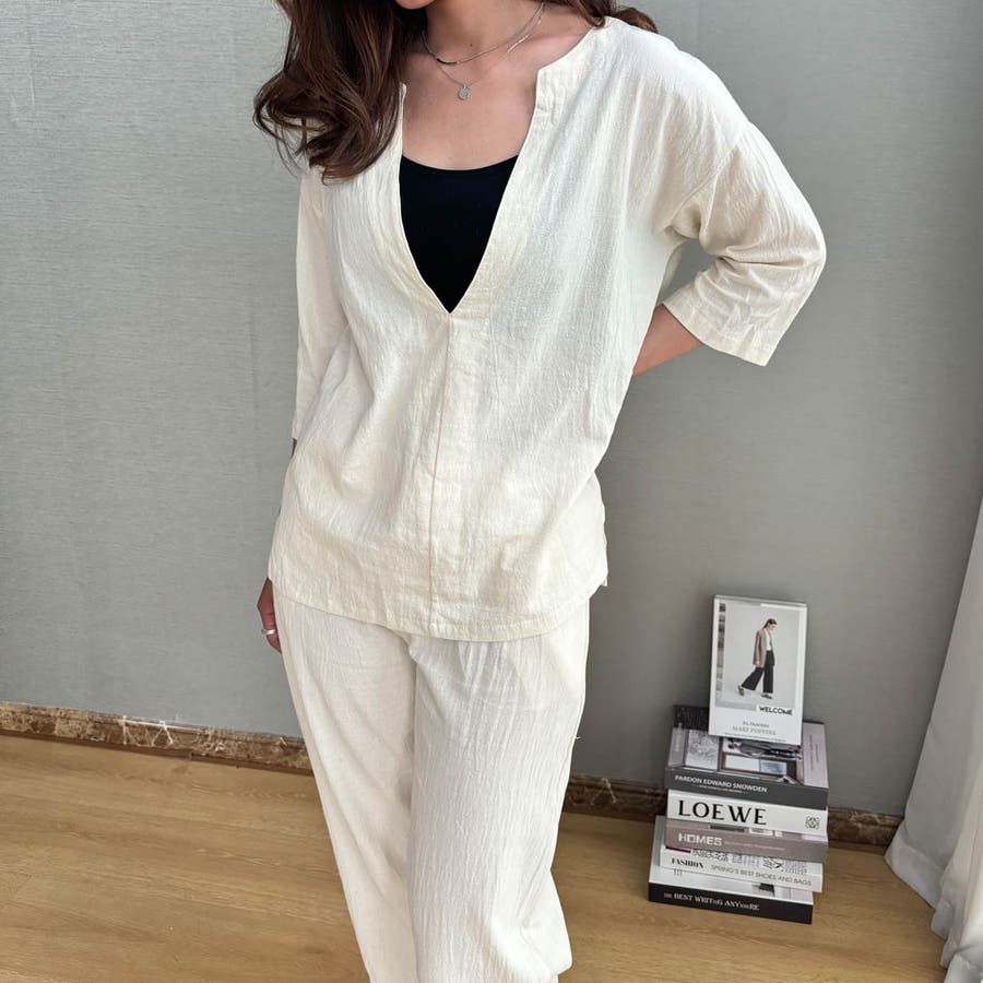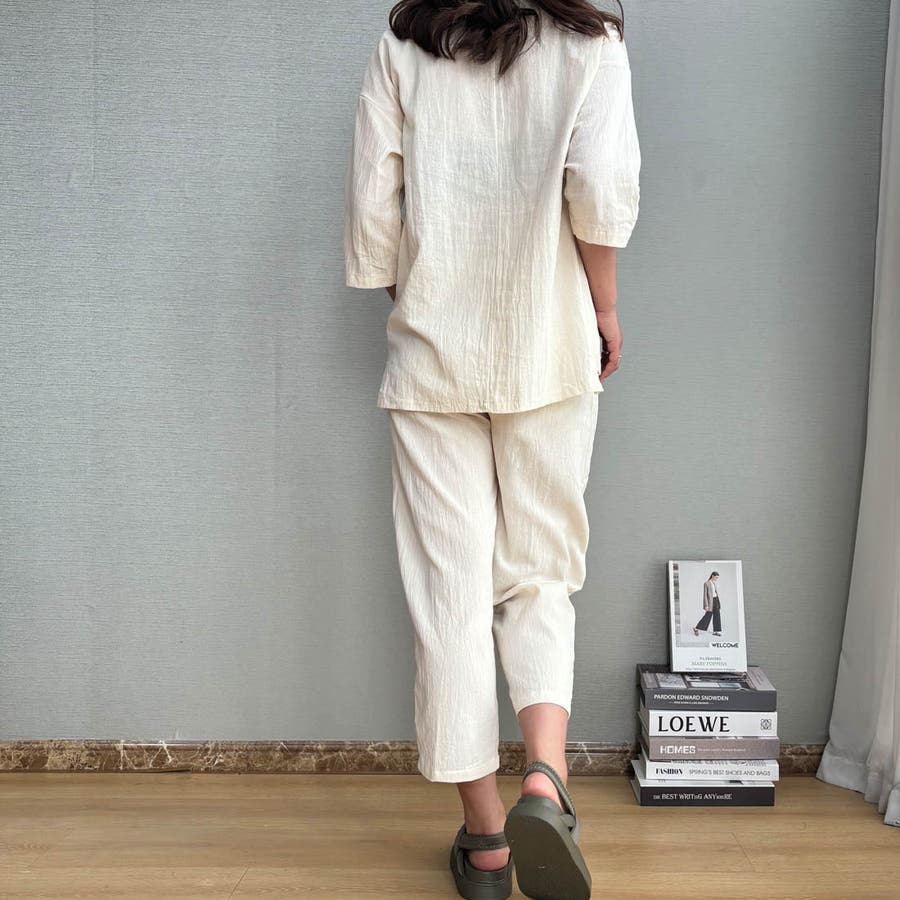 商品説明 | 着るだけで簡単におしゃれなコーデが完成するブラウスとパンツのセットアップ♪ ゆったりとしたサイズ感で暑い秋もノンストレスの着心地です。 ブラウスの首元はスキッパーネックのデザインになっており、顔周りがすっきりと見えるのがポイント◎ 上下セットで着るのはもちろん、手持ちのアイテムとそれぞれ組み合わせて着ることでコーデの幅が広がります! |