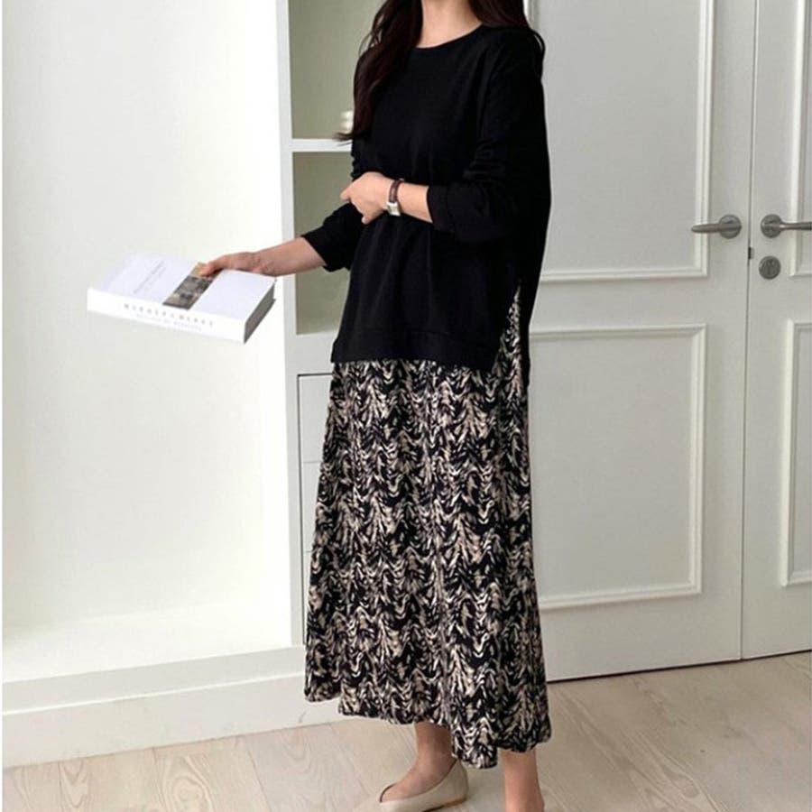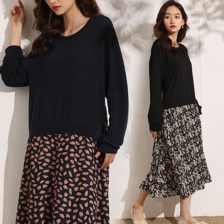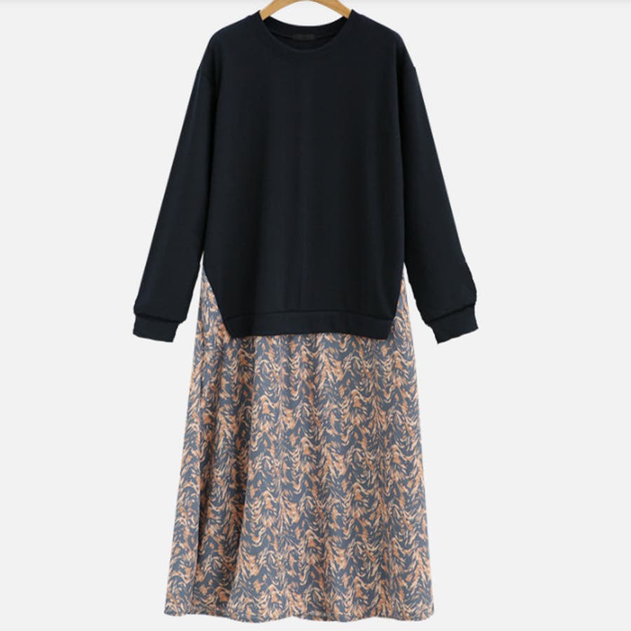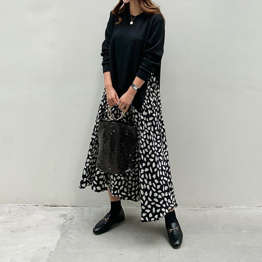 1枚でコーディネート完成。レイヤード風ドッキングワンピース 韓国ファッション 冬