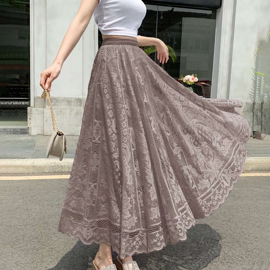 レースデザインが着るだけでフェミニンなギャザースカート 総レース 可愛い