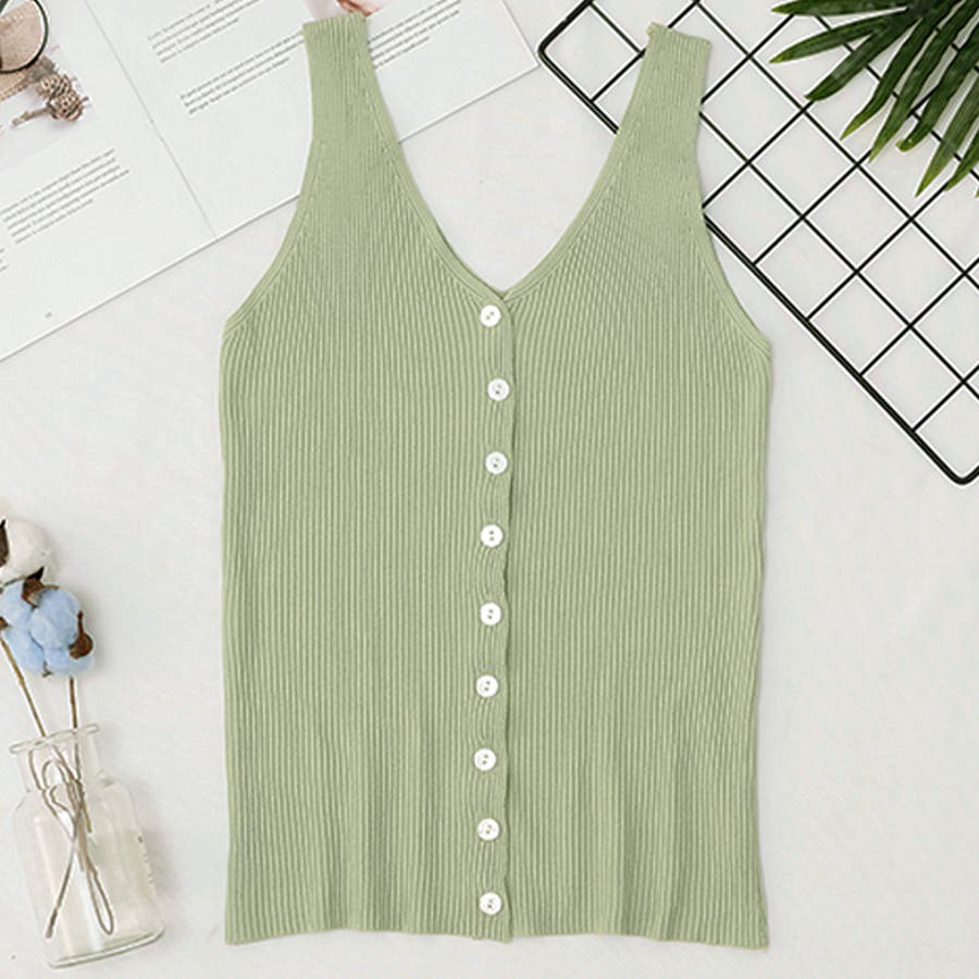 tシャツ 無地 vネックvネックノースリーブ タンクトップ ノースリーブ ノースリーブtシャツ 前開き ボタン ノースリーブ ニット トップス 韓国ファッション 春 セクシー 春服