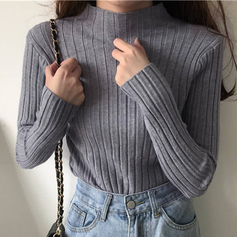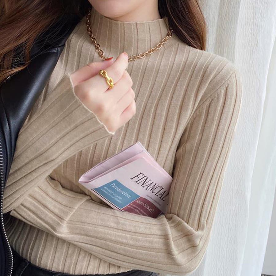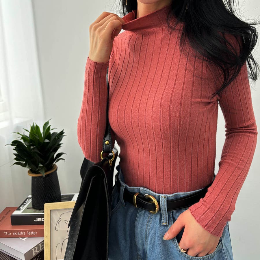 【オレンジ】10カラー。大人かわいいハイネックリブニット。コーディネートのアクセントにも、1…