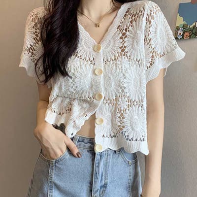 | 商品説明 | ざっくり透かし編みが魅力的な半袖カーディガン 袖と裾元に施されたモチーフレースが季節感を醸し出してくれます。 着映えする今年らしい一着で、 冬場に大活躍すること間違いなしのアイテム。 透かし編みで着映えする一着なので、 サンダルやカゴバッグなどの冬小物と相性抜群です◎ | |