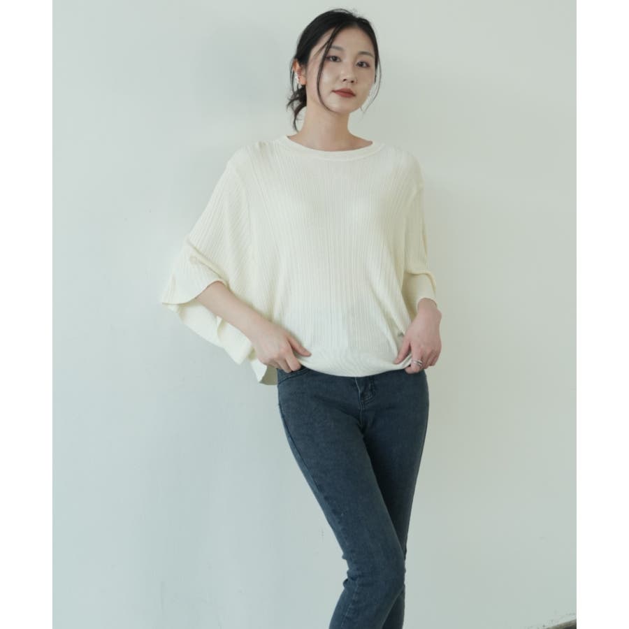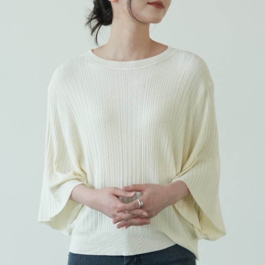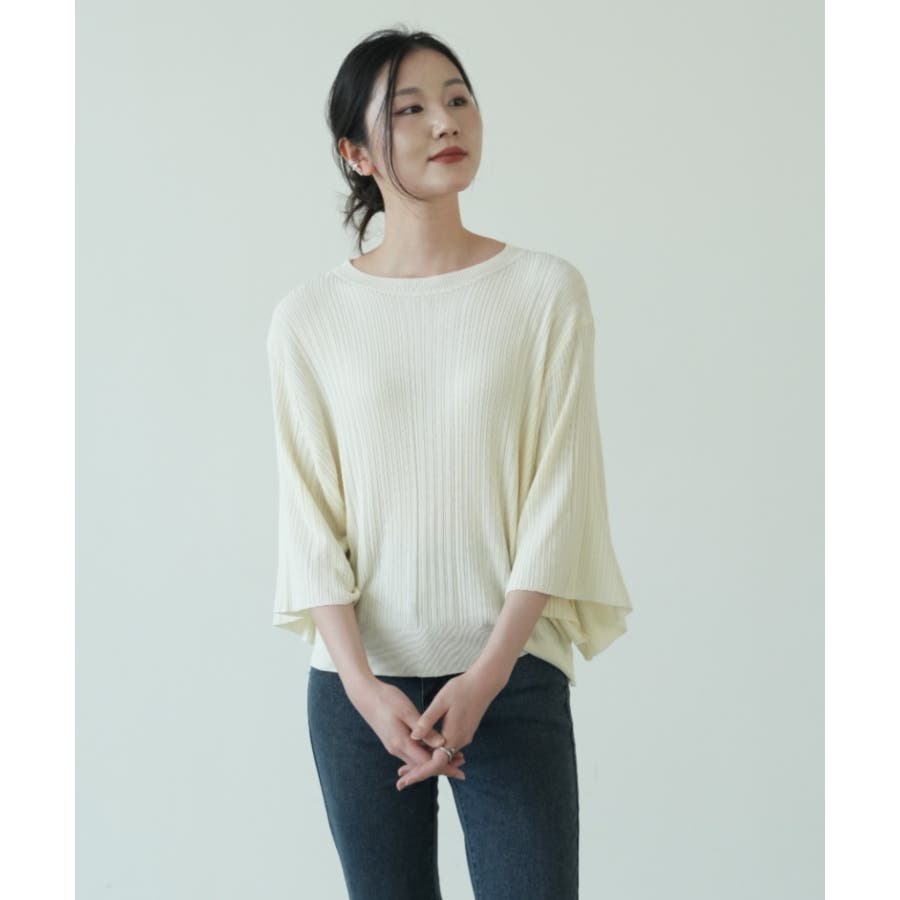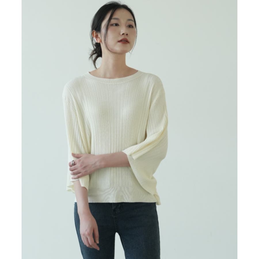 | 商品説明 | 着回しが効くひらっと広がるサマーニット7分袖トップスが登場♪ 袖がひらっと広がりゆったりとしたシルエットになっています。 柔らかいニット素材が程よく体にフィットしてくれるので、華奢に見えるのが嬉しいポイント◎ 明るめカラーや、ドット、花柄のスカートに合わせると女性らしい印象に仕上がります。 カジュアルダウンしたいときは、ワイドパンツにインして合わせるのもおすすめ! | |
