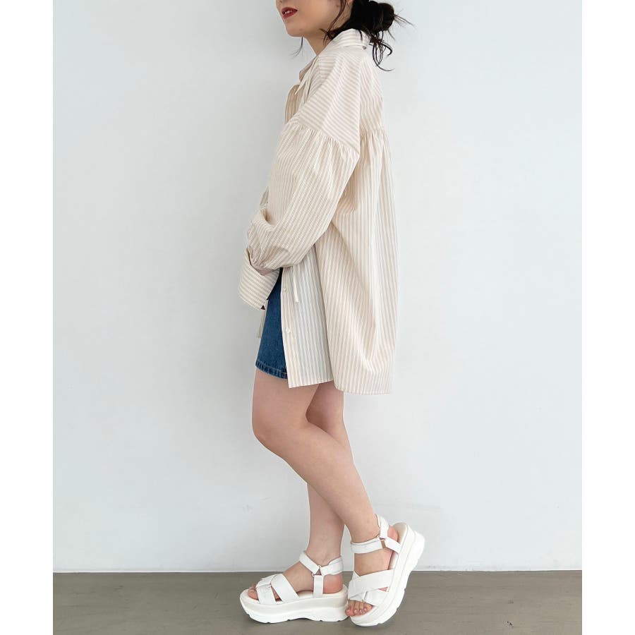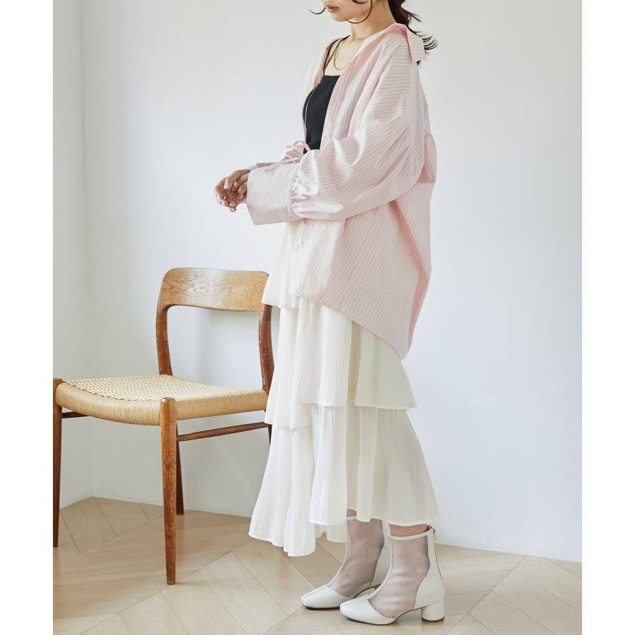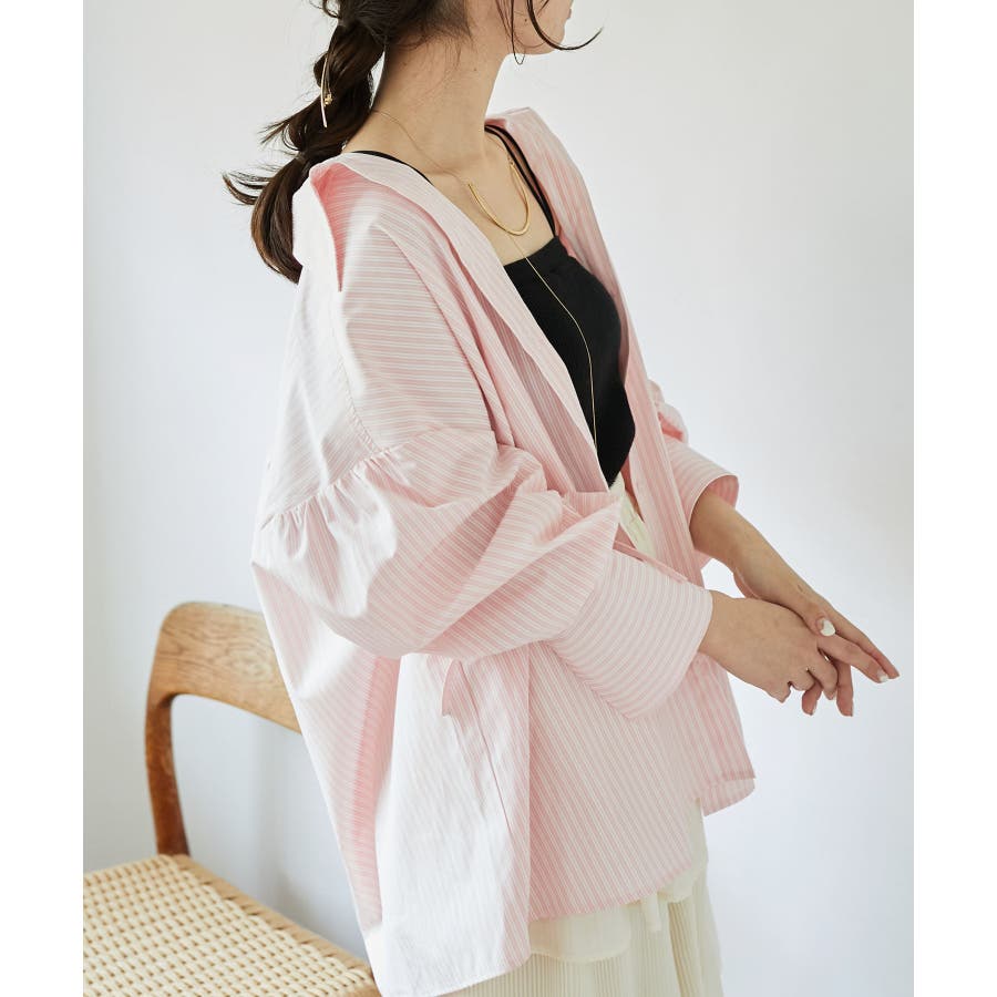 ストライプ柄とシーズムード高まるカラーリングが目を惹くアイテム。袖部分のブラウジングや、細かなギャザー入りのバックスタイルが女性らしいpointに。ゆったりとしたシルエットで、さらっと羽織りやすくこなれ感のあるスタイルに決まります♪・・・・・・・・・・・・・・・・・・・・・・透け感:なし裏地:なし伸縮性:なし光沢感:なし生地の厚さ:薄手・・・・・・・・・・・・・・・・・・・・・・ ■商品のお気に入り登録 再入荷通知やのこりわずか、お得なプライスダウンの情報も受け取ることができます。 ぜひご登録ください◎