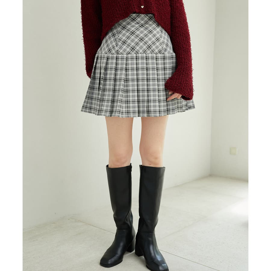 チェックプリーツスカパン