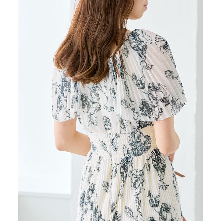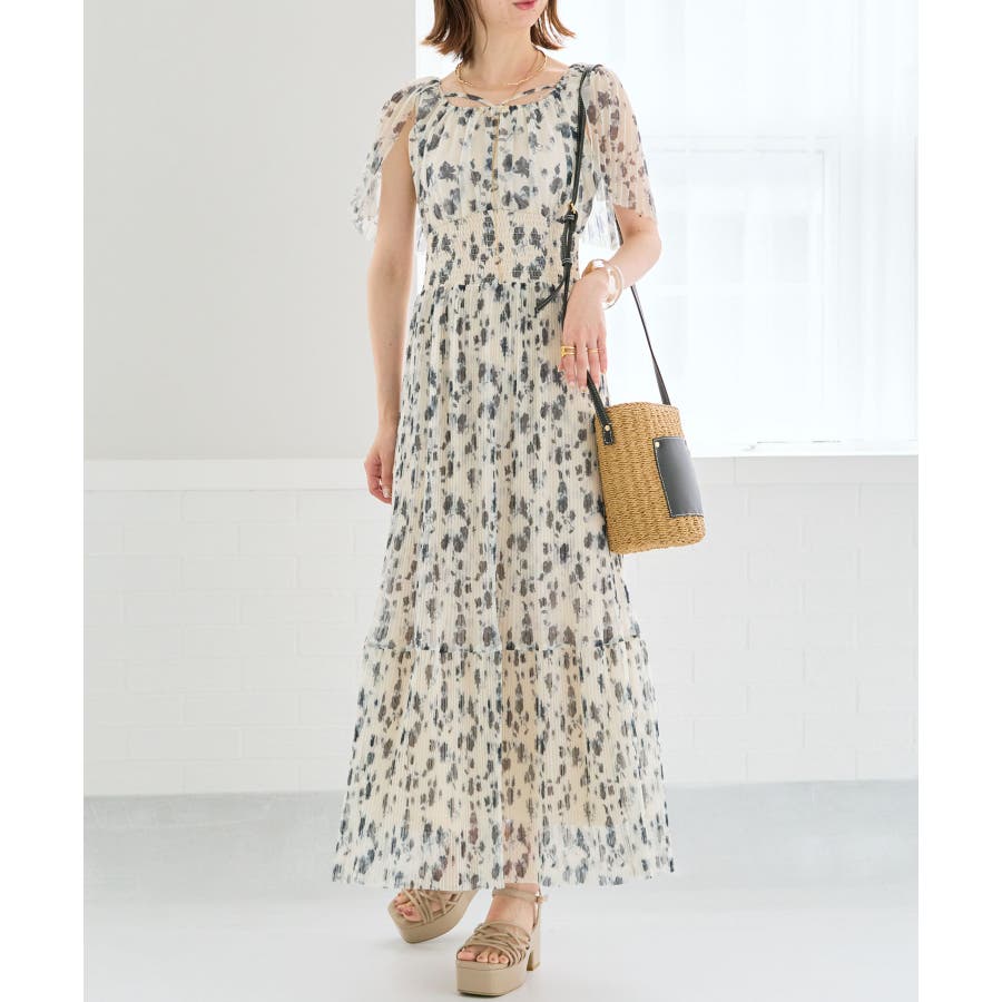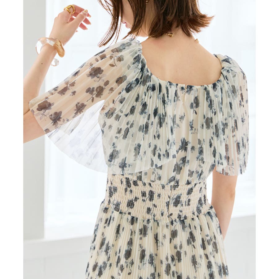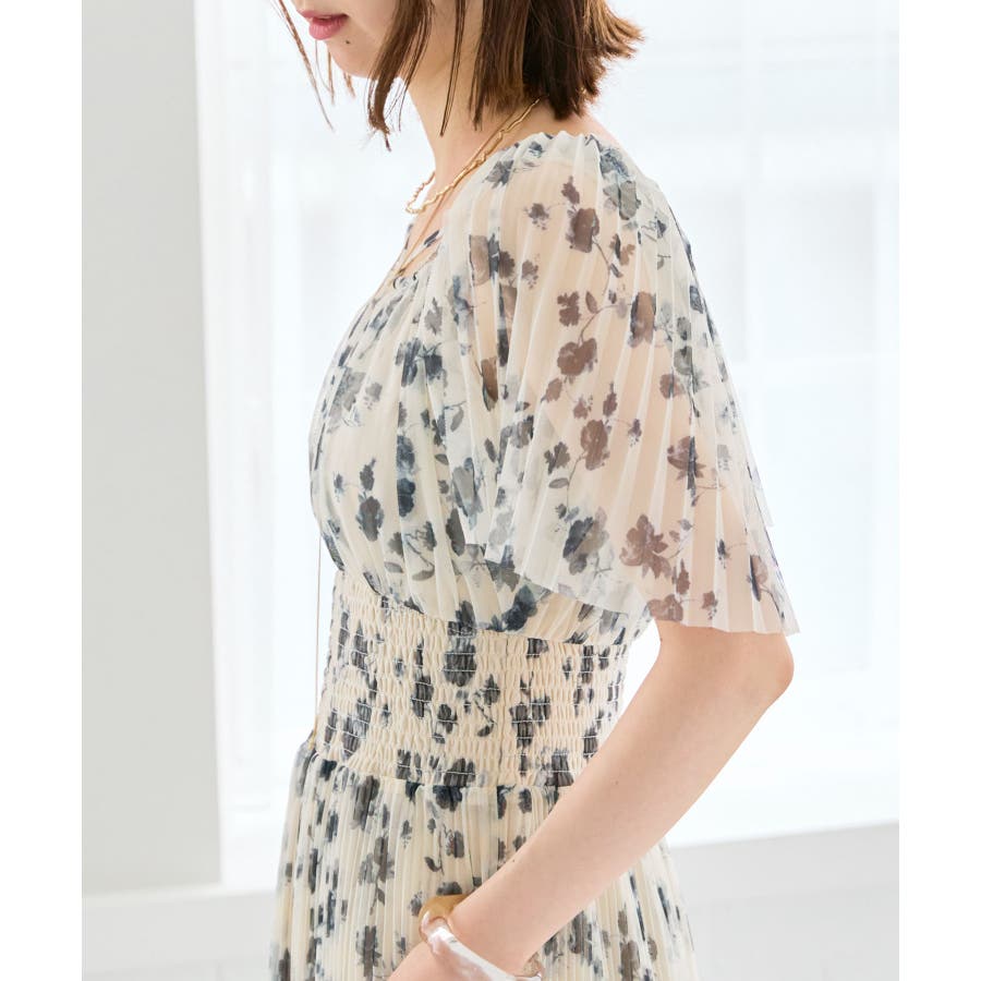 チュールプリーツフラワーワンピース