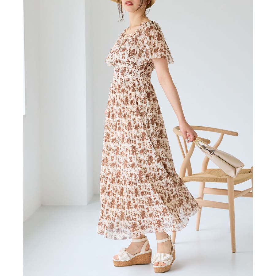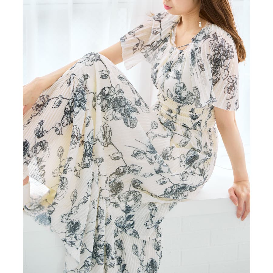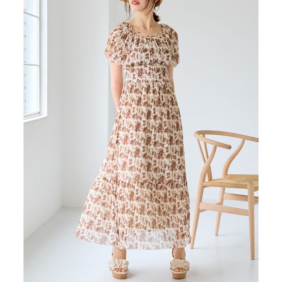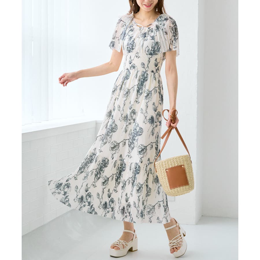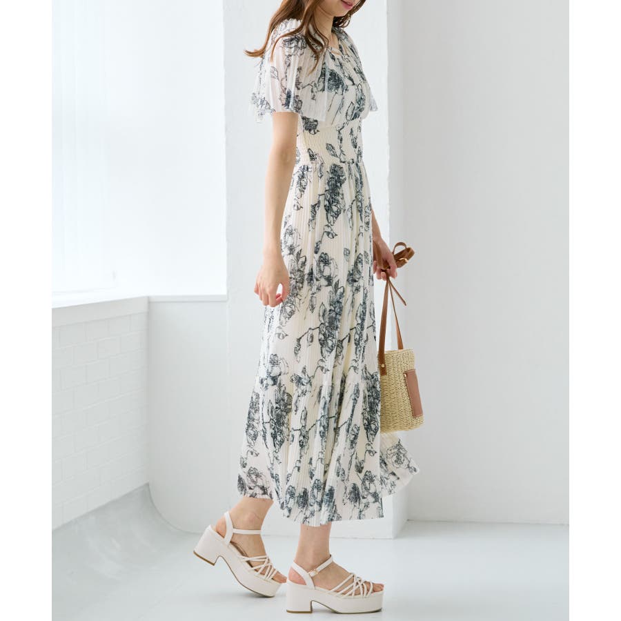 チュールプリーツフラワーワンピース