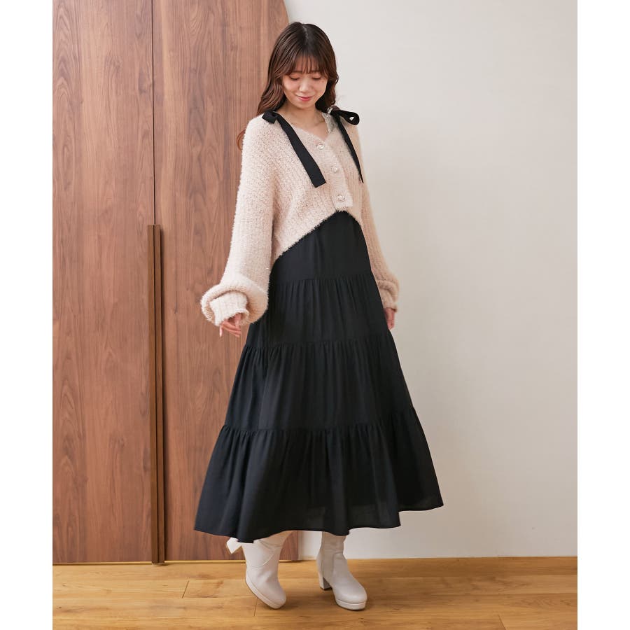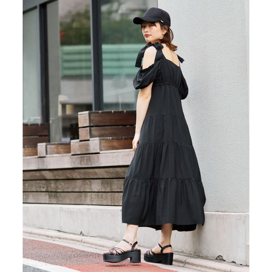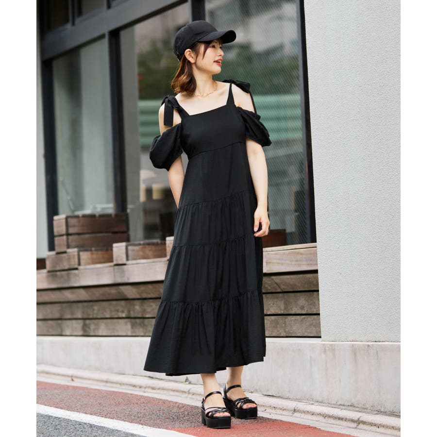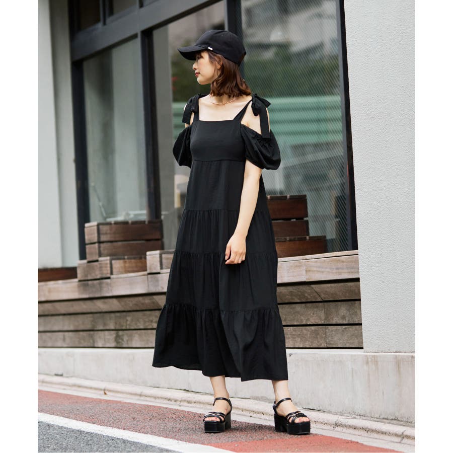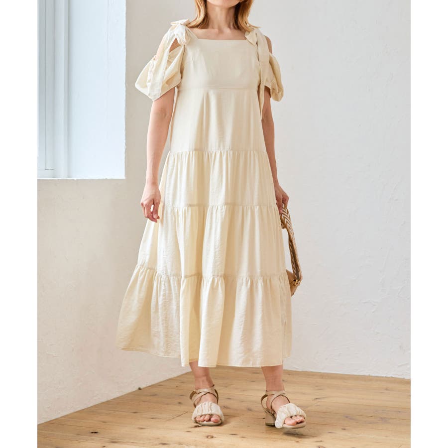 2way肩リボンティアードワンピース