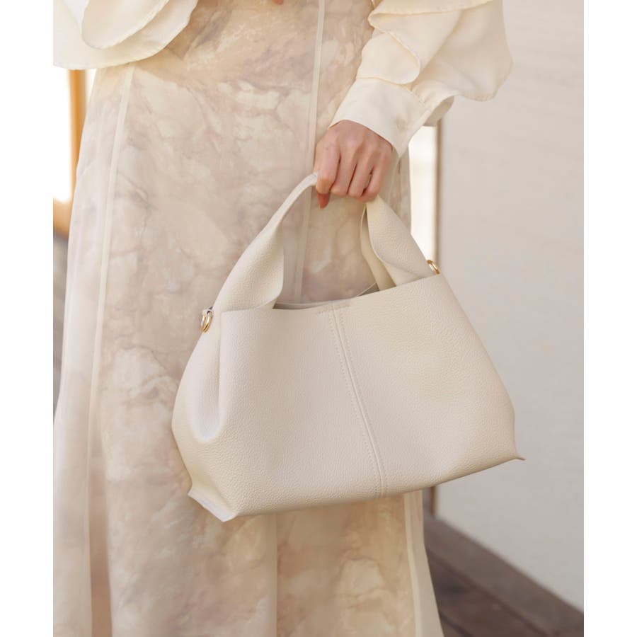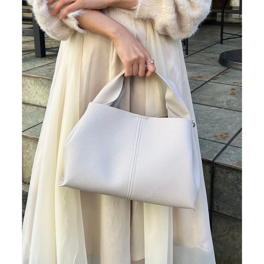 緩やかなシルエットが女性らしさ溢れるハンドバッグ。■デザインバッグ中央のハギを入れニュアンスカラーのステッチを入れることでより洗練されたデザインになっています。全体的なフォルムも丸く柔らかい印象に仕上げています。■サイズ感500mlのペットボトルが収納可能です。重さも軽く持ち運びがしやすいです。■スタイリングフェミニンなロングスカートはもちろんカジュアルなデニム、スラックスなど幅広く合わせられます。■商品のお気に入り登録 再入荷通知やのこりわずか、お得なプライスダウンの情報も受け取ることができます。ぜひご登録ください◎
