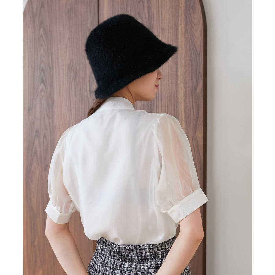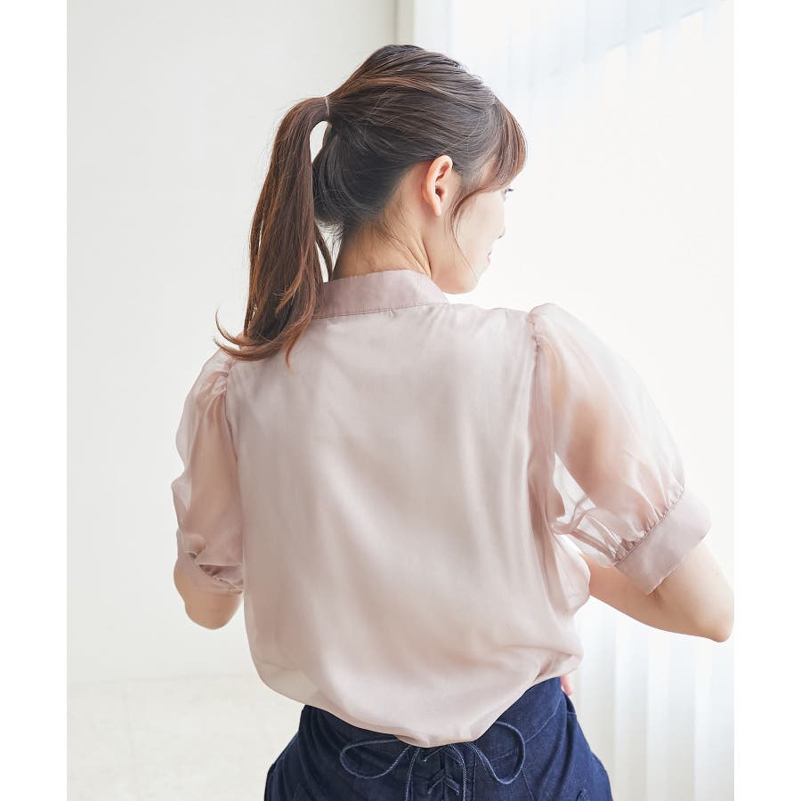 写真通りでかわいいです。袖の透け感が気に入っています。ひとつ言えば大きな第1ボタンがややボタンホールに入れづらいです。