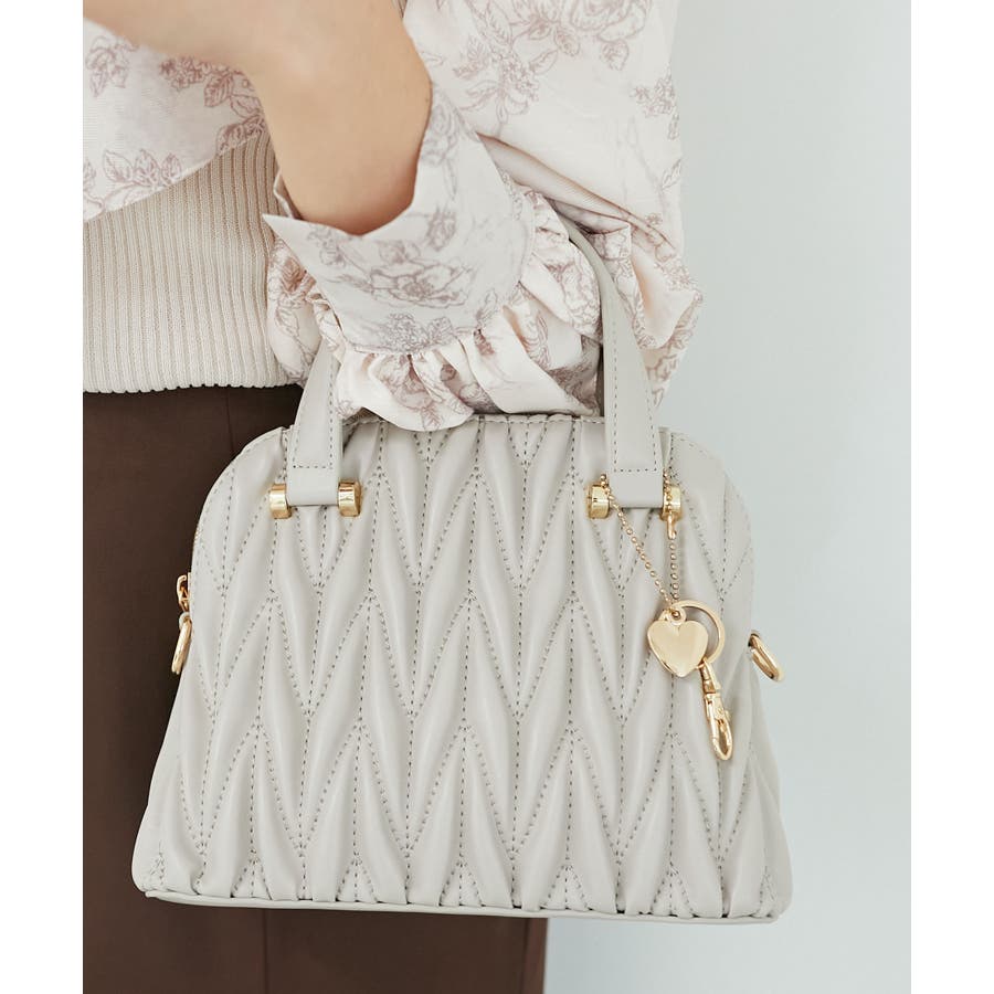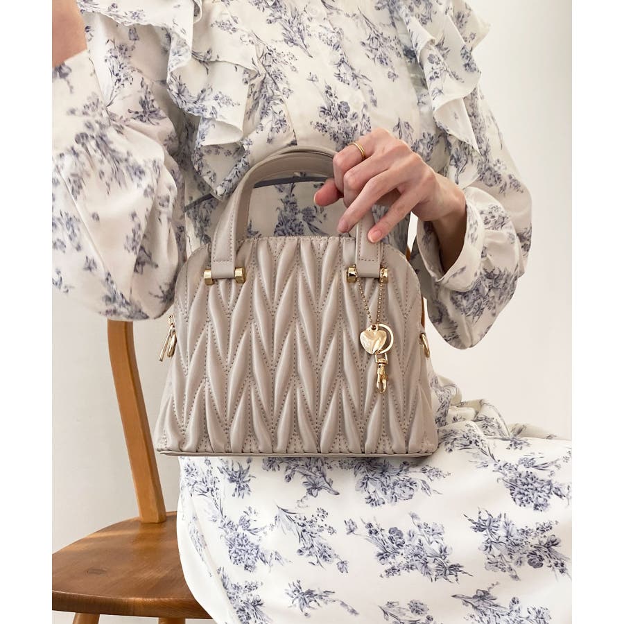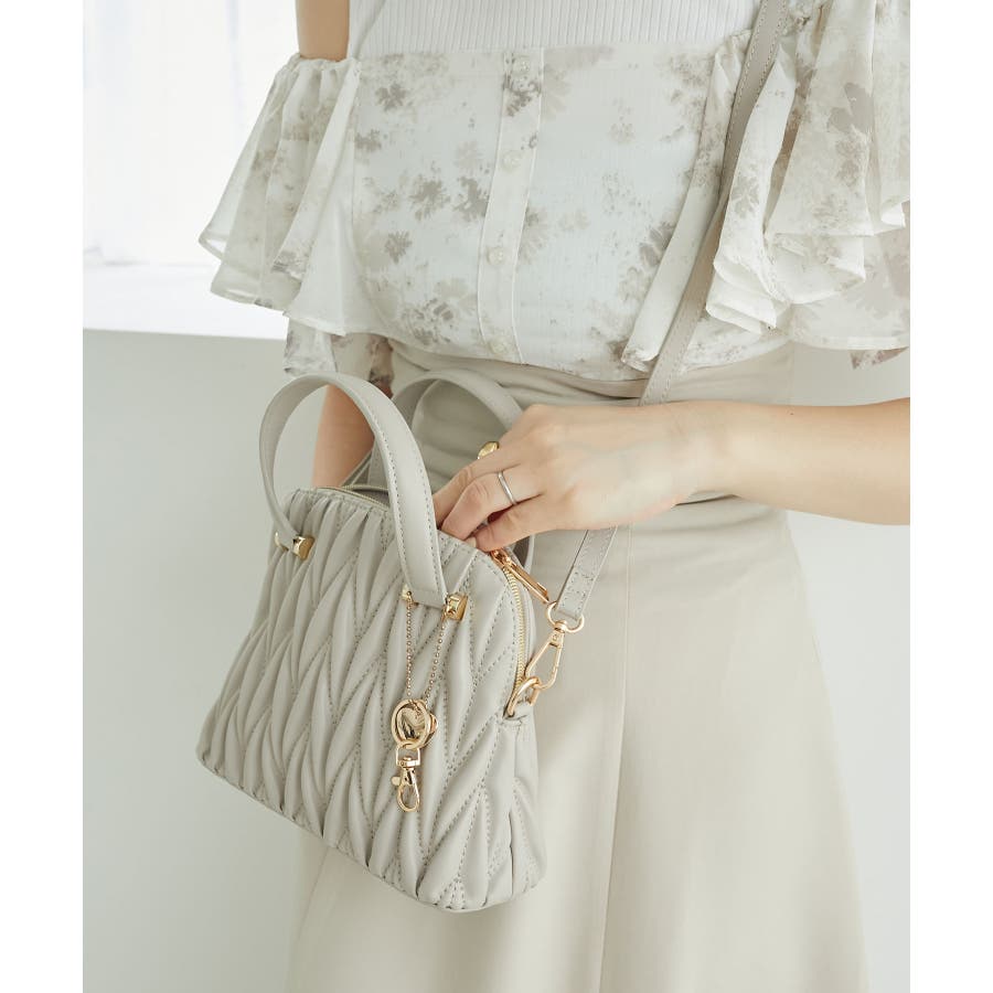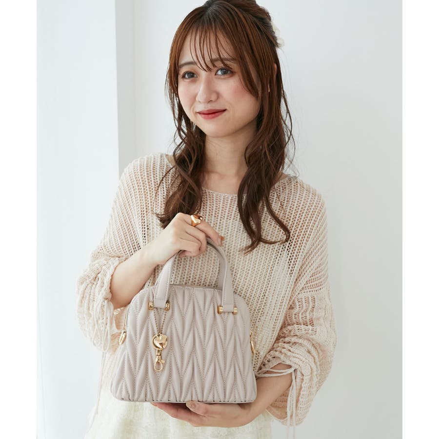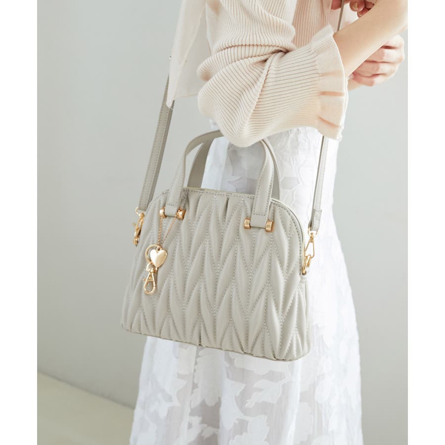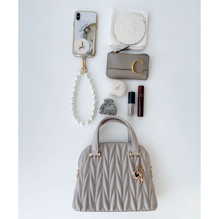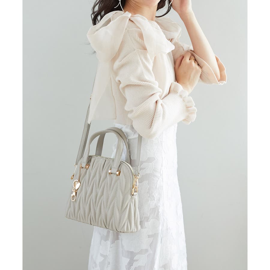 【グレージュ】チャームセットキルティングバッグ