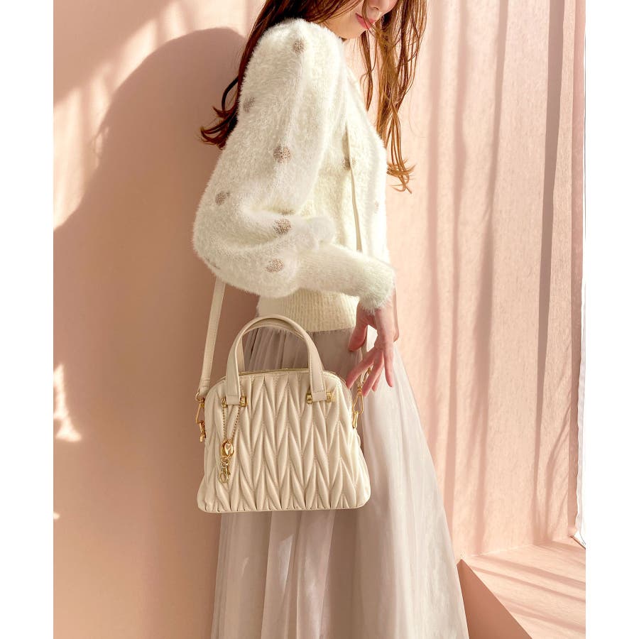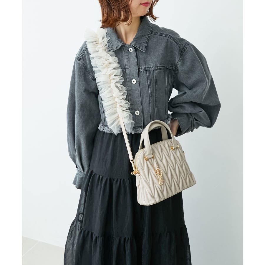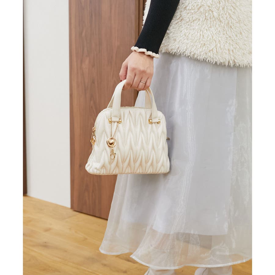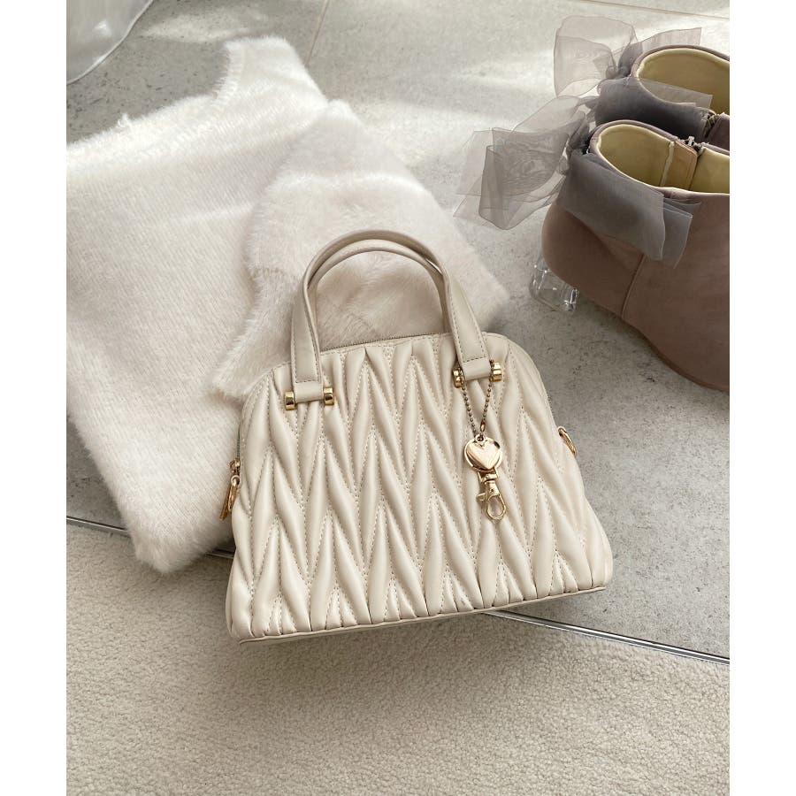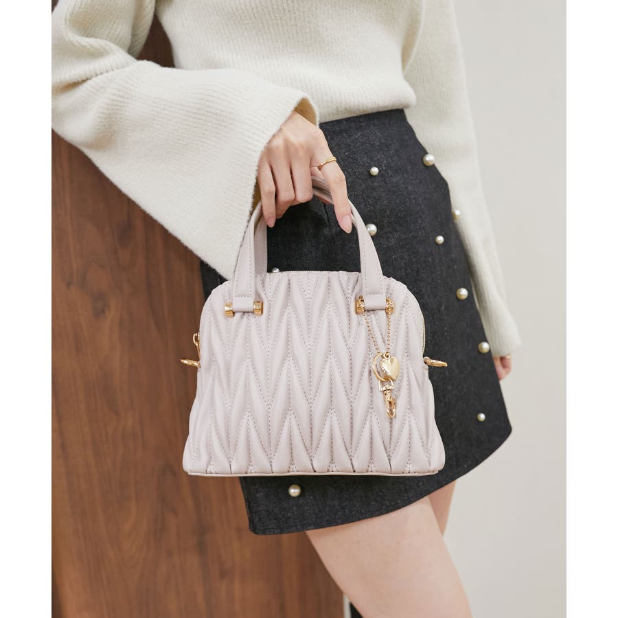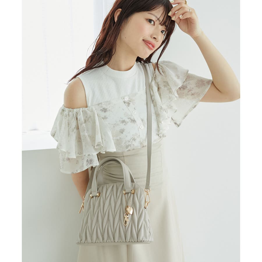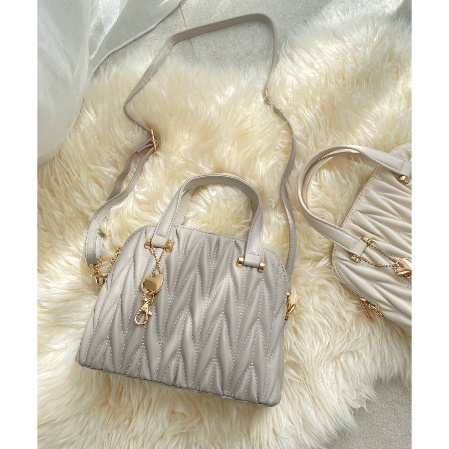 【グレージュ】チャームセットキルティングバッグ
