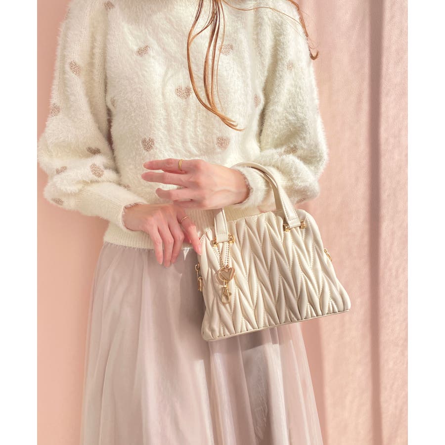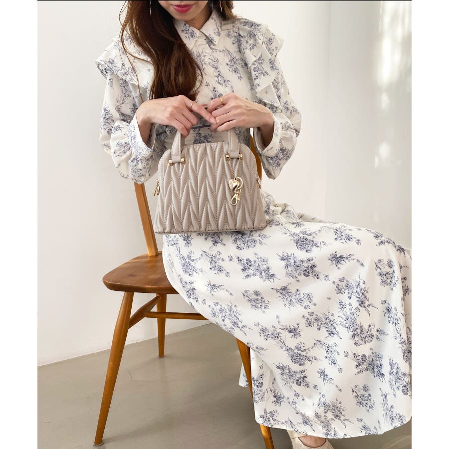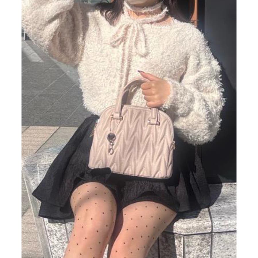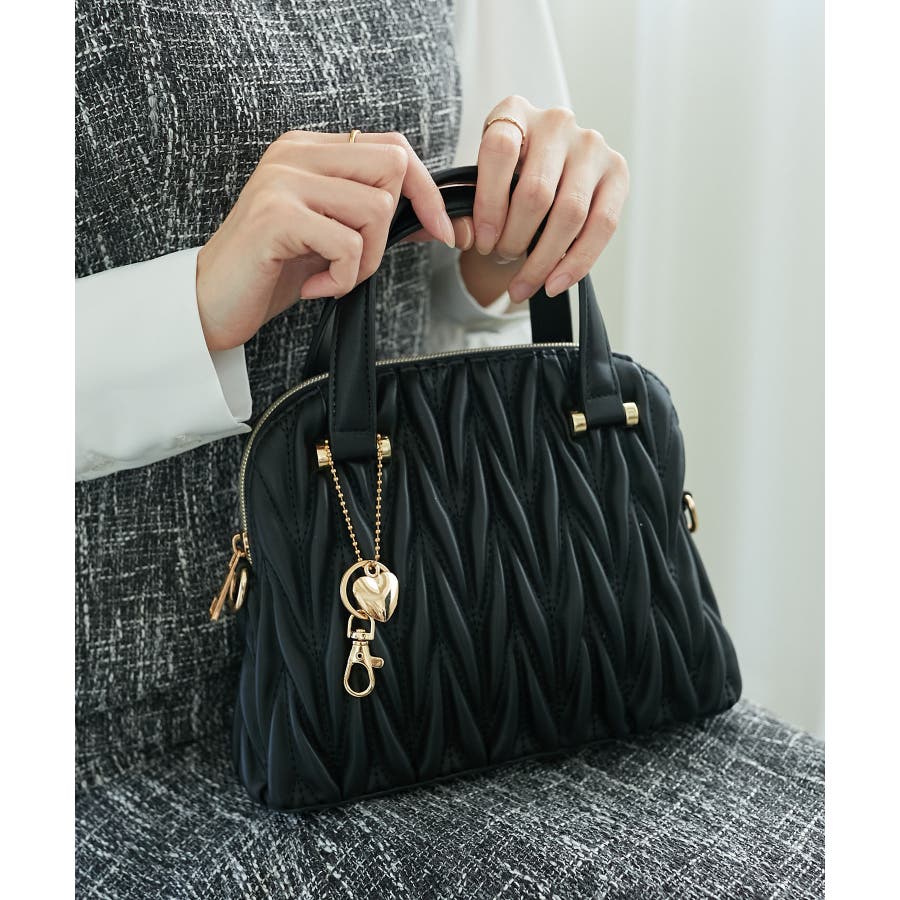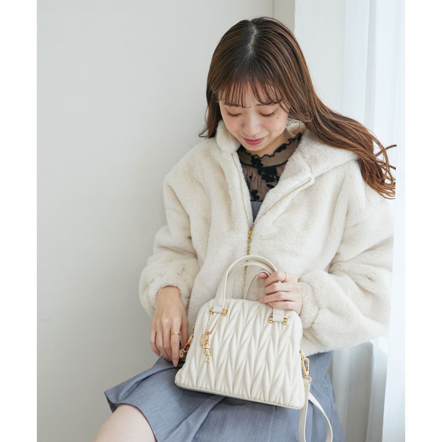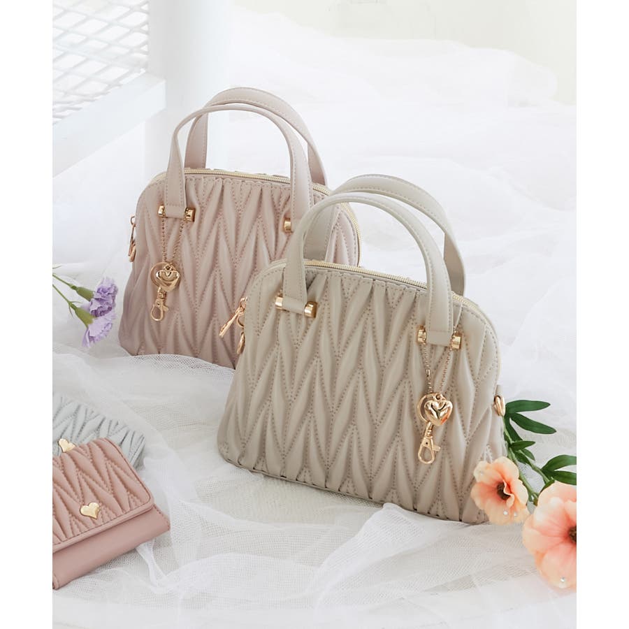 【グレージュ】チャームセットキルティングバッグ