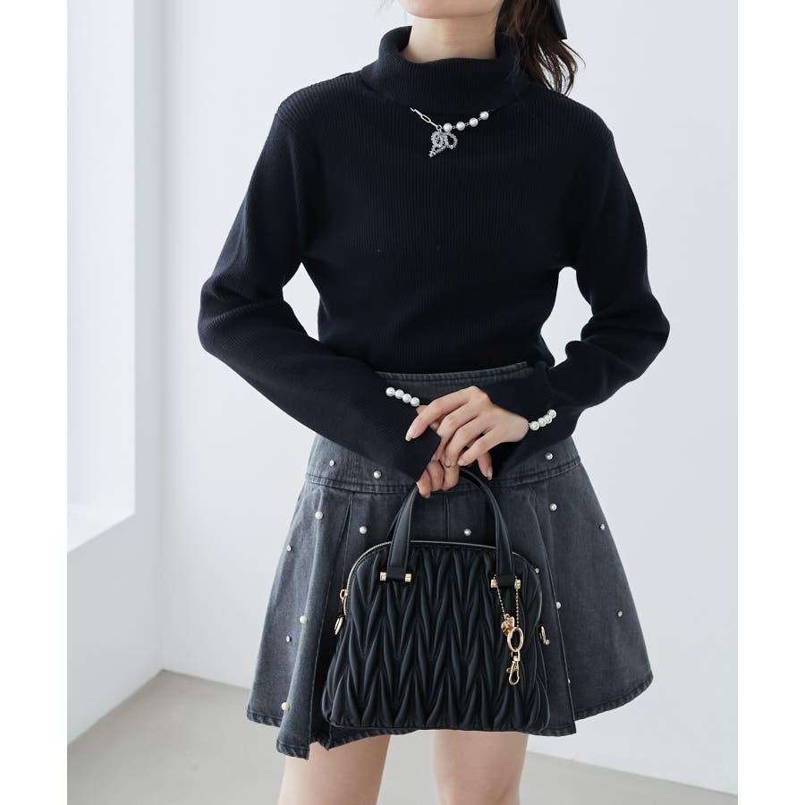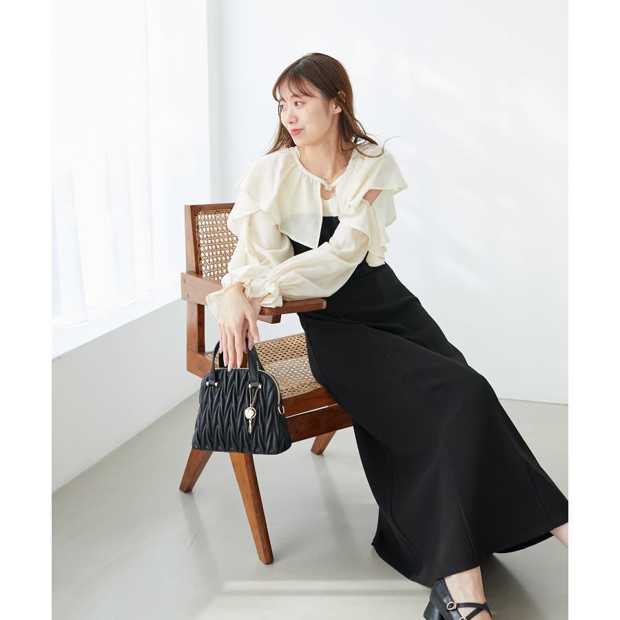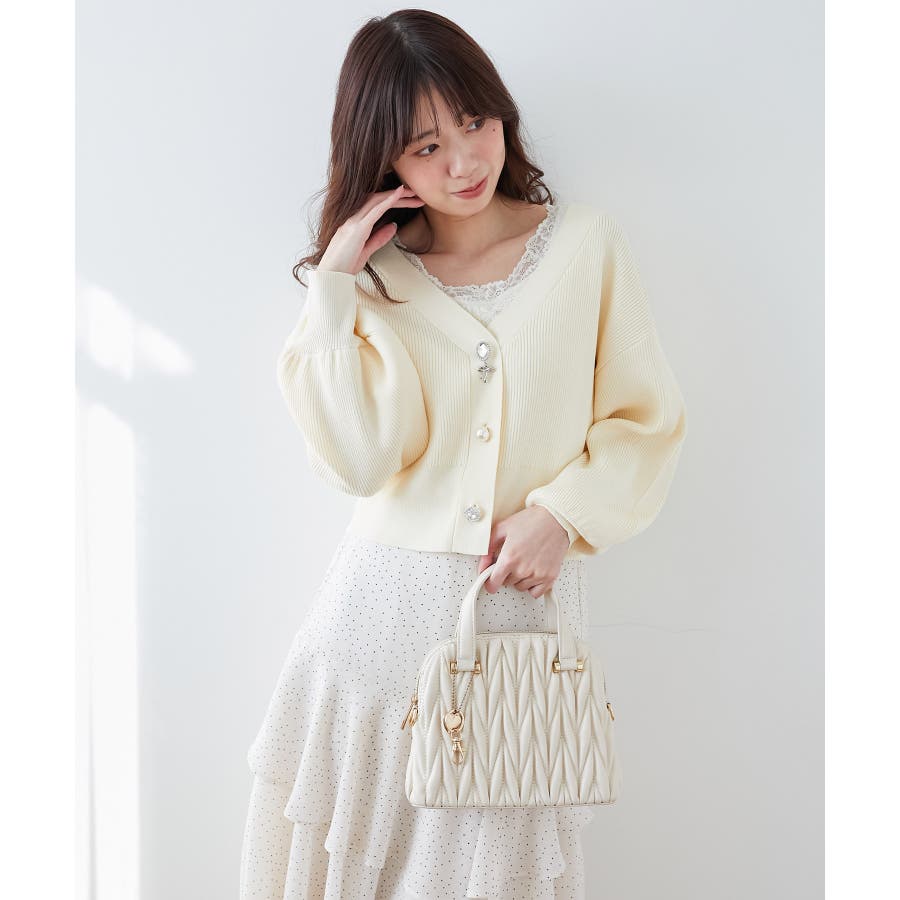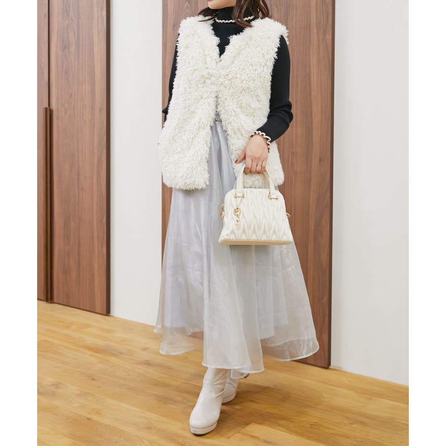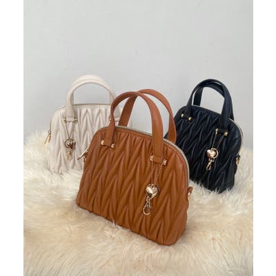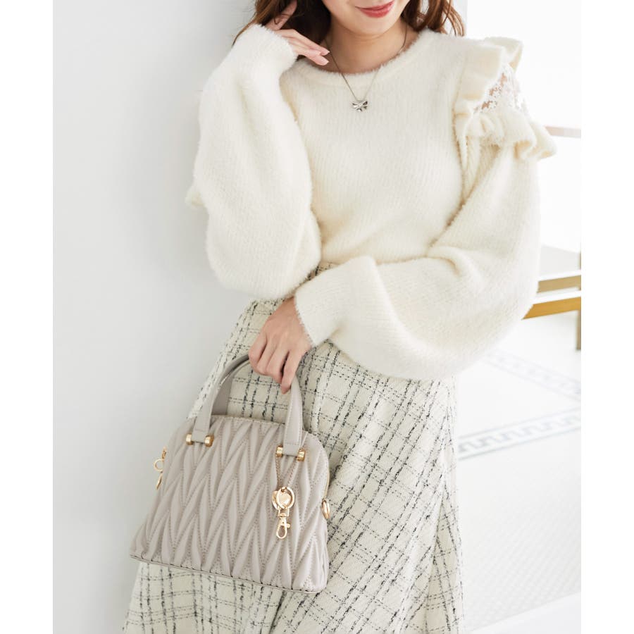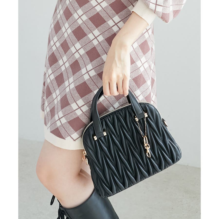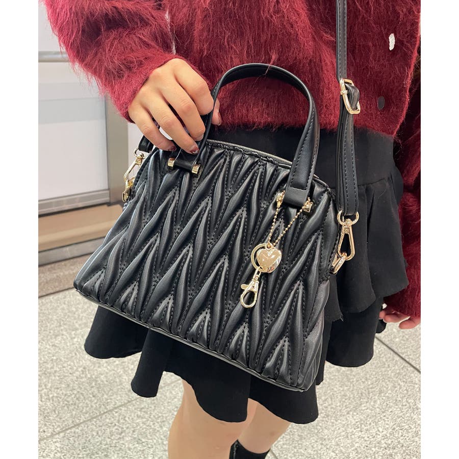 【グレージュ】チャームセットキルティングバッグ