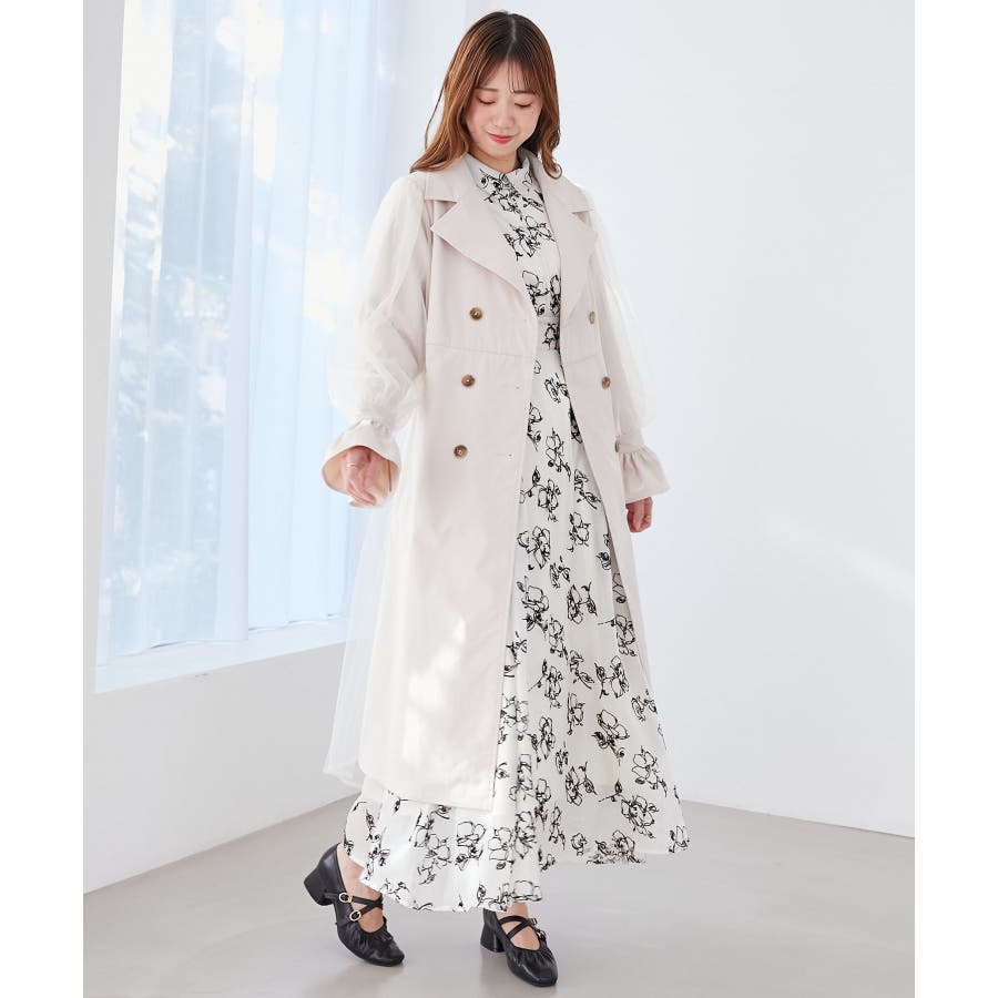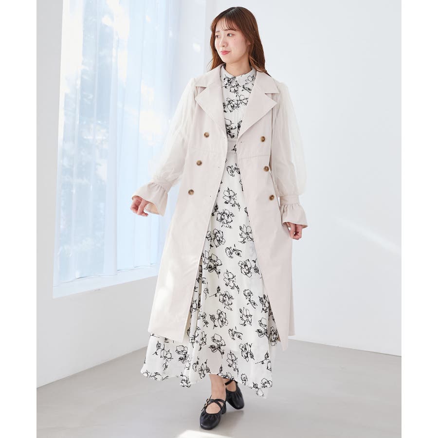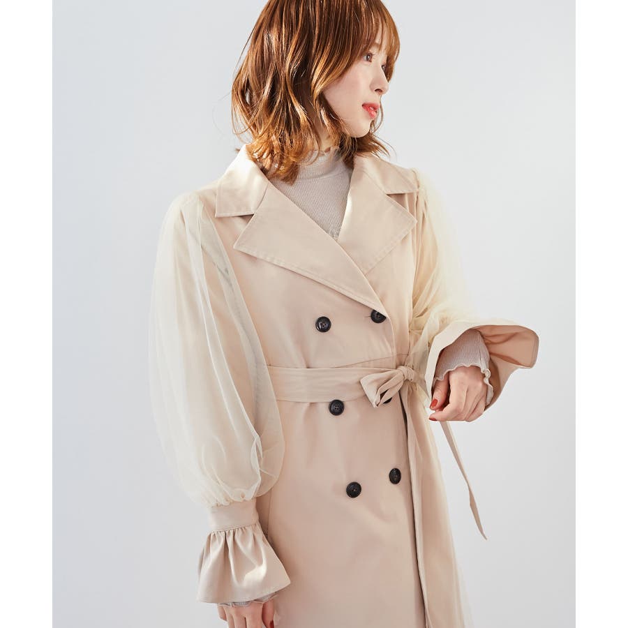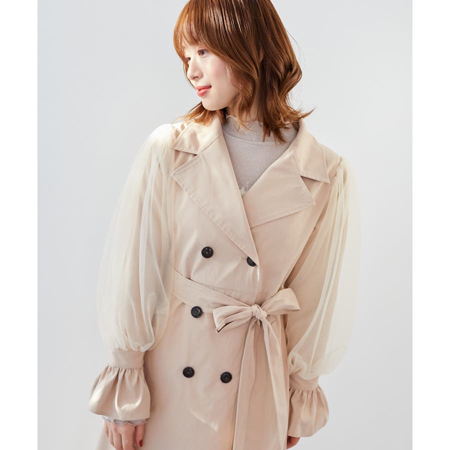 チュールレイヤードトレンチコート