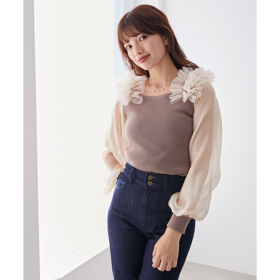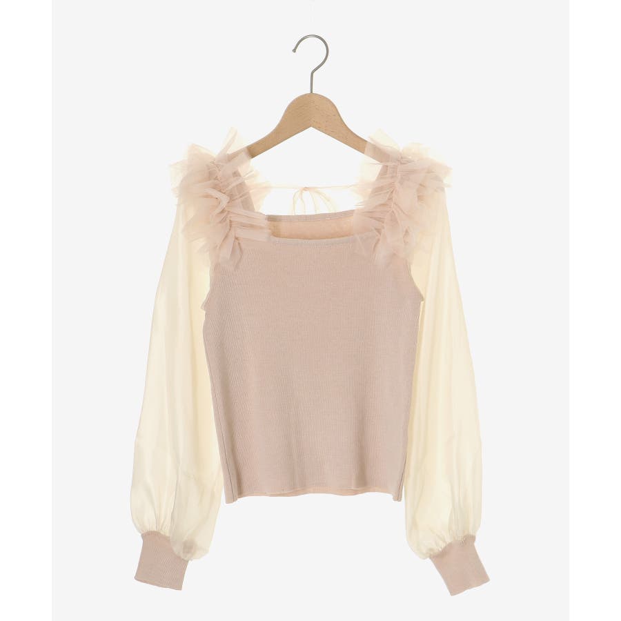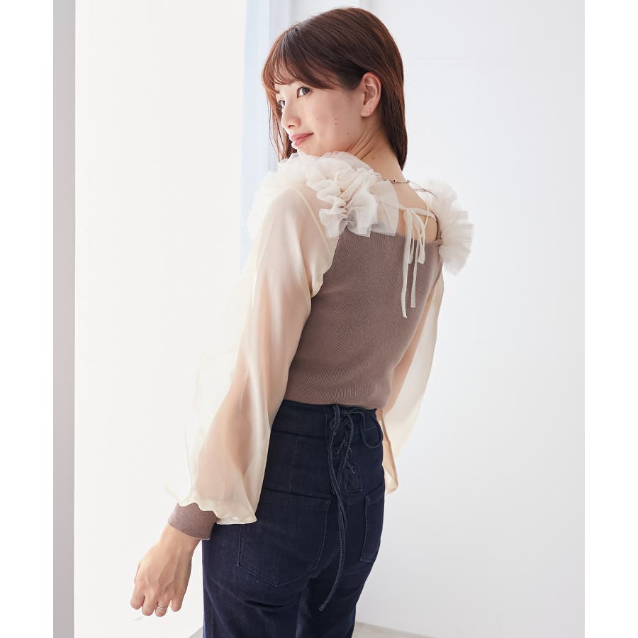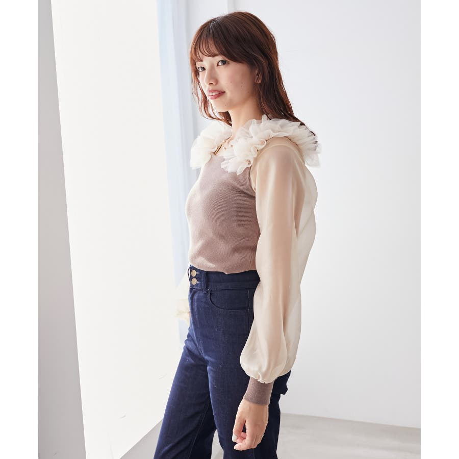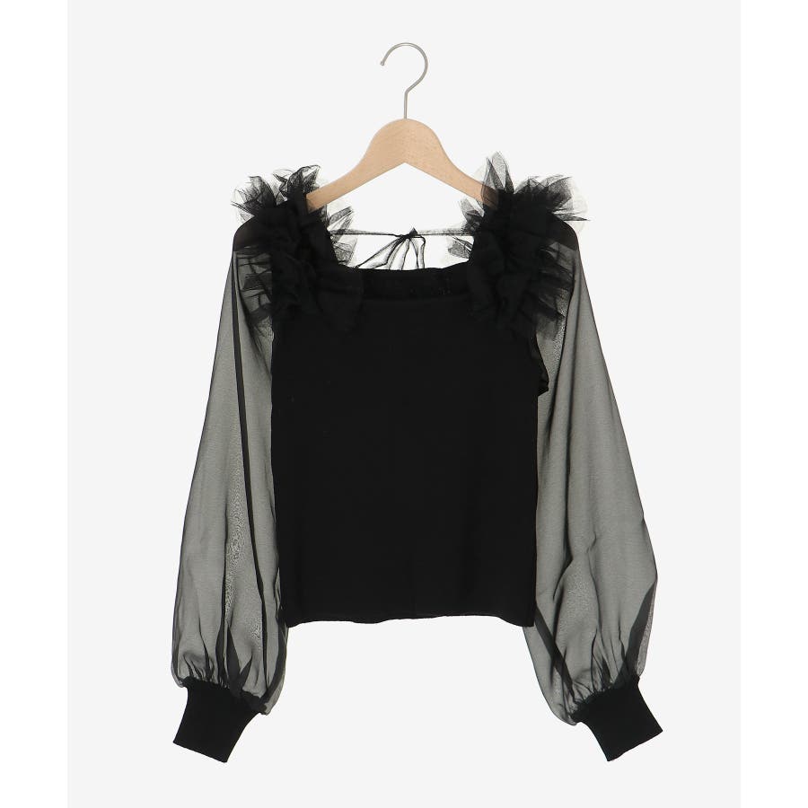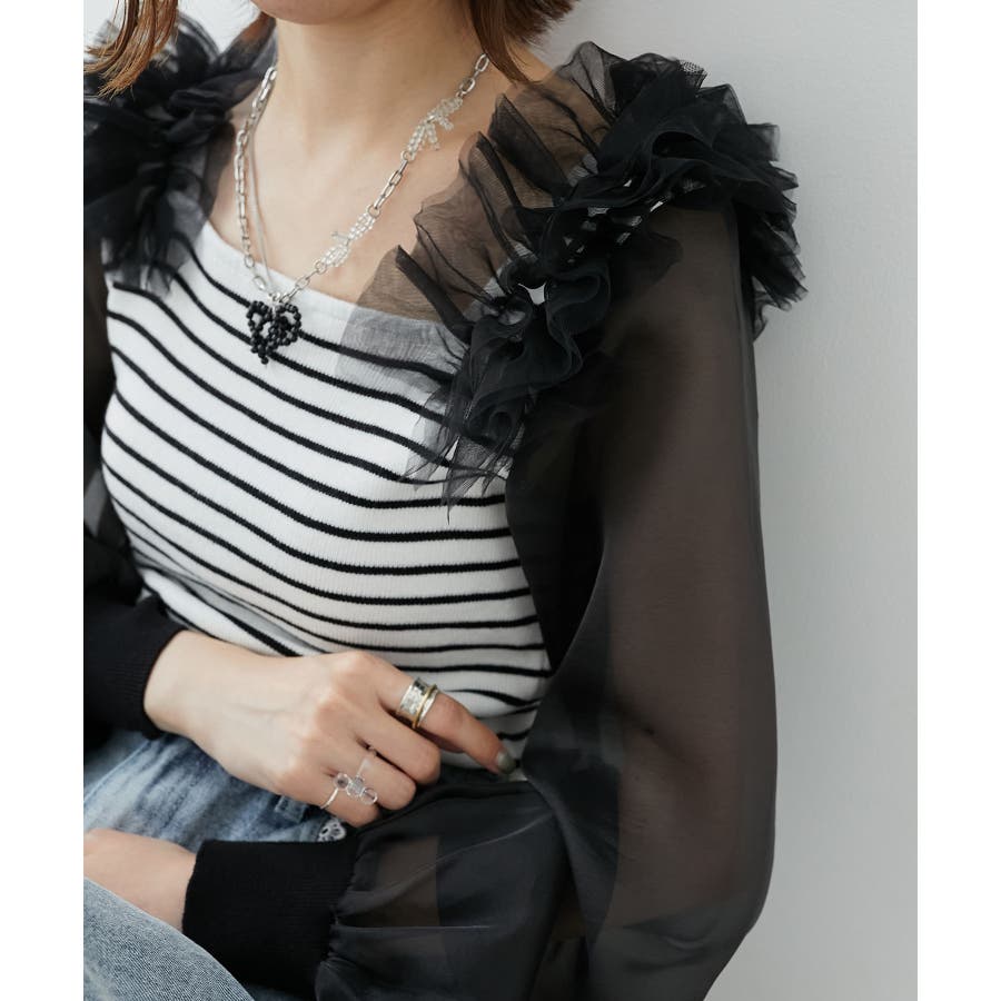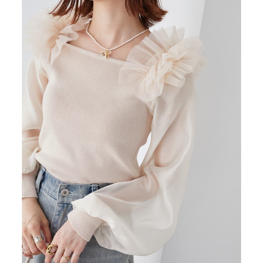 肩フリルシアースリーブニット
