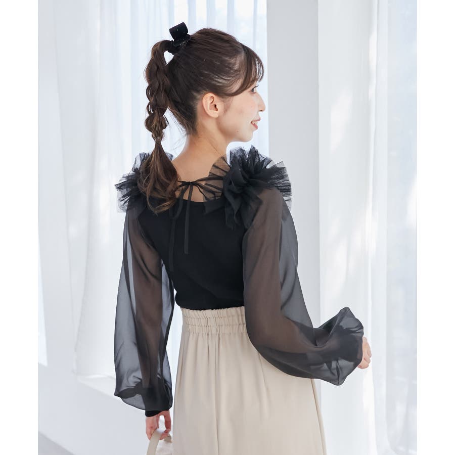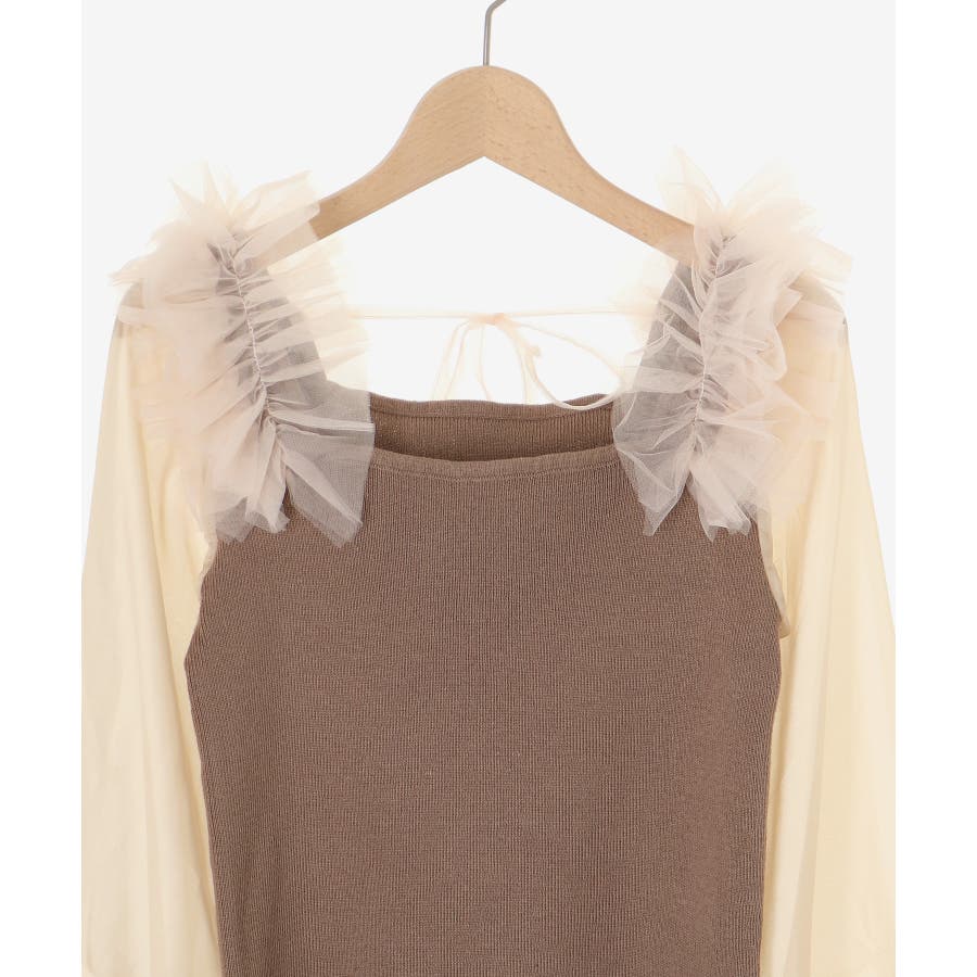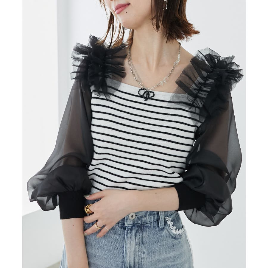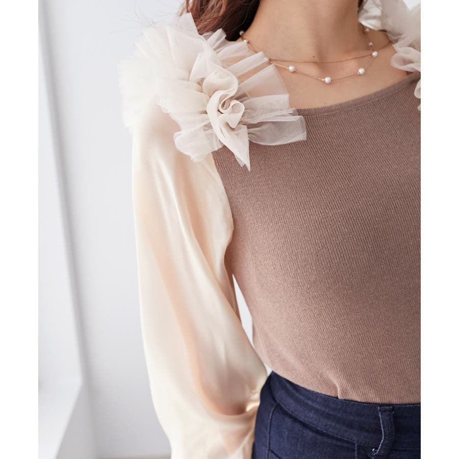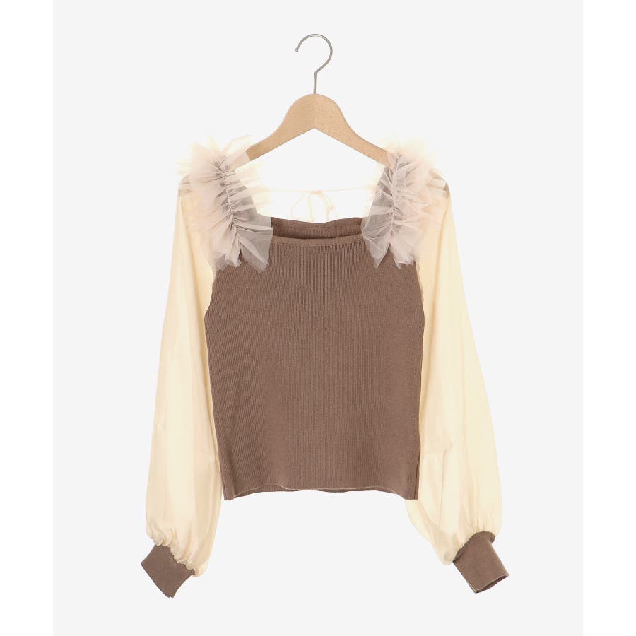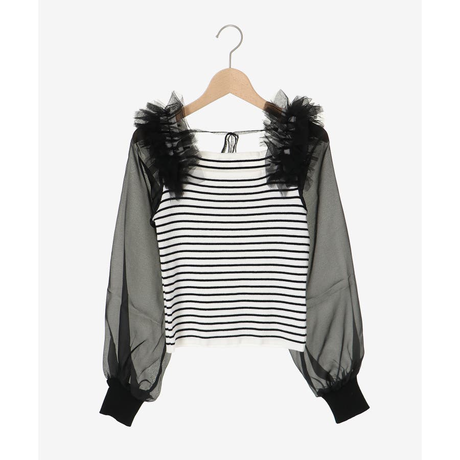 肩フリルシアースリーブニット