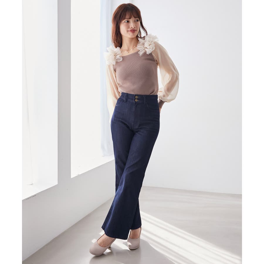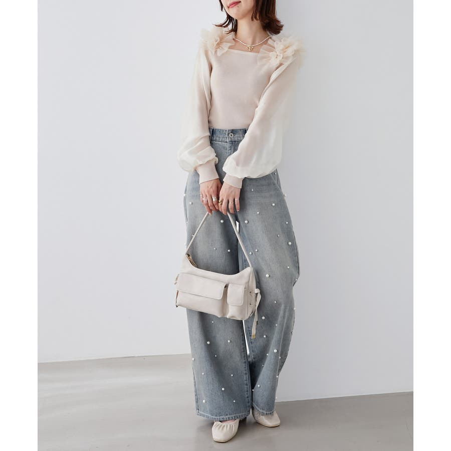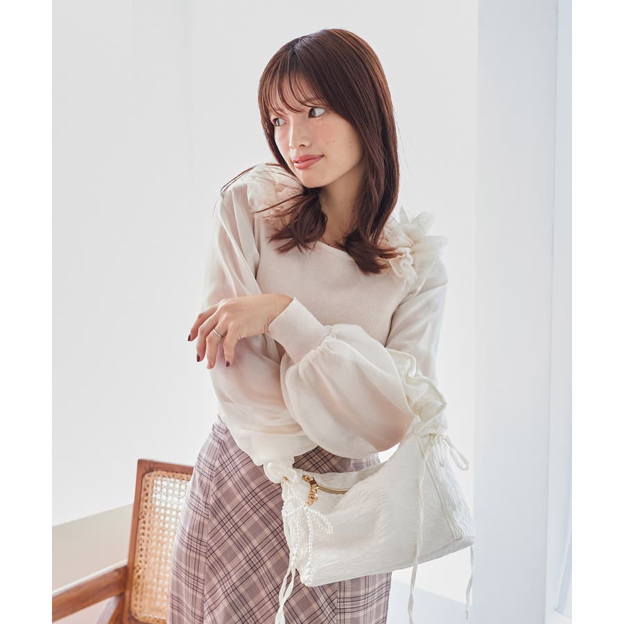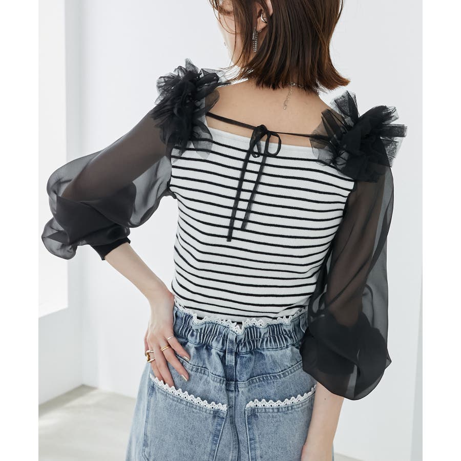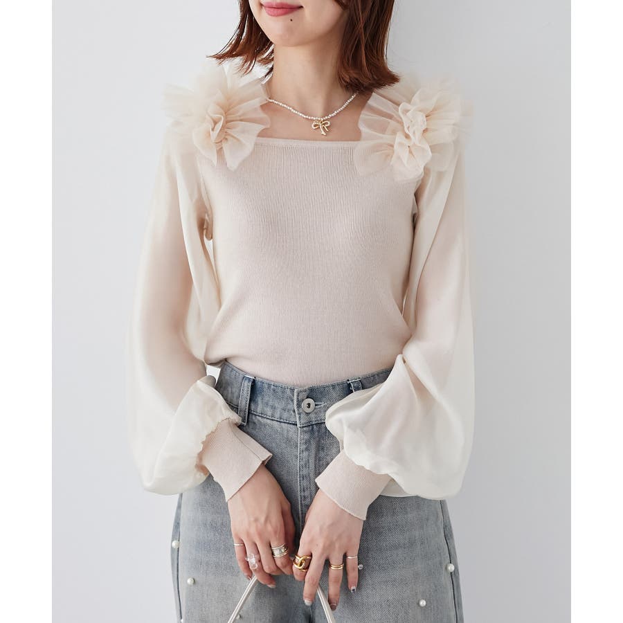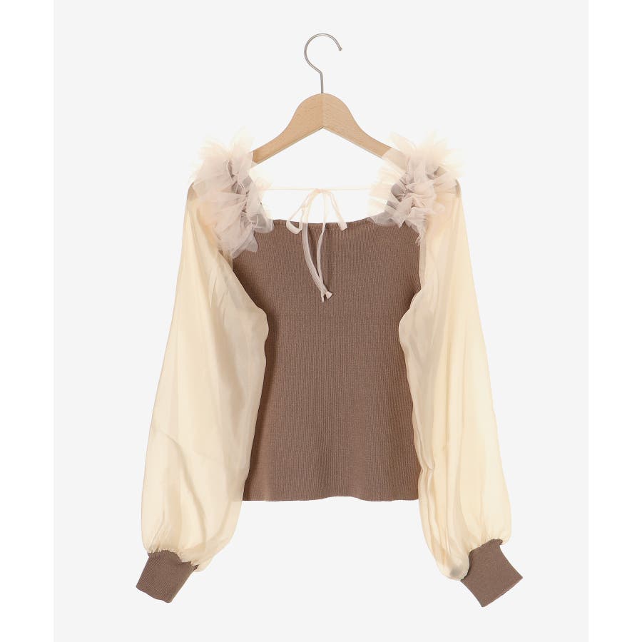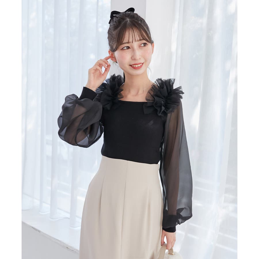 肩フリルシアースリーブニット