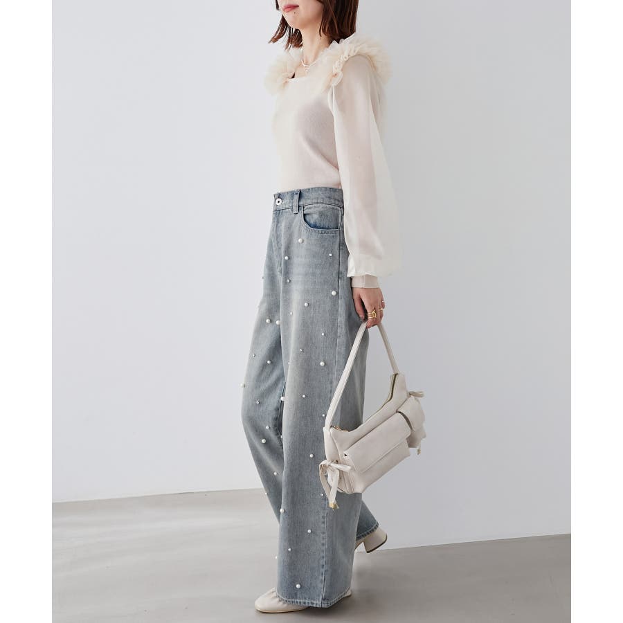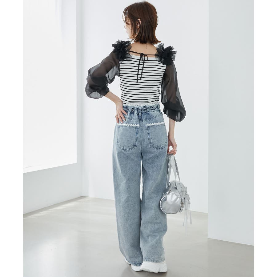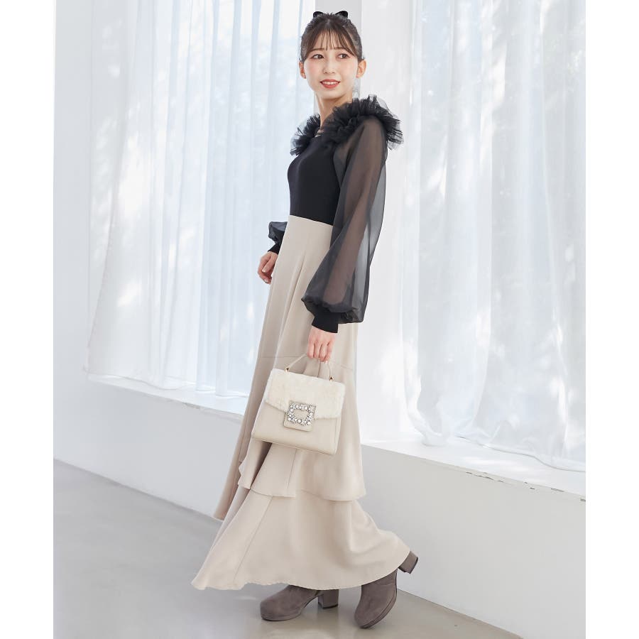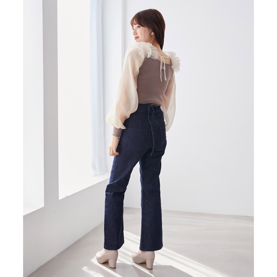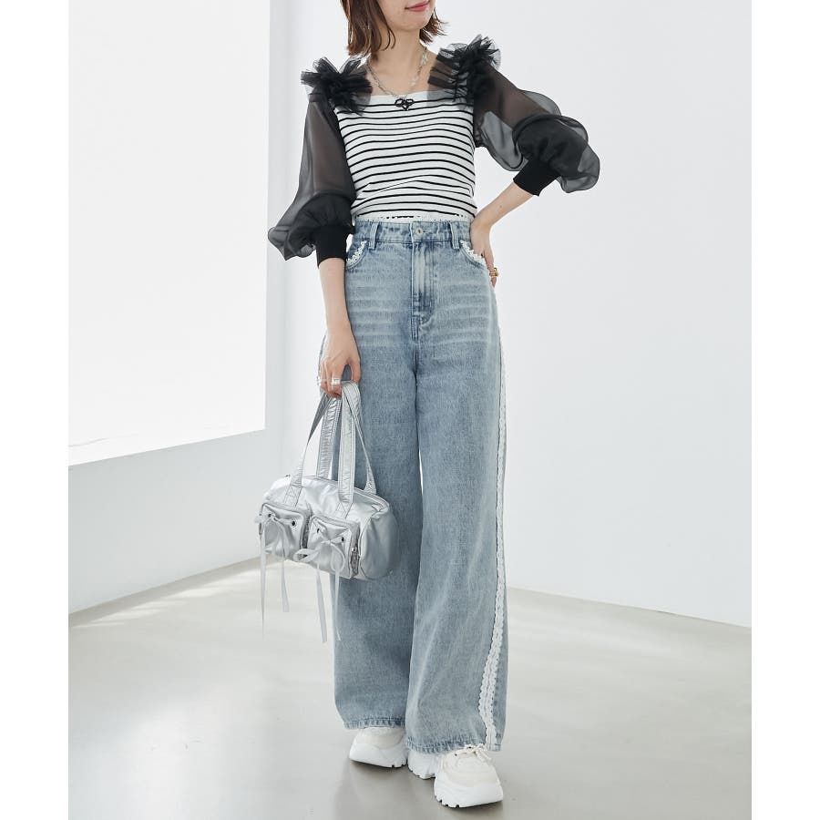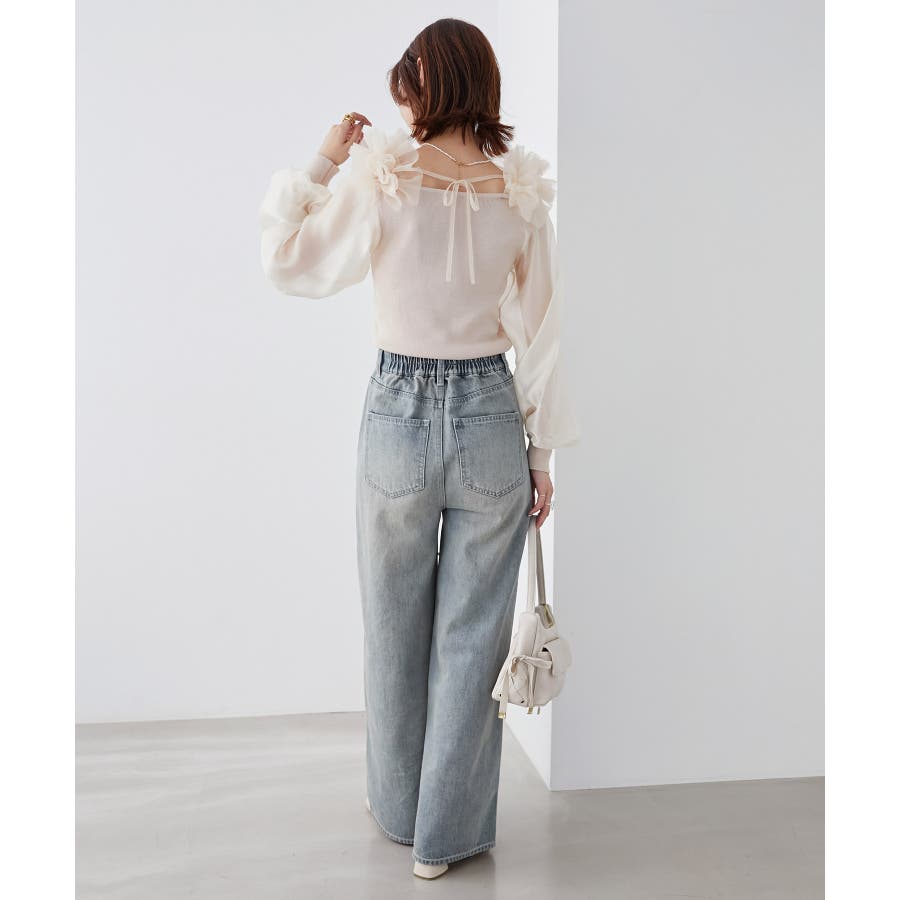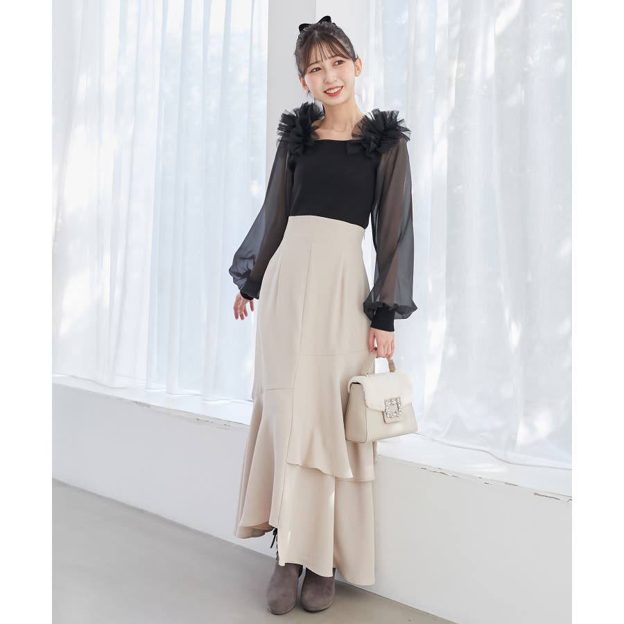 肩フリルシアースリーブニット