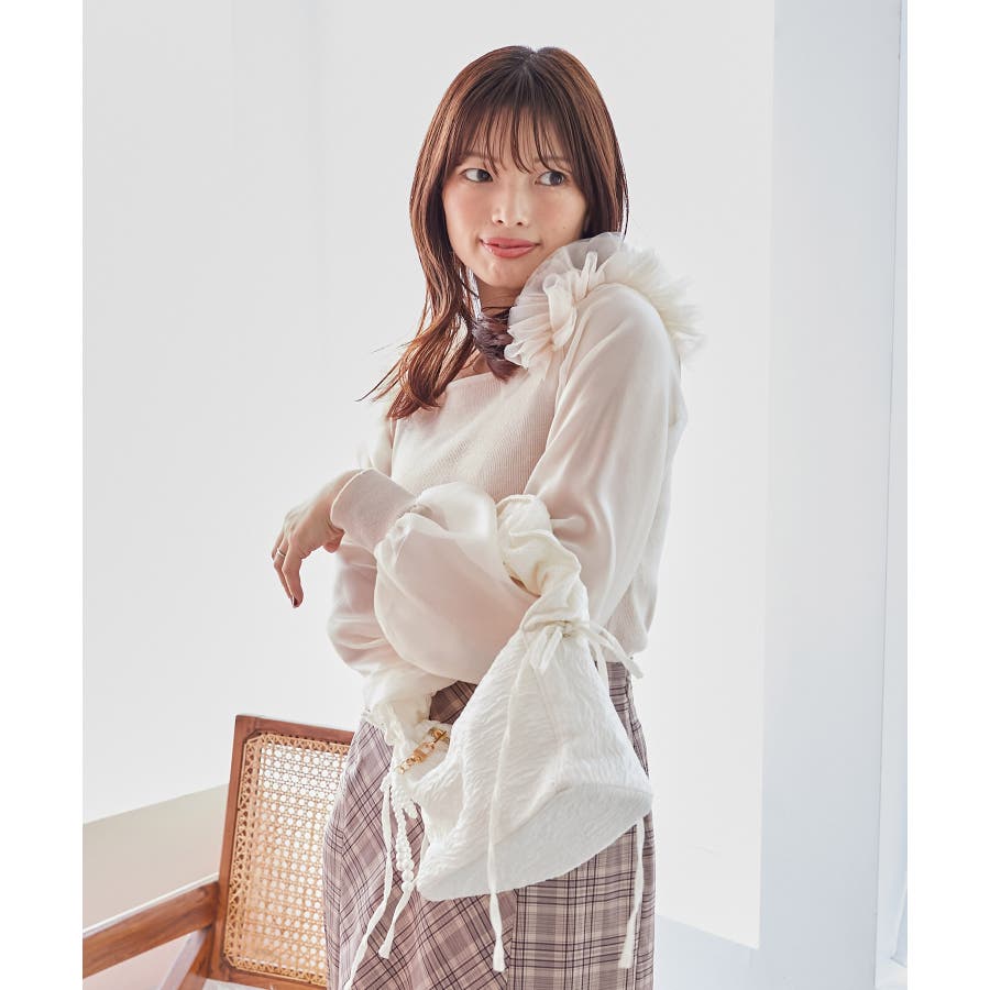 | 素材 | 本体/アクリル41% 綿34% ナイロン25% 袖部分/ポリエステル100% 肩チュール部分/ナイロン100% |