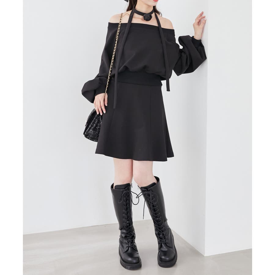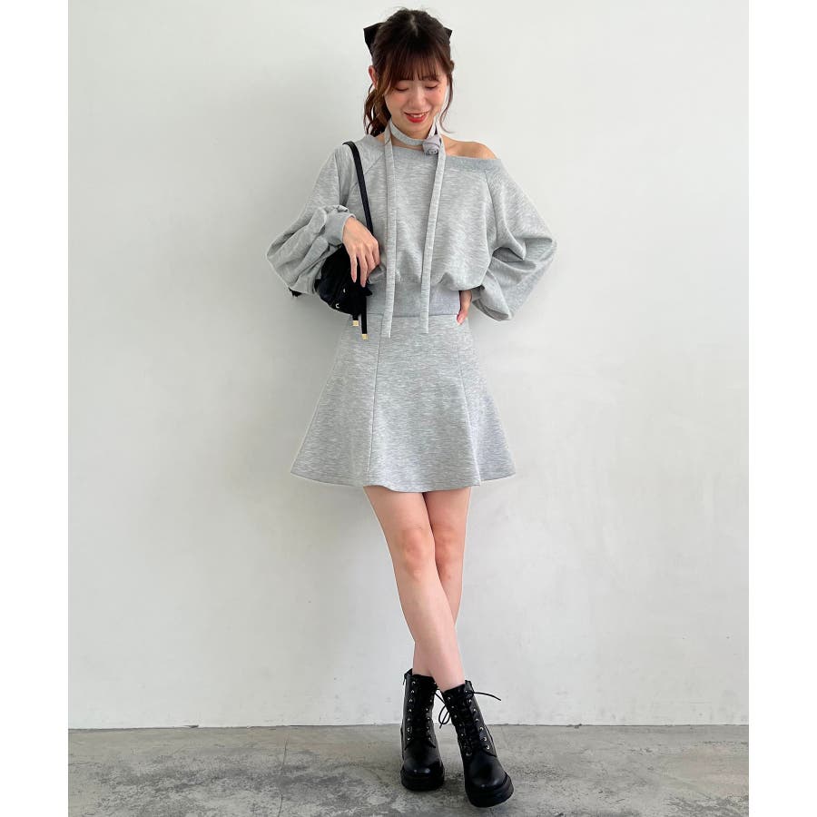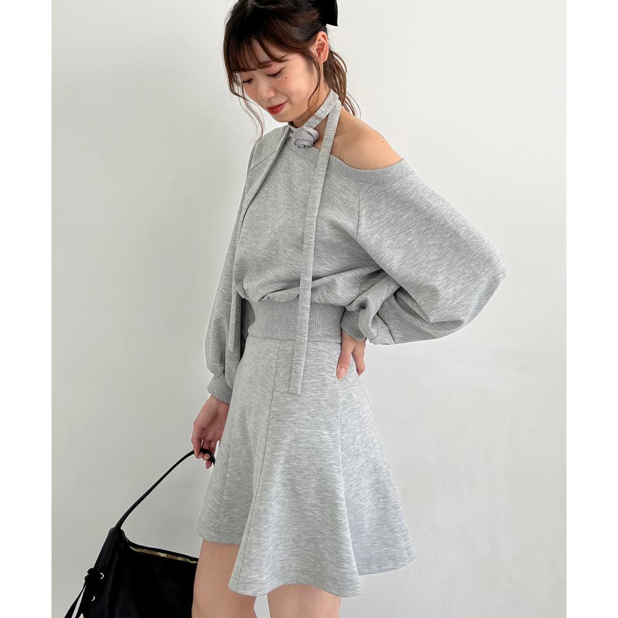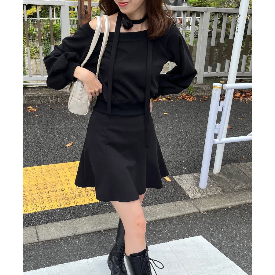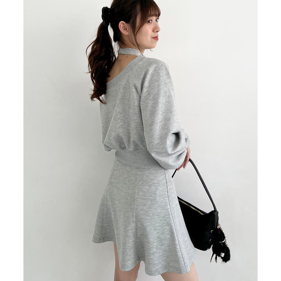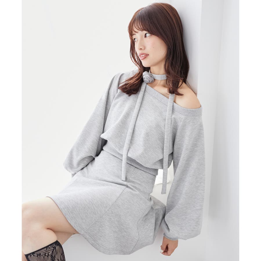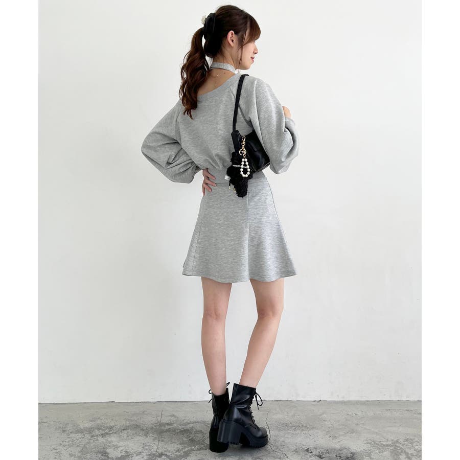 フラワーチョーカー付きスウェットワンピ
